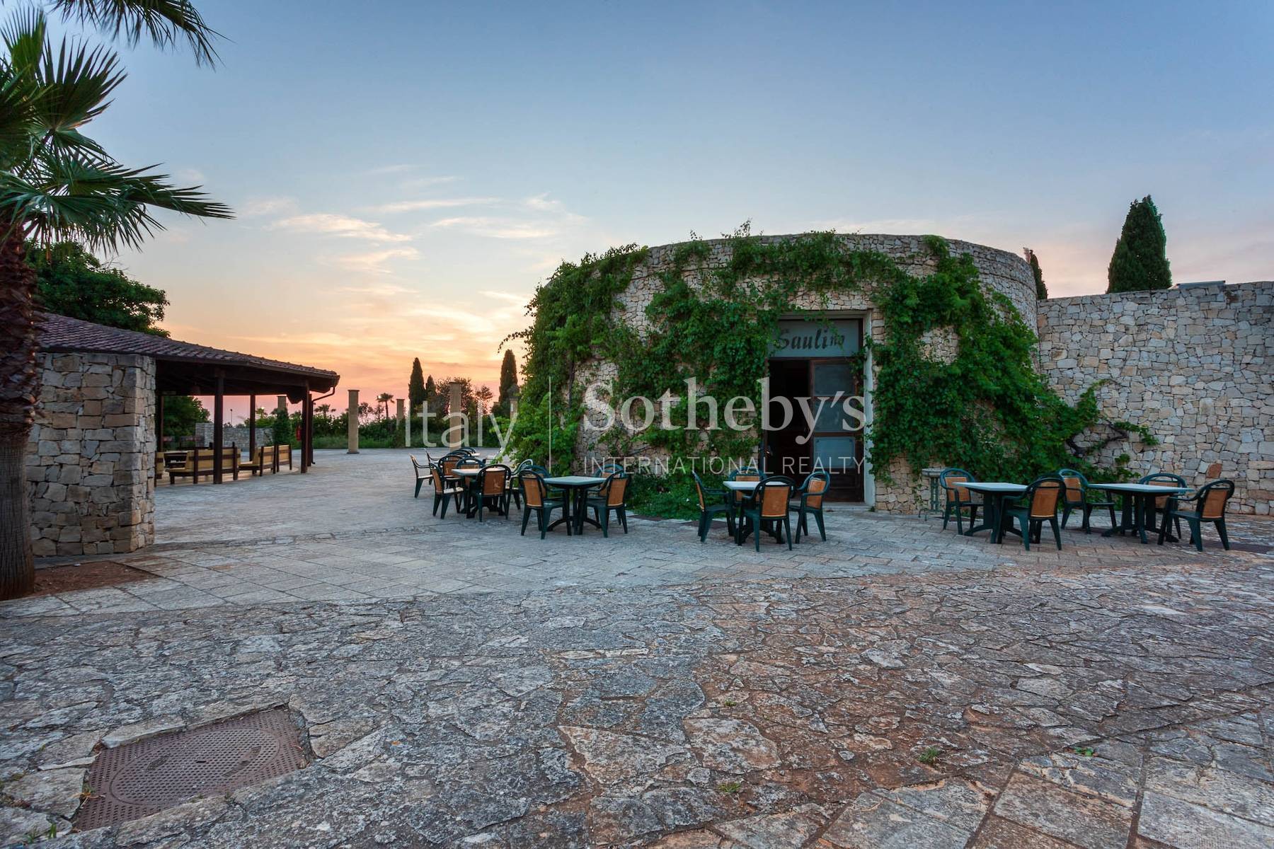 Enveloped in the Mediterranean scrubland, a few steps from the sea of Gallipoli, lies a suggestive farmhouse with a restaurant, pool, solarium, and tennis court. This historic and prestigious property, located in the most charming Puglia, includes two country houses and is characterized by spacious open spaces for relaxation and entertainment, including a large pool and a tennis court. The 8 hectare park, with centuries-old olive trees and palms, offers suggestive scenarios and well-kept spaces. The structure, which has undergone careful restoration, combines the seventeenth-century soul with modern comfort. The main body of the country house extends over two levels: on the ground floor, there is a reception hall, a bar area, and a professional kitchen. Upstairs, instead, the bedrooms with services, in addition to a panoramic terrace. An elegant pavilion can accommodate breakfasts, lunches, and dinners outdoors. The second country house houses other rooms, for a total of 44, on an area of 2700 square meters. It is interesting to consider that the premises on the ground floor, currently used as a laundry and storage room, could be transformed into an additional 8 rooms with bathrooms. The heart of the property is the splendid pool area, surrounded by the solarium and nature, which offers privacy and tranquility. The park, with jogging paths, allows you to explore the beauty of Salento, while a rural stone building, transformed into a bar, and a gazebo complete the atmosphere for moments of leisure and private events.