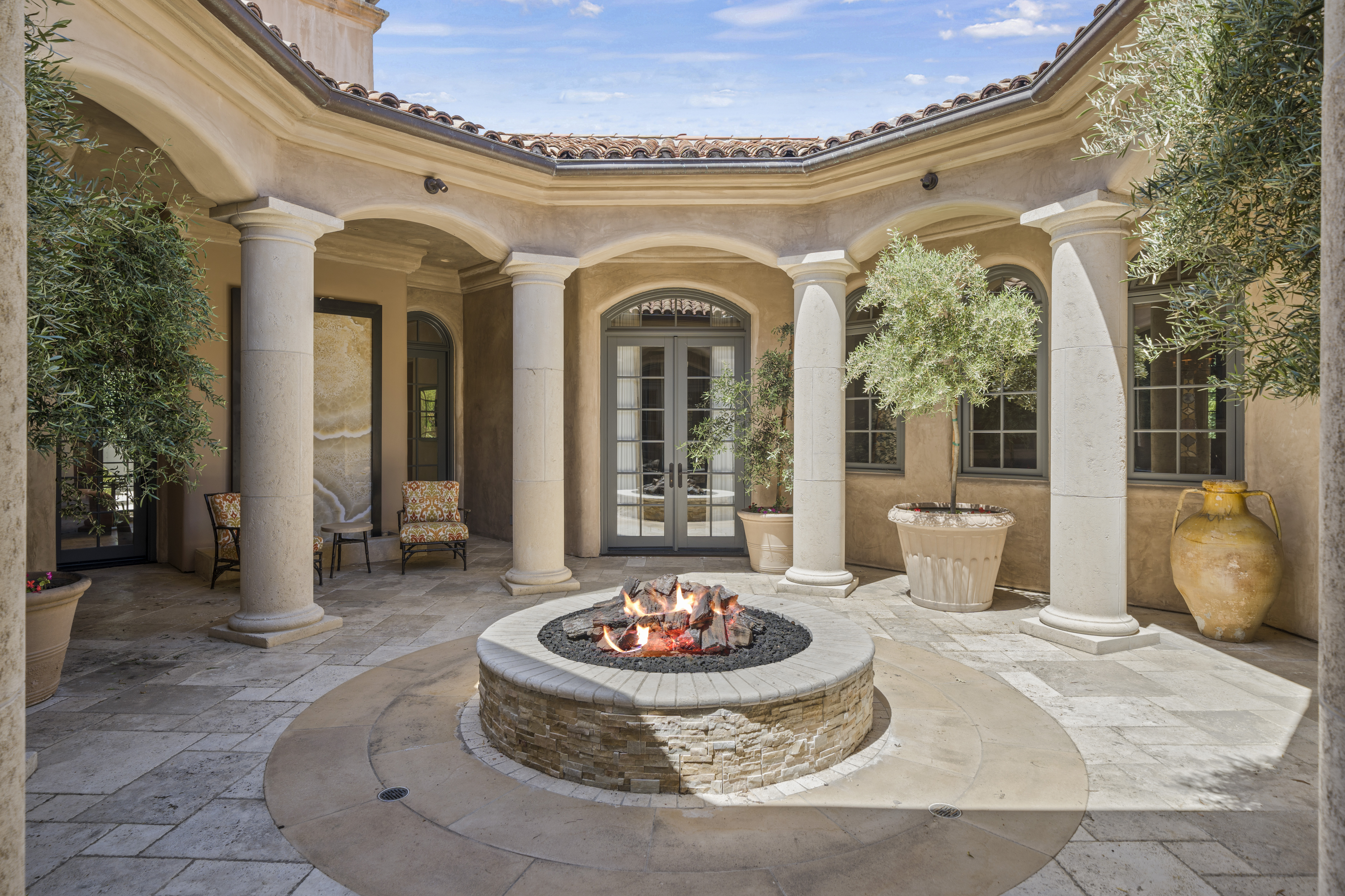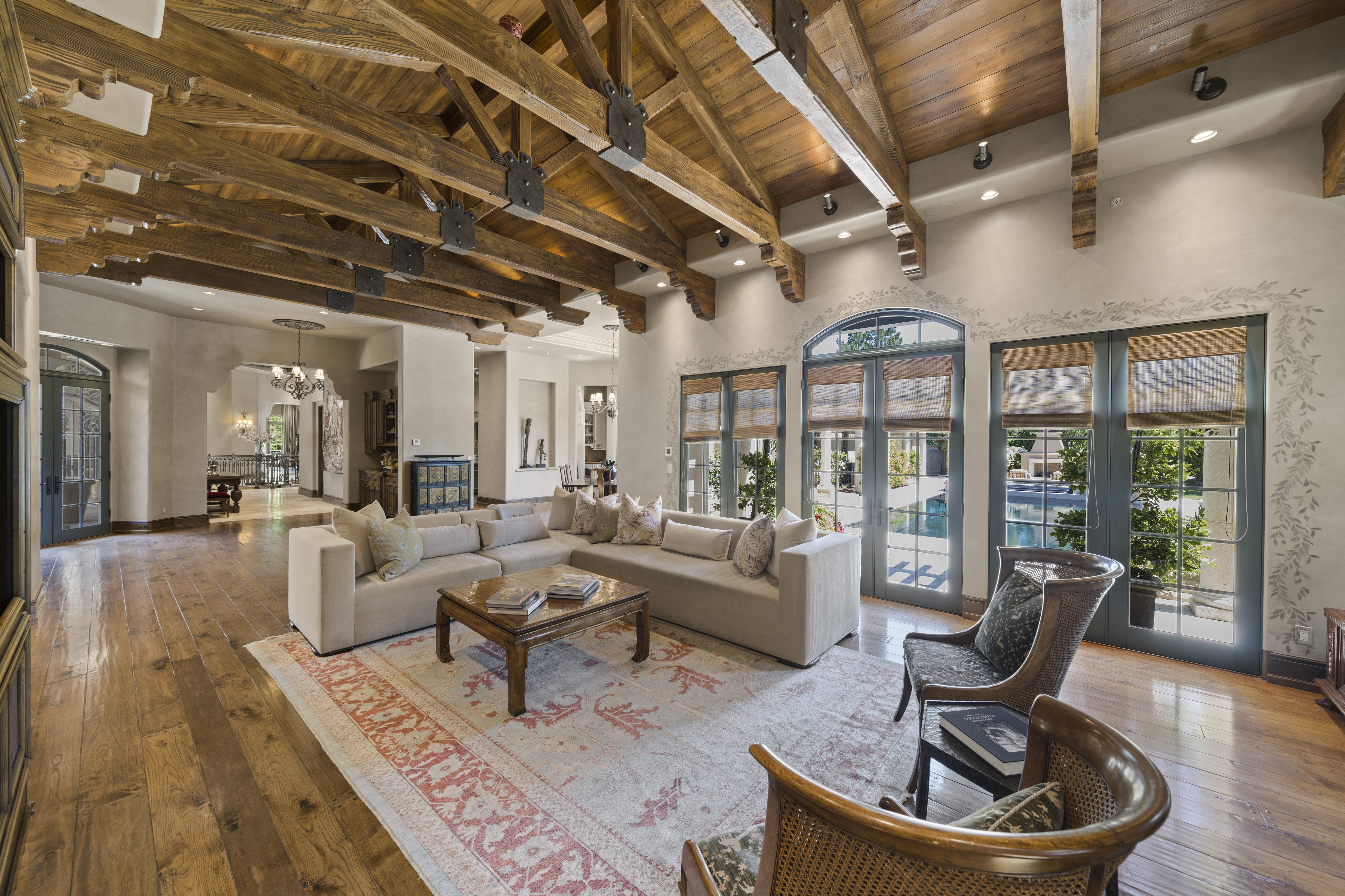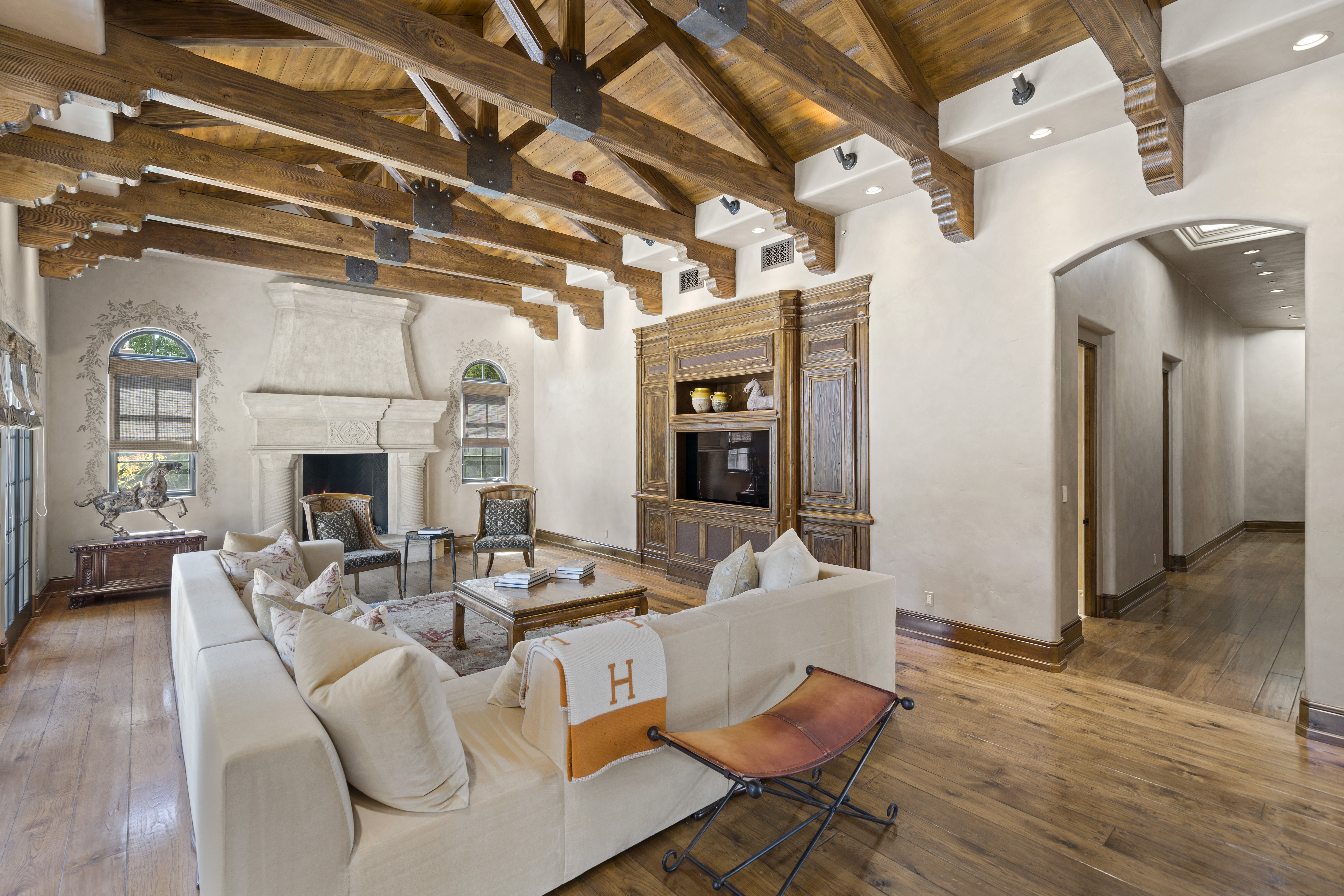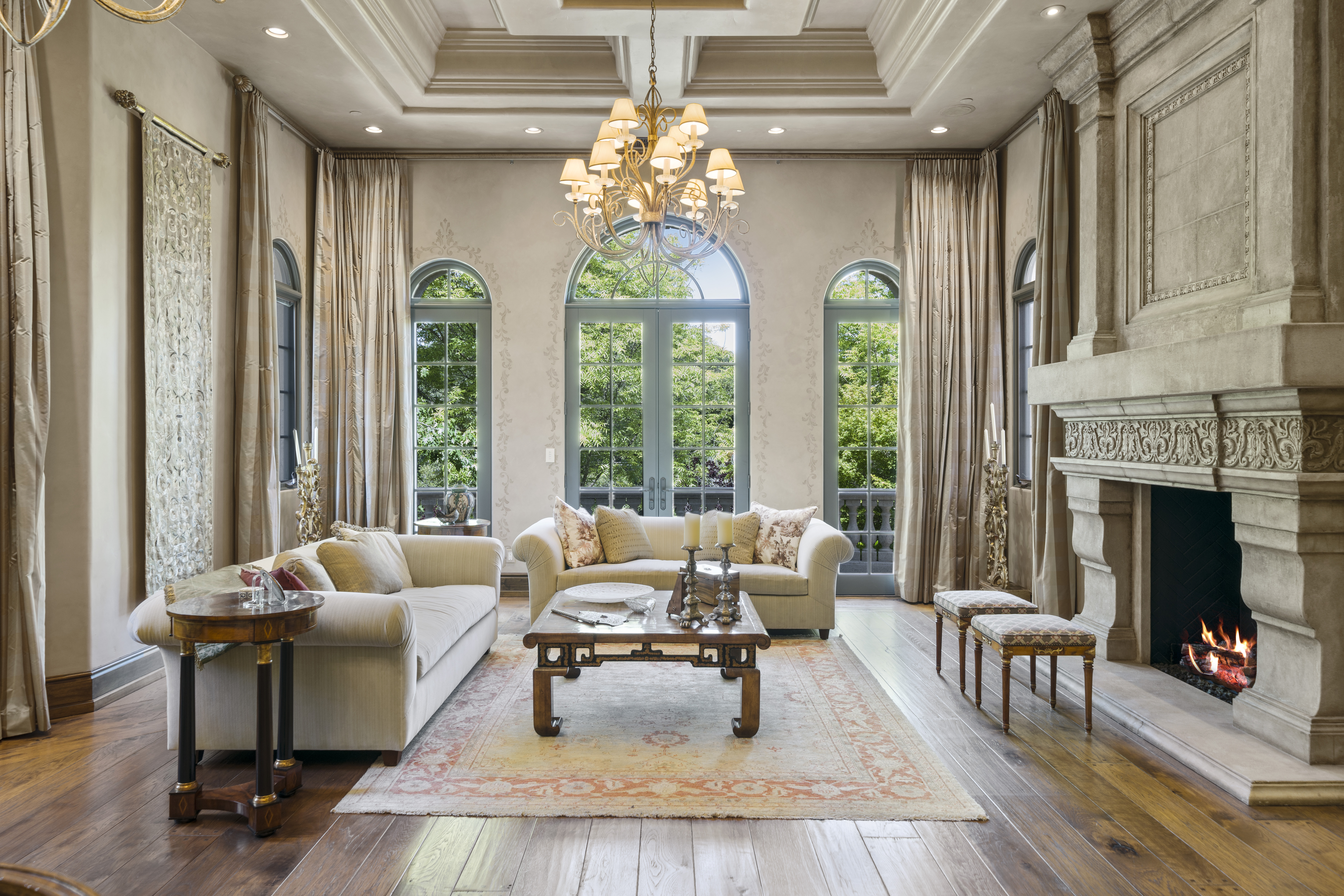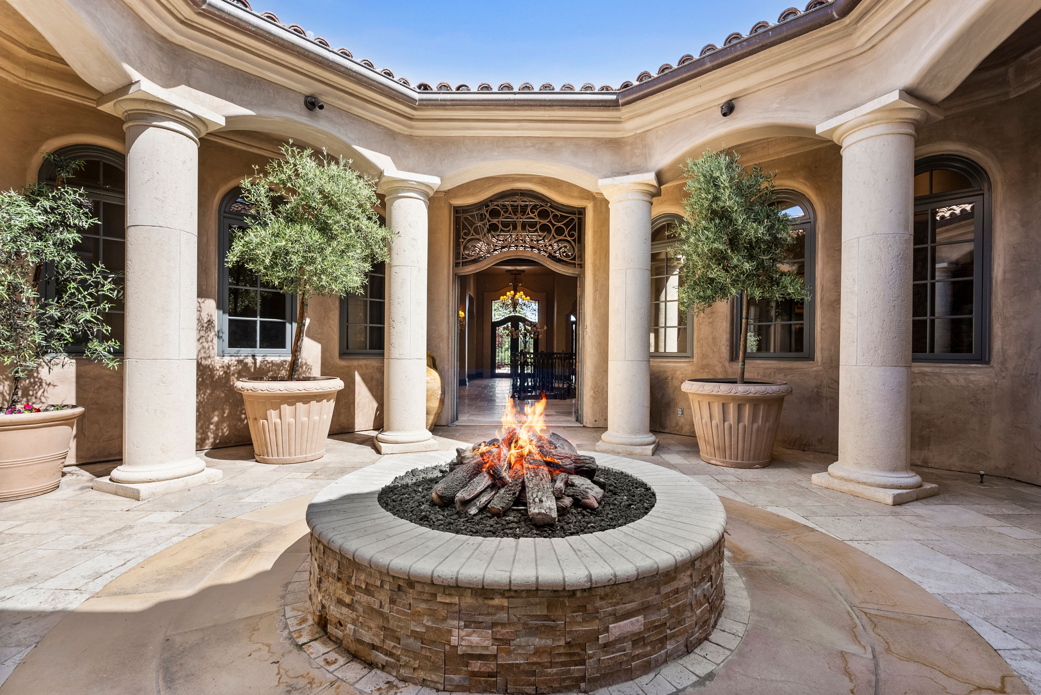 Recognized as one of the most majestic estate homes in Los Altos Hills, this property exudes European grandeur with a focus on lavish entertaining both indoors and outdoors. The property's gated entrance and motor court create a commanding first impression with details that include carved balustrade railings, water features, and massive iron and glass front door. The homes architecturally distinct floor plan integrates the front entrance with the opulent interior living spaces, arranged around a central courtyard and leading to the beautifully landscaped grounds. An infinity-edge pool, spa, fireplace, and barbecue center set the stage for magnificent outdoor gatherings. Each room showcases meticulous craftsmanship, featuring ornate ceiling designs, plaster walls, sophisticated lighting, grand fireplaces, and custom cabinetry. The main residence has six bedroom suites, two offices, a lounge, and eight and a half baths, complemented by a one bedroom, one bath guest house. Adding to the estate's allure are the lower-level recreational room, fitness center, theater, and wine cellar, alongside an attached six car garage. A pinnacle of luxury and Old World sophistication, this unparalleled property offers close-in convenience and with access to excellent Los Altos schools.