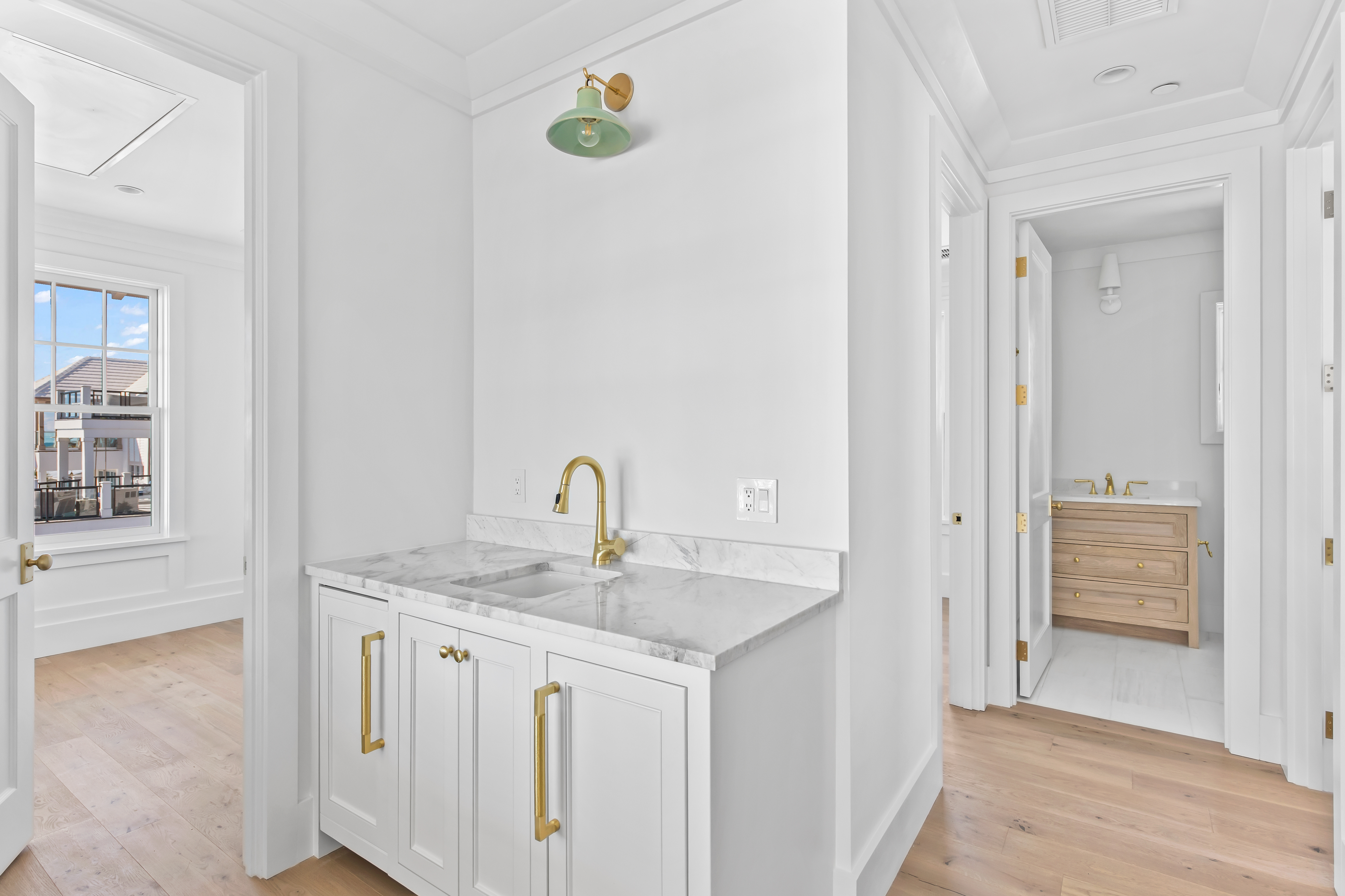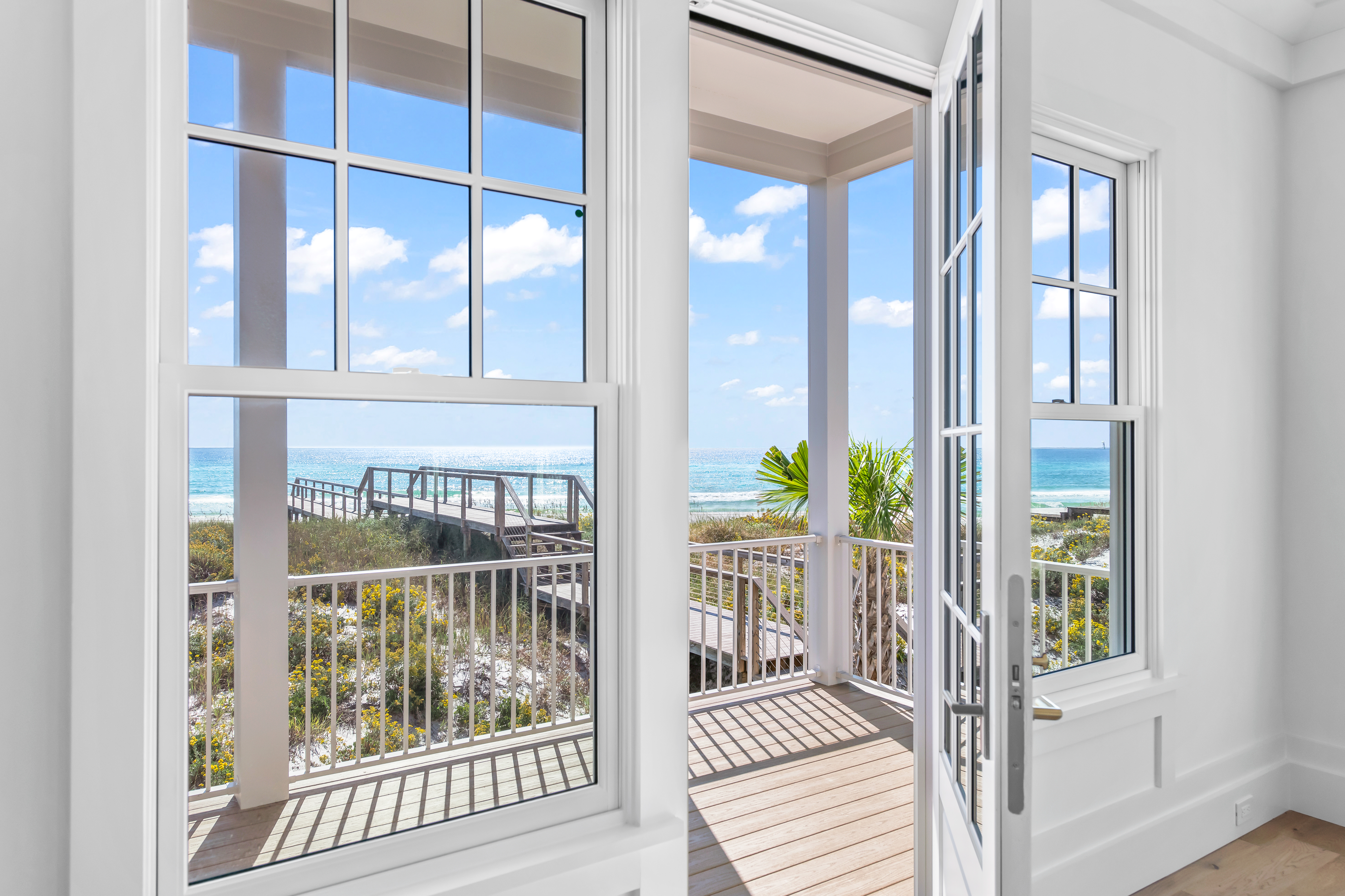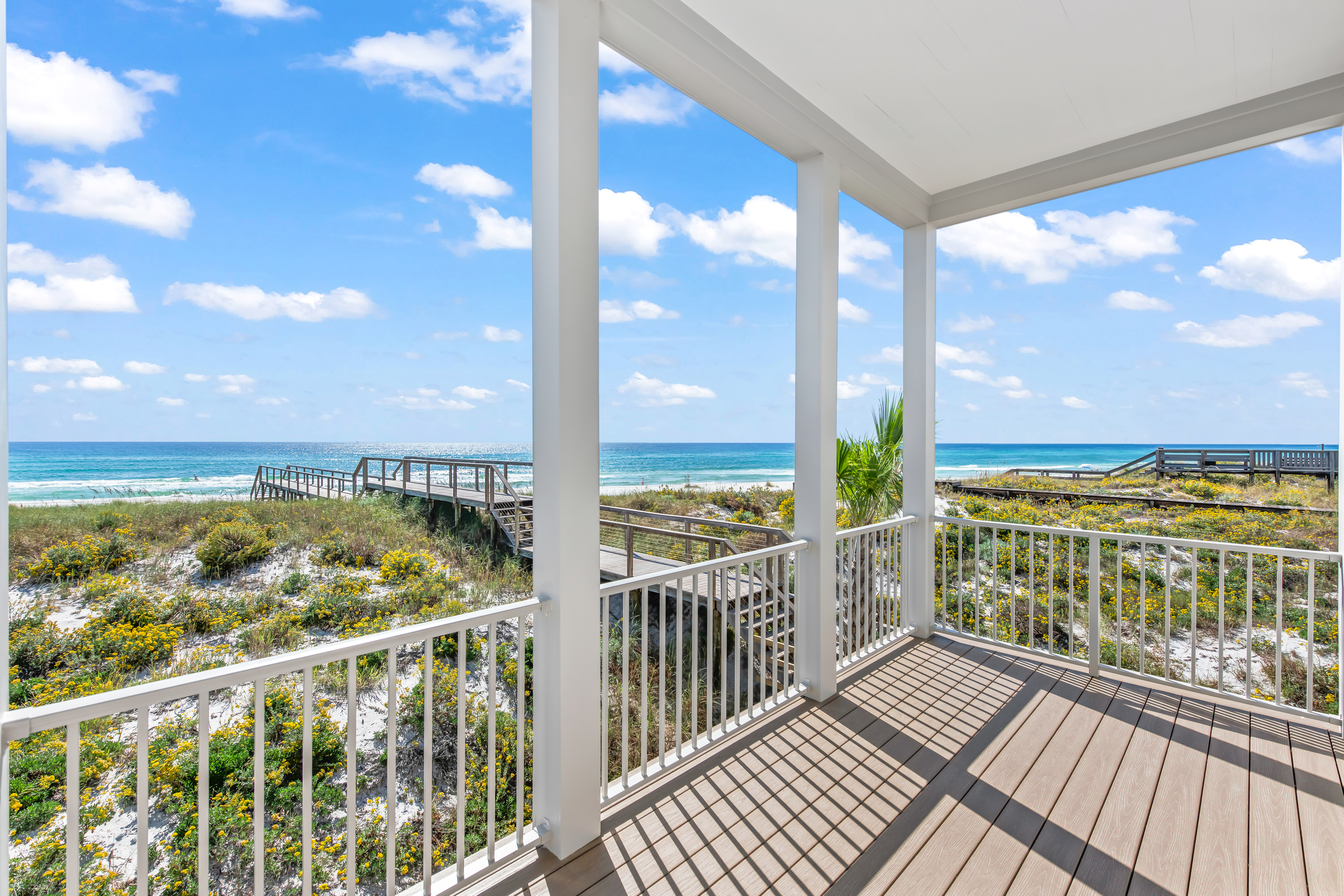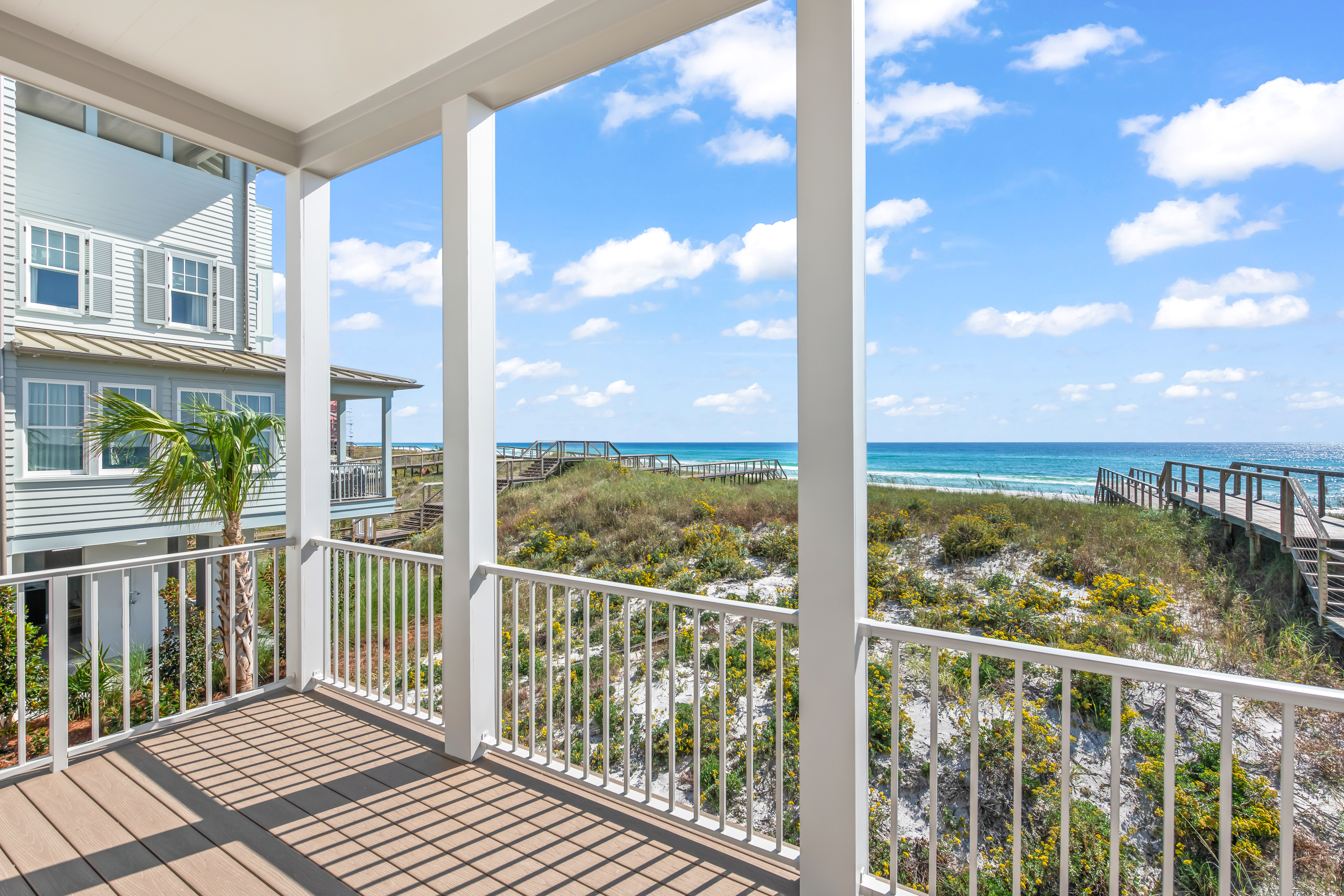 Located within the intimate, architecturally curated enclave of Lupin Beach in Inlet Beach, Lot 3 offers a rare blend of new Gulf-front construction, refined coastal design, and exceptional value along the coveted eastern end of Scenic 30A. Positioned as the second-most western Gulf-front residence in this boutique community, the home delivers a highly desirable layout that lives comfortably while maximizing Gulf orientation and natural light.This three-bedroom, three-and-two-half-bath residence spans 2,300 square feet, introduced by a calming neutral exterior palette that embodies timeless coastal elegance. Inside, gold and brass-toned fixtures, premium appliances, and elevated material selections shape an atmosphere of warm sophistication. The thoughtful floorplan balances openness with functionality, creating an effortless flow through beautifully composed interior spaces.Outdoor living is expressed through a series of architectural moments that celebrate the Gulf’s presence. The top-floor covered balcony provides generous seating space, steady breezes, and an intimate vantage point over the water—ideal for morning rituals or evening unwinding. Additional Juliette balconies on the southern and western elevations welcome abundant natural light and capture charming view corridors toward the shoreline and sunset.Adjacent to the two-car garage, a covered transitional space features a built-in kitchenette designed for practical everyday use—perfect for preparing refreshments, or supporting coastal living with ease—without serving as a full summer kitchen.Beyond the residence, the home’s location on the eastern edge of Inlet Beach offers unmatched access to both protected natural beauty and the celebrated destinations of the 30A corridor. Steps away, Lake Powell, one of Florida’s largest coastal dune lakes, provides opportunities for paddle boarding, kayaking, fishing, and serene exploration. Immediately to the east, Camp Helen State Park offers hiking trails, a fishing pier, wildlife viewing, and seasonal community programming within a preserved natural setting.Within minutes, owners can enjoy the world-class boutiques, dining, and cultural events of Rosemary Beach, Alys Beach, Seacrest Beach, and the emerging offerings at Kaiya Beach Resort. Premier club and recreation options are also close by, including Watersound Beach Club, the expansive new amenities at Camp Creek, and Wild Heron Golf Club with its marina, restaurant, fitness facilities, and outdoor activities.Travel convenience is another hallmark of this location, with Northwest Florida Beaches International Airport (ECP) just 15–20 minutes away, offering direct flights to major markets such as Atlanta, Dallas, Nashville, Charlotte, Miami, and New York.Now fully completed and ready for immediate occupancy, Lot 3 stands as one of the most compelling Gulf-front opportunities on eastern 30A—blending thoughtful design, intimate community living, and the rare privacy that defines Lupin Beach.
