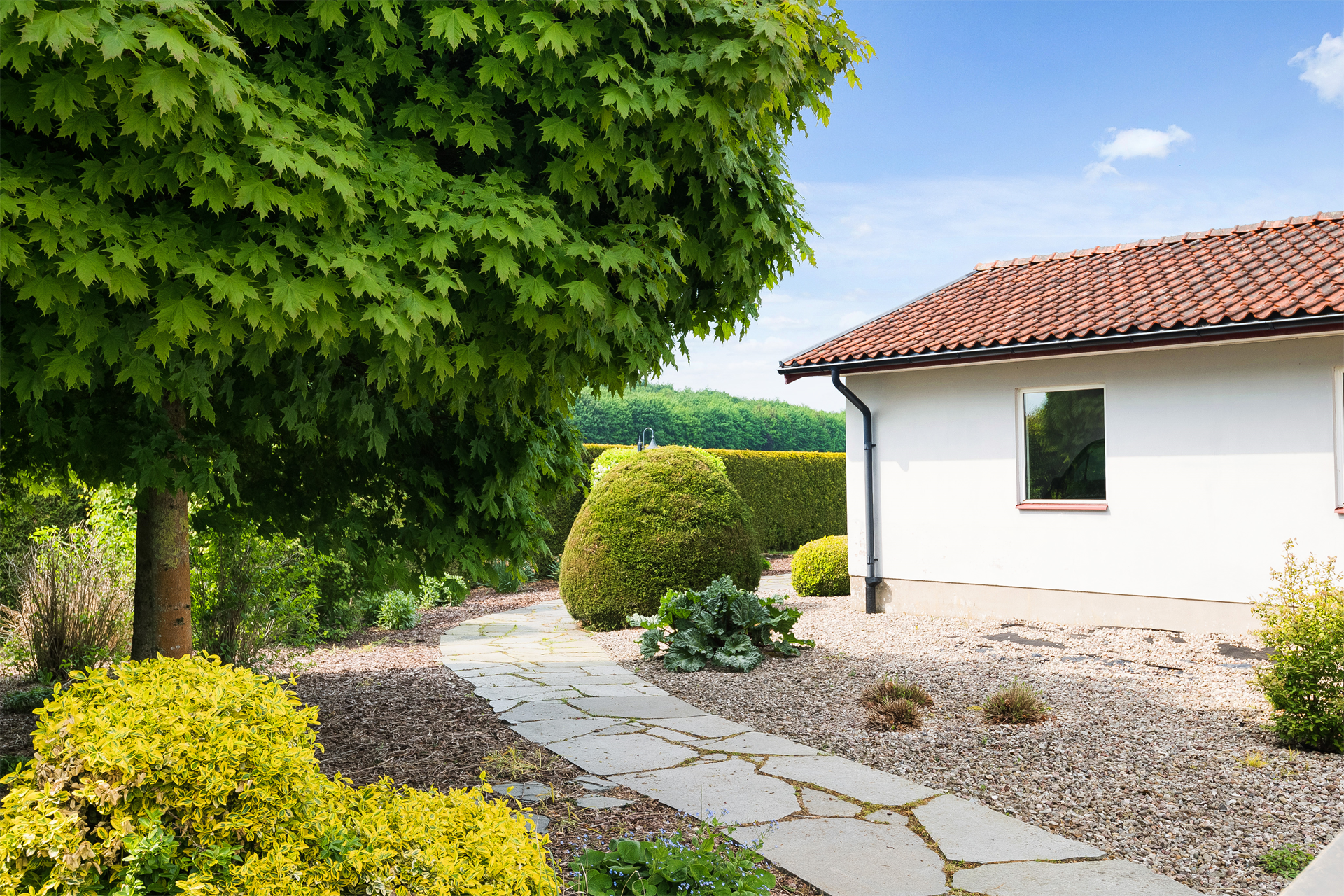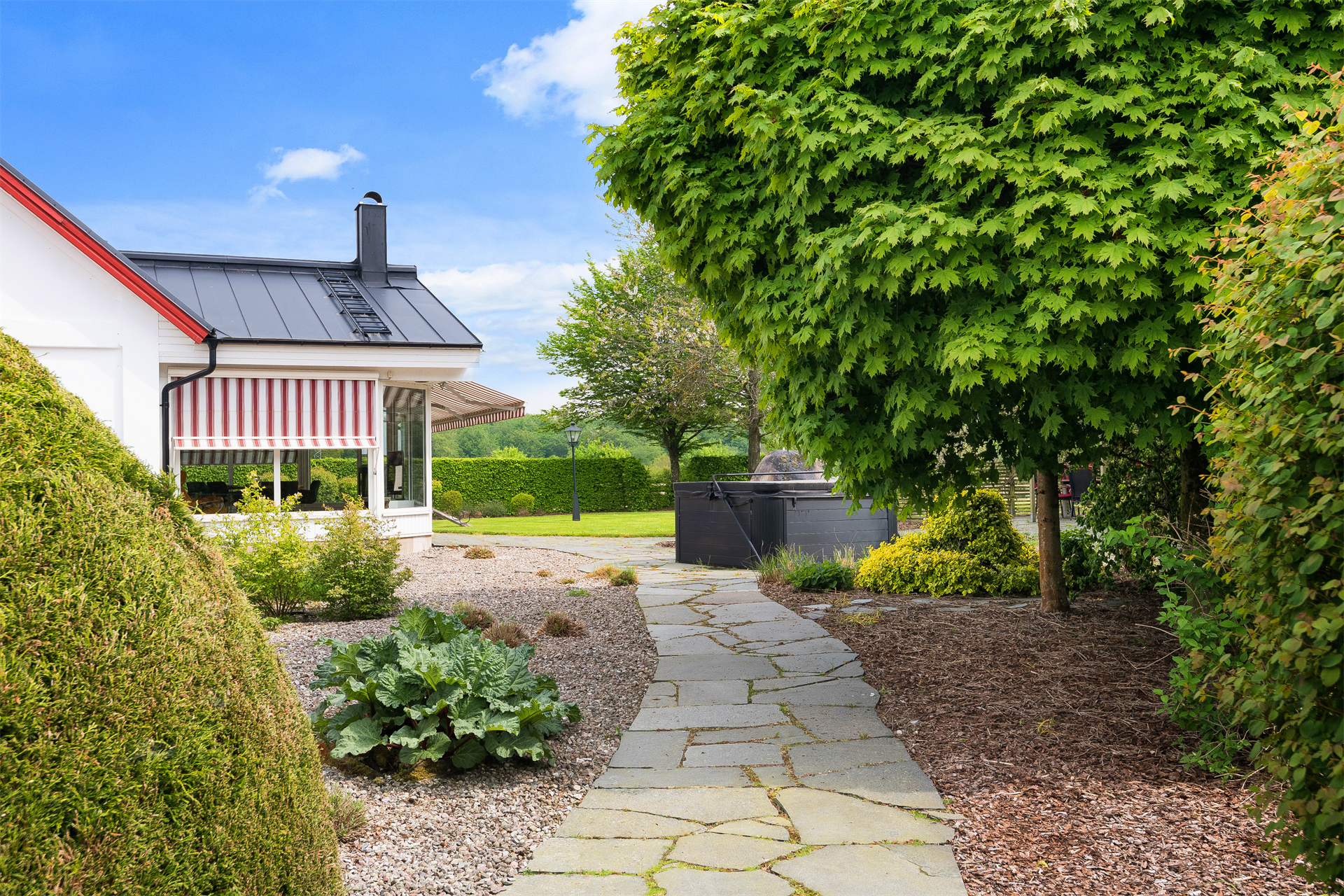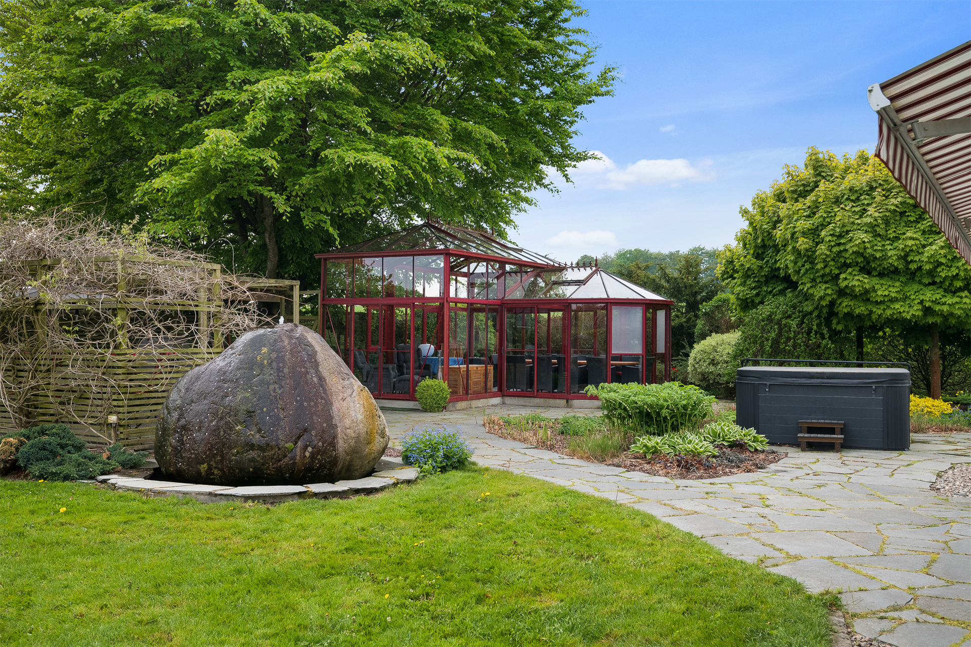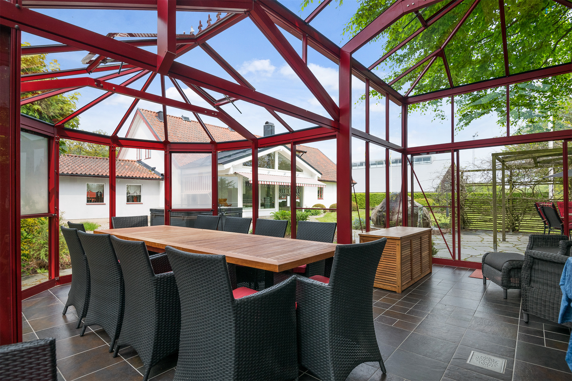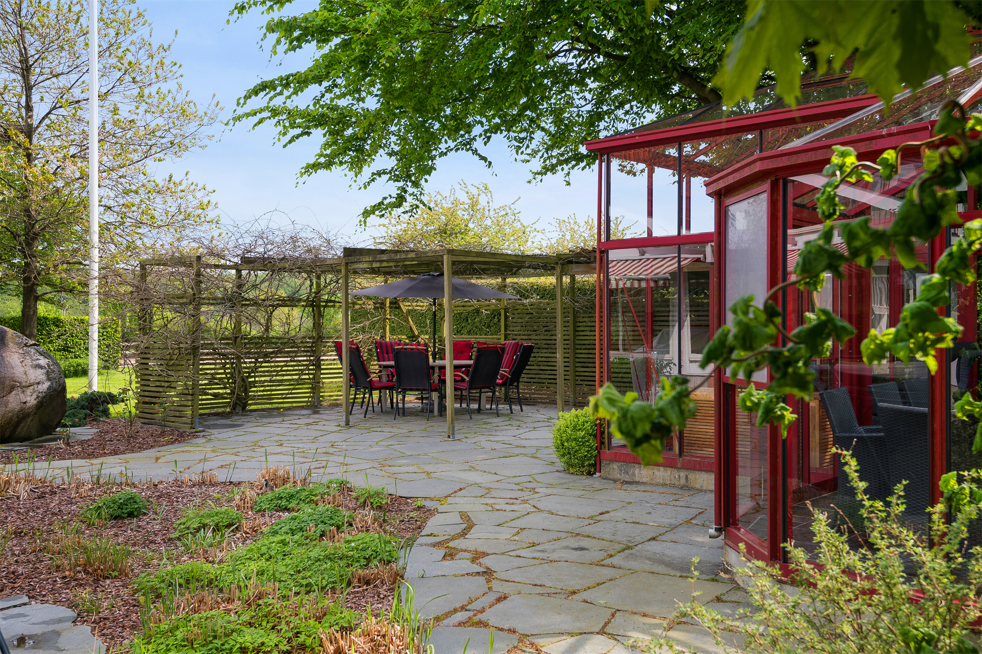 The manor house harmonizes with a lush garden including a paved patio, pergola, orangery, SPA bath and decorative fountain. The generous lawn is surrounded by mature trees and here you will find flora that provide you with fragrance and beauty from early spring to late autumn.
