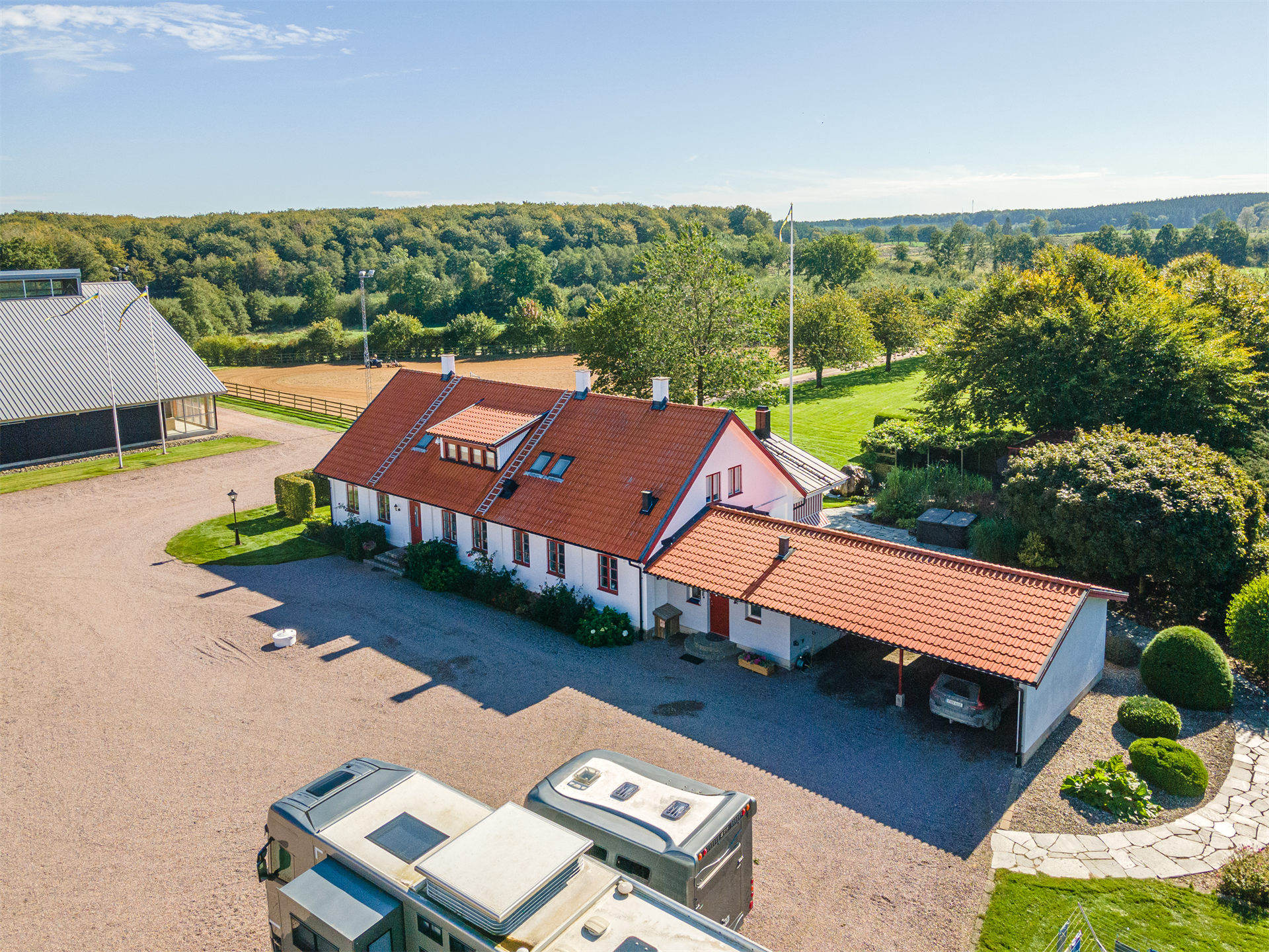 An estate that offers privacy amongst rural surroundings but still close to good service, schools and transport. In addition, Kastrup Airport is ca 45 minutes away. The estate makes for easy travels to Copenhagen and Helsingborg as well as Falsterbo and the Bjäre Peninsula. The E22, which runs from Malmö to Norrköping, passes ca 25 minutes south of the farm and about 20 minutes west lies the E6/E20. A unique location for those who wish to take their horse out to the competition arenas in Europe as well as within the country's borders.