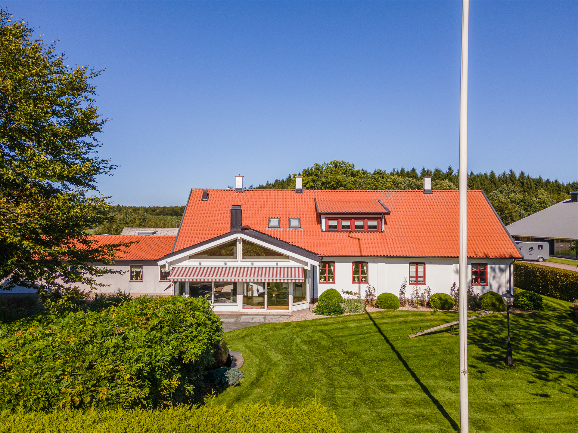 The newly raked courtyard is surrounded by a first-class stable, a spacious restored half-timbered house, guest house and machine room. This estate embodies harmony, where the scent of hay and leather fills all the senses. Looking to the right, you will see a riding hall of ca 2,400 sqm, a spectacular stylistic study in Danish design including roof beams, generous windows, automatic irrigation system and fibre sand. A lush pasture, winding riding trails and a well-maintained paddock complete this property.
