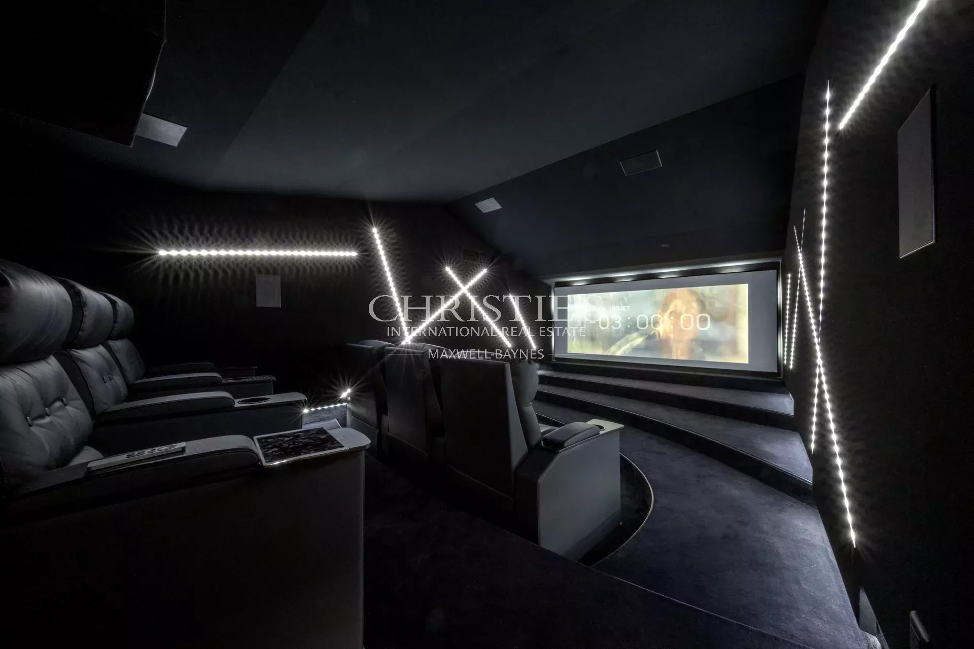 The top floor boasts a fifth bedroom, also with en suite shower room, and a unique feature: an air-conditioned, bright ICE cinema designed by Méga CGR.