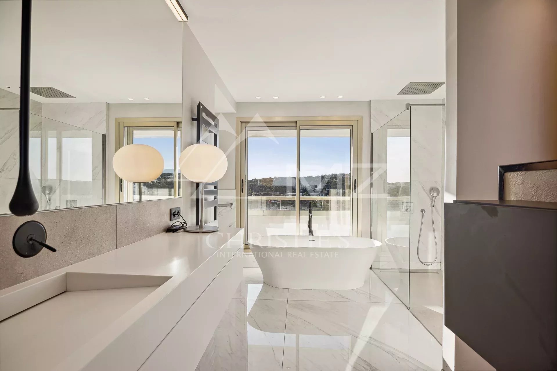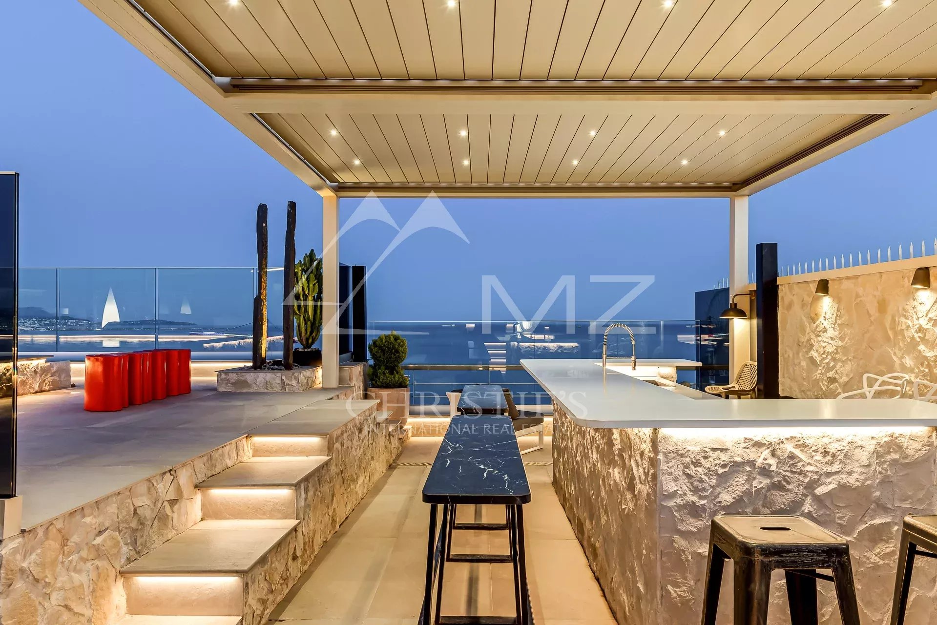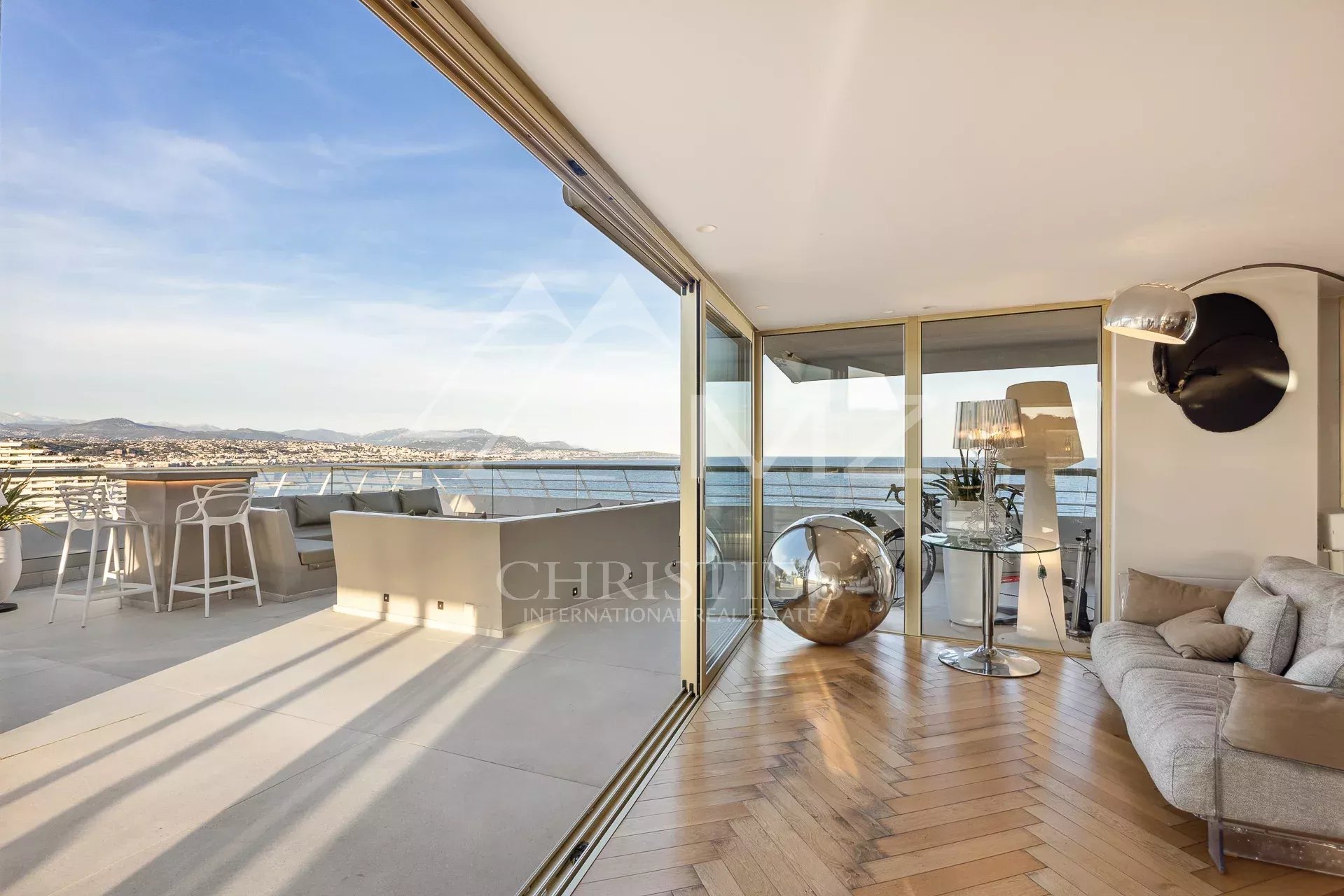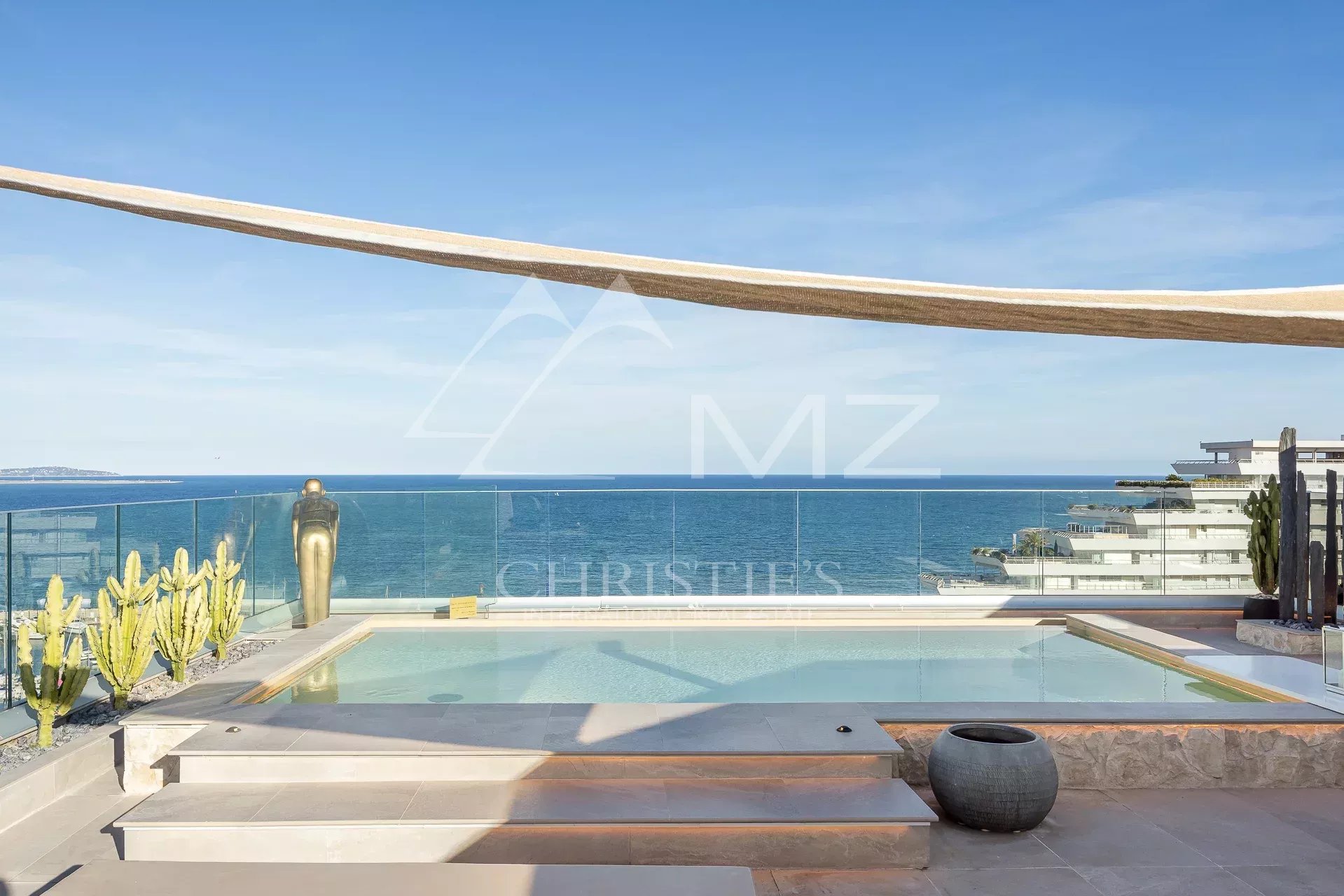 Enjoying the most beautiful location in the well known Residence "Marina Baie des Anges" and overlooking the Mediterranean Sea, this exclusive triplex of approximately 242 m2 Carrez law (270m2 of total surface) presents a dazzling panorama. Elegant and modern, its vast interior, accessed by private lift, is bathed in natural light and lulled by the sound of the sea. Outside, there are several terraces totalling approximately 382 sqm, including a roof terrace of approximately 150 sqm offers all the comfort of a luxury flat with a heated swimming pool and a bar/pool house.