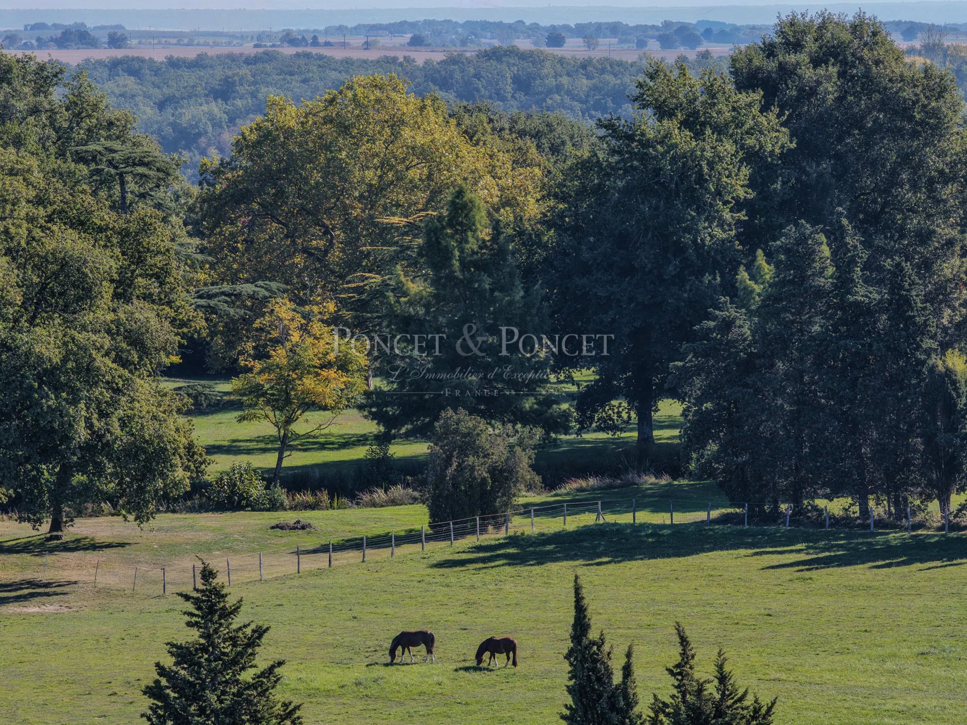 LAND: The 24 ha of land include 4 ha of parkland, 3 ha of which is enclosed by electric fencing for horses, a lake and a pond from which water can be drawn to irrigate the grounds. A beautiful heated swimming pool measures 12 x 6, with its pool-house with bar, kitchenette, toilet and shower. A tennis court.