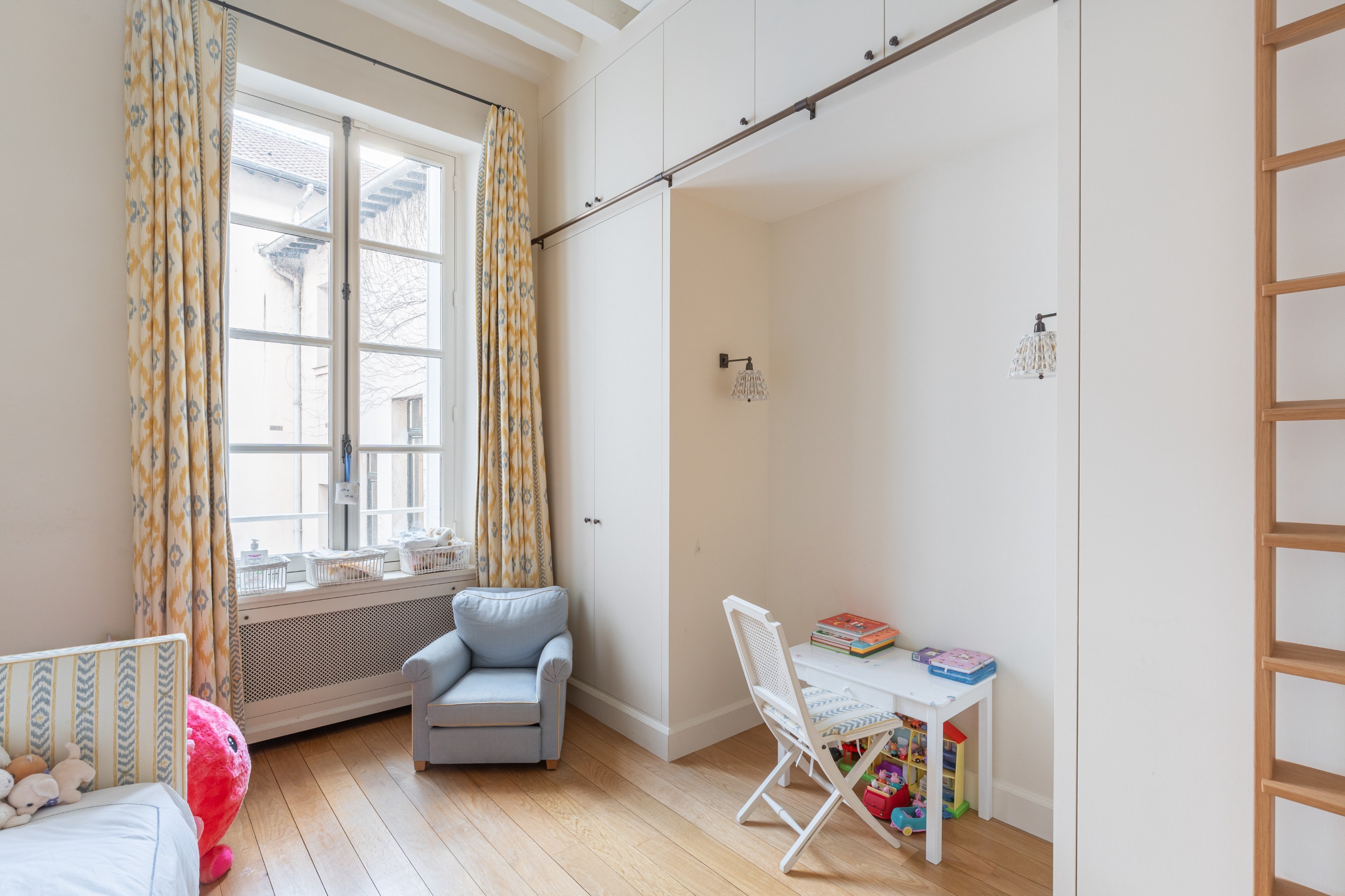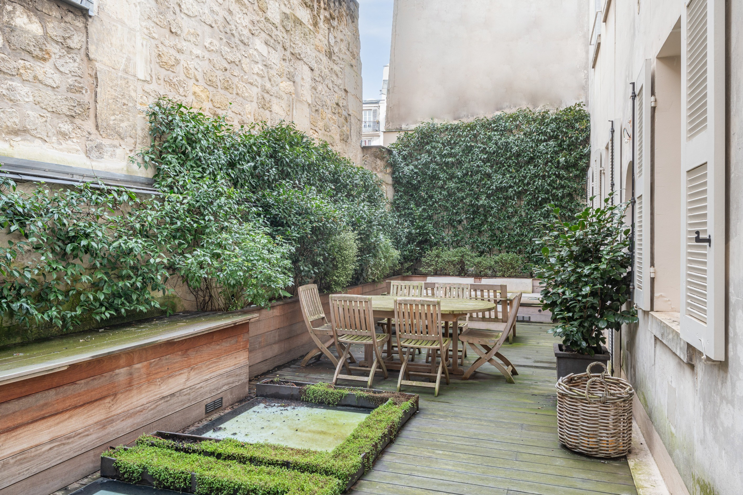 On the first two floors of a beautiful old building with elevator, a superb duplex apartment of 135.35sqm Carrez law with its magnificent planted terrace of 45sqm. This property is composed, on the first floor, of an entrance, a very beautiful bright living room opening onto the terrace, an open kitchen, a bedroom with dressing room, bathroom and shower room, on the second floor, two bedrooms, a small living room and an office, a dressing room, a bathroom and a laundry room. This bright and very nicely renovated property has retained all its old charm with its beautiful exposed beams and its fireplace. www.proprietesparisiennes-sothebysrealty.com - luxury real estate expert - Paris