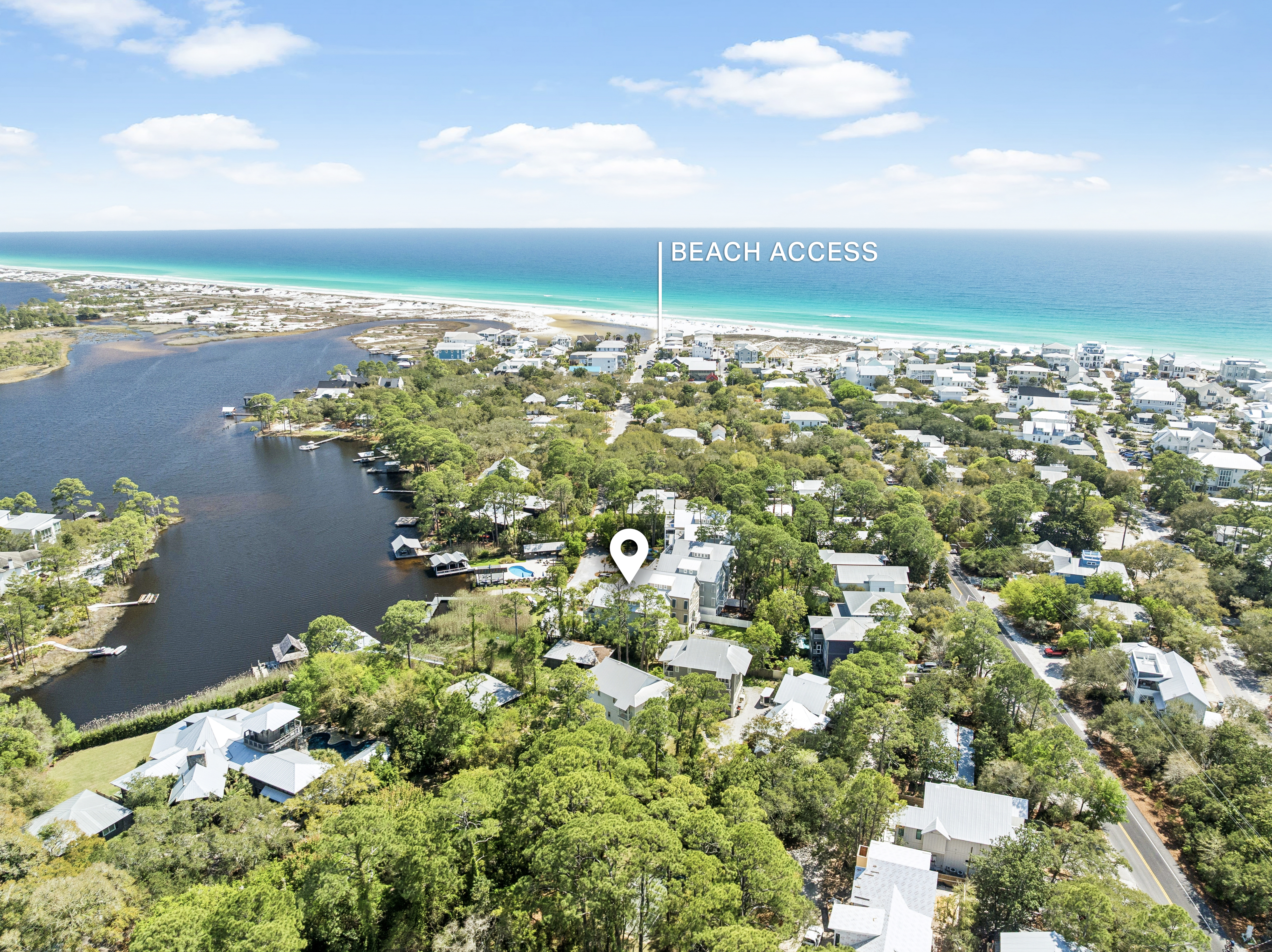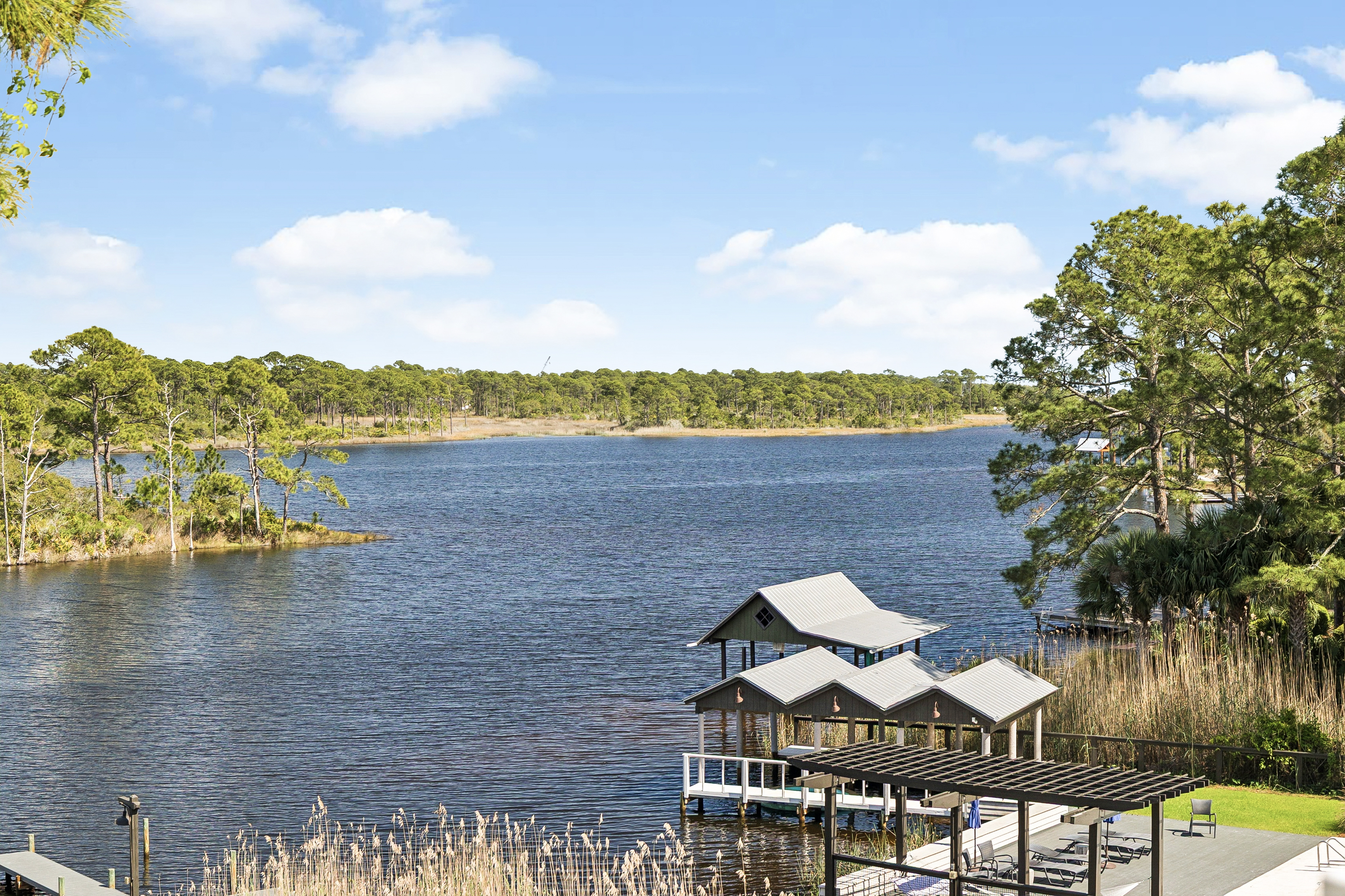 Set within the exclusive gated enclave of Grayton Landing, this custom-built five-bedroom, five bathroom and a half bath coastal retreat offers one of the best views Grayton Landing has to offer, with sweeping, serene vistas of Western Lake, a rare blend of refined design and serene waterfront living. Overlooking the tranquil waters of Western Lake, the 3,563-square-foot residence captures breathtaking views and effortless indoor-outdoor living at every turn.Thoughtfully designed by Luke & Blue, the home features a light-filled open-concept layout anchored by a chef’s kitchen with premium appliances, custom cabinetry, and elegant stone surfaces. Expansive living and dining spaces flow seamlessly onto covered porches, inviting relaxed mornings and sunset evenings overlooking the lake and resort-style pool.Multiple ensuite bedrooms, including two luxurious primary suites, provide private retreats for family and guests, while a top-level bunk room, loft, and open-air terrace offer additional space for gathering and entertaining.Complete with private lake access, a deeded dock and boat slip, and just moments from the sugar‑white sands of the Gulf of Mexico, less than half a mile walk to the beach, this exceptional residence embodies the essence of elevated 30A living.