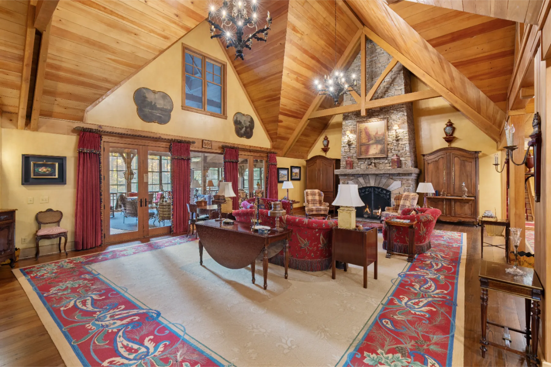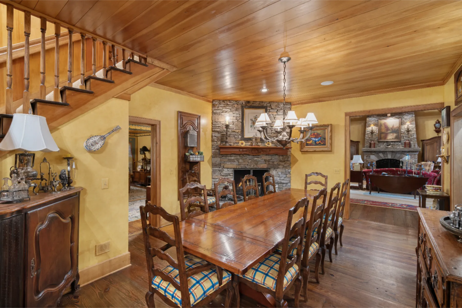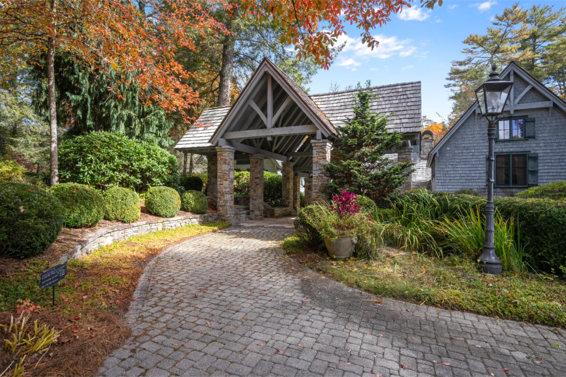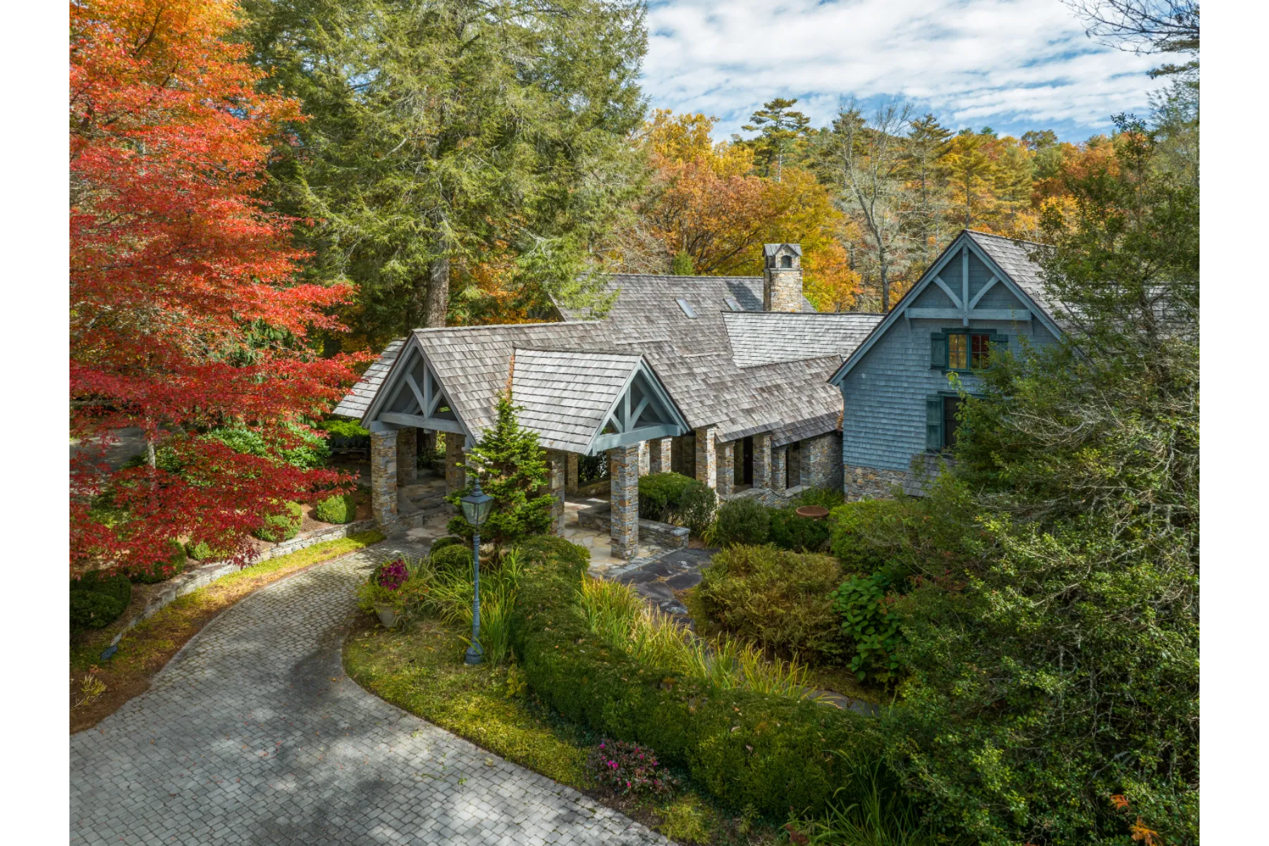 Only once in a decade does a property such as Brookside come onto the market! Adjacent to High Hampton in Cashiers, North Carolina, set two easily accessible acres with exceptional water features and an elegant Estate home. There quite simply are no comparables. Secluded from public view, the home was artfully designed with functional living spaces that take full advantage of the landscaped gardens and the sounds of cascading Fowler Creek, which meanders through the Estate. The 8,343 square-foot home encompasses eight bedrooms, twelve bathrooms, five fireplaces, six HVAC units, and two elevators providing elegant access to the North and South apartment wings. Close to Cashiers and walkable to High Hampton and its amenities. Offered furnished (few exceptions) and decorated, the home bustles with museum-quality furniture and significant collectibles curated over a lifetime of travel. Heart pine floors and custom designer carpets form the backdrop for each room's themed character (For details see “Seller’s Notes” and “Three Video Links” in the documents section). While the home boasts multiple gathering and private living venues, the vaulted Great Room is particularly remarkable. From its massive gas-fired stone fireplace to its bespoke display cabinet for a rare porcelain collection, it’s a feast for the eye. In temperate weather, the double French doors expand the space farther onto the Three Season Porch, which overlooks and welcomes the soft sounds of the cascading creek below. All in all, Brookside is a remarkable home on an even more remarkable private oasis. The experience of a visit will not soon be forgotten.