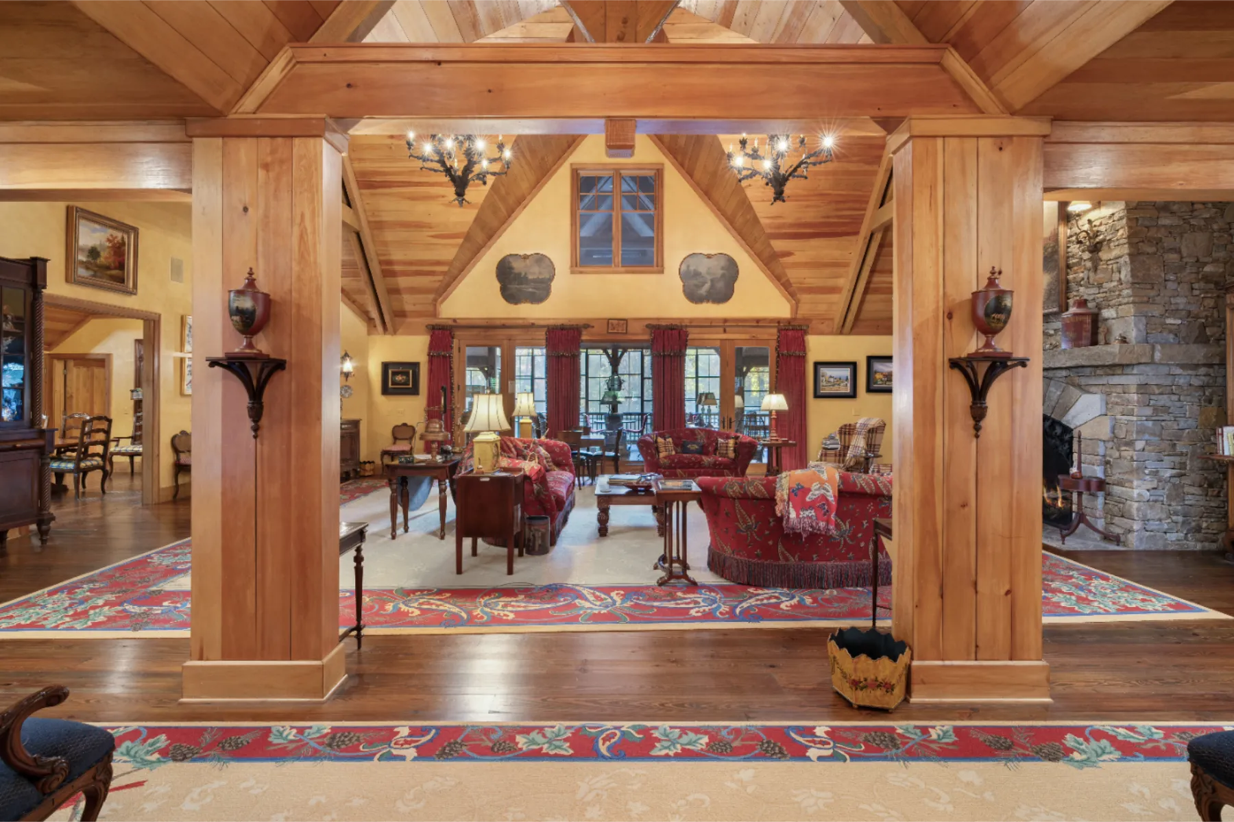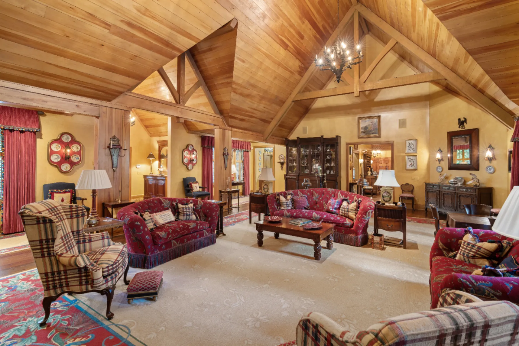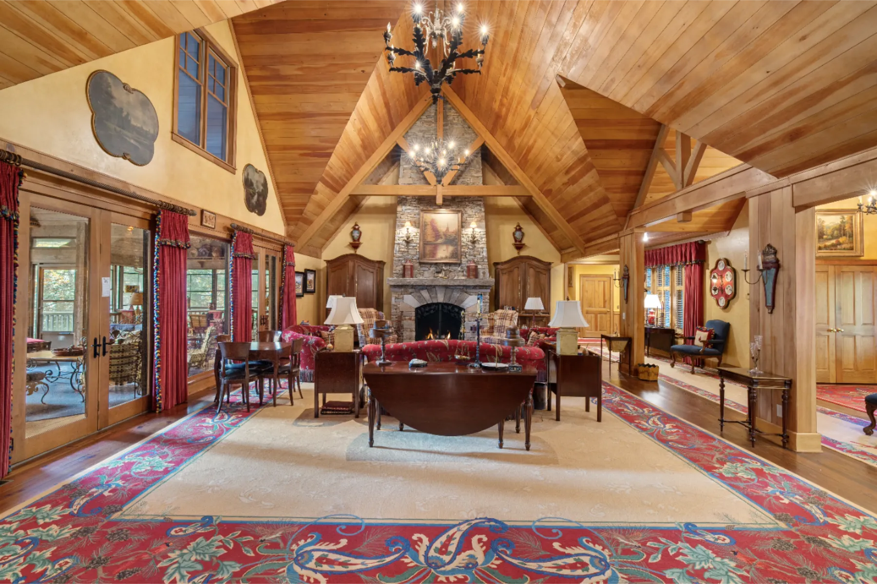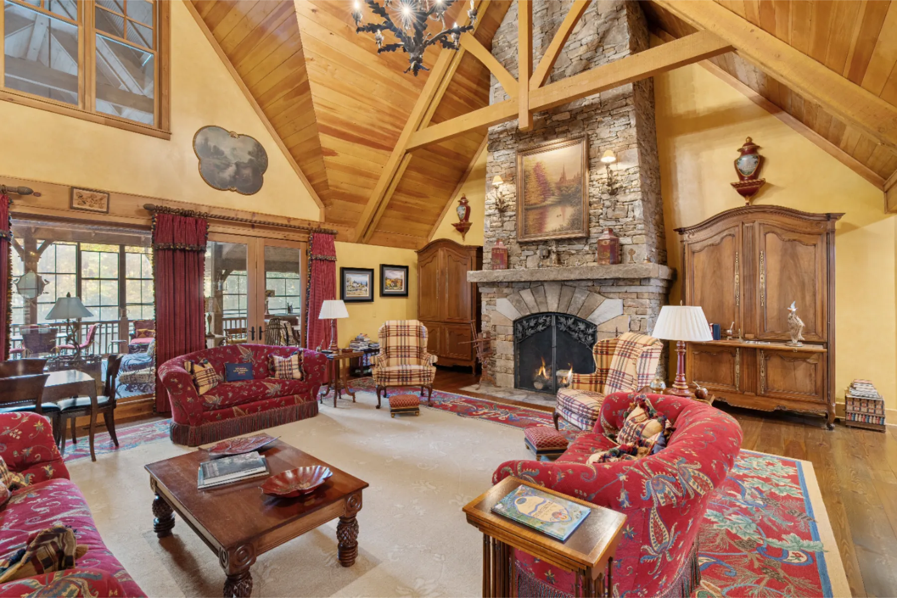 Only once in a decade does a property such as Brookside come onto the market! Adjacent to High Hampton in Cashiers, North Carolina, set two easily accessible acres with exceptional water features and an elegant Estate home. There quite simply are no comparables. Secluded from public view, the home was artfully designed with functional living spaces that take full advantage of the landscaped gardens and the sounds of cascading Fowler Creek, which meanders through the Estate. The 8,343 square-foot home encompasses eight bedrooms, twelve bathrooms, five fireplaces, six HVAC units, and two elevators providing elegant access to the North and South apartment wings. Close to Cashiers and walkable to High Hampton and its amenities. Offered furnished (few exceptions) and decorated, the home bustles with museum-quality furniture and significant collectibles curated over a lifetime of travel. Heart pine floors and custom designer carpets form the backdrop for each room's themed character (For details see “Seller’s Notes” and “Three Video Links” in the documents section). While the home boasts multiple gathering and private living venues, the vaulted Great Room is particularly remarkable. From its massive gas-fired stone fireplace to its bespoke display cabinet for a rare porcelain collection, it’s a feast for the eye. In temperate weather, the double French doors expand the space farther onto the Three Season Porch, which overlooks and welcomes the soft sounds of the cascading creek below. All in all, Brookside is a remarkable home on an even more remarkable private oasis. The experience of a visit will not soon be forgotten.