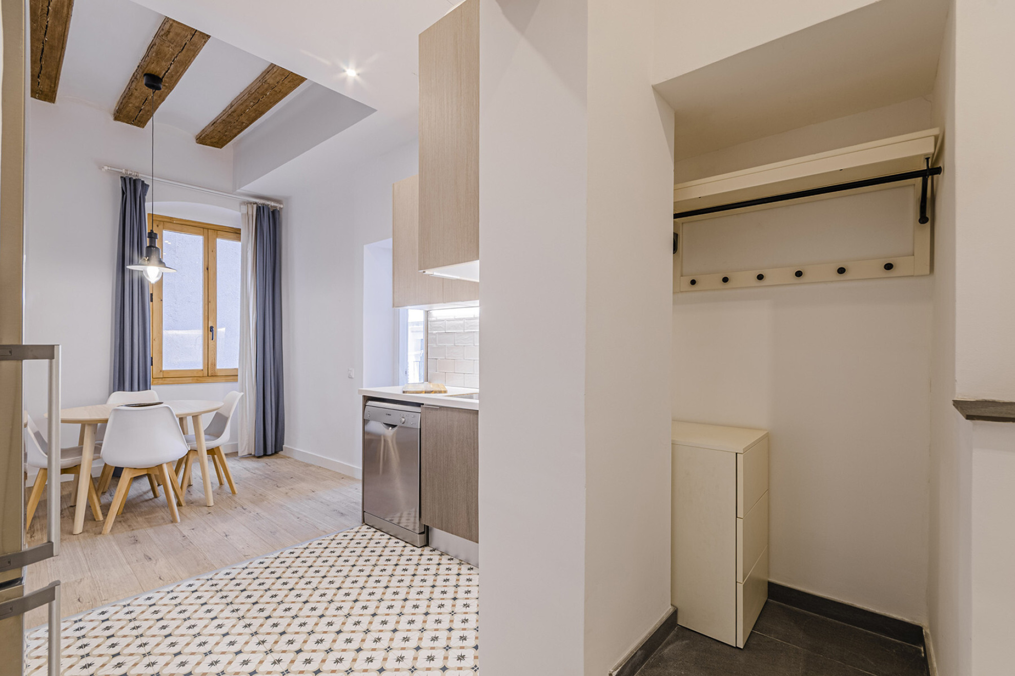 Located in a historic building dating from 1900 in the heart of the Born district, this pleasant one-bedroom apartment combines the charm of the original elements with a modern renovation and high quality furnishings. Thanks to the renovation, the apartment has been adapted to the demands of contemporary living to offer all the modern comforts without losing its unique character. It is an ideal option for investors seeking profitability through rental income.