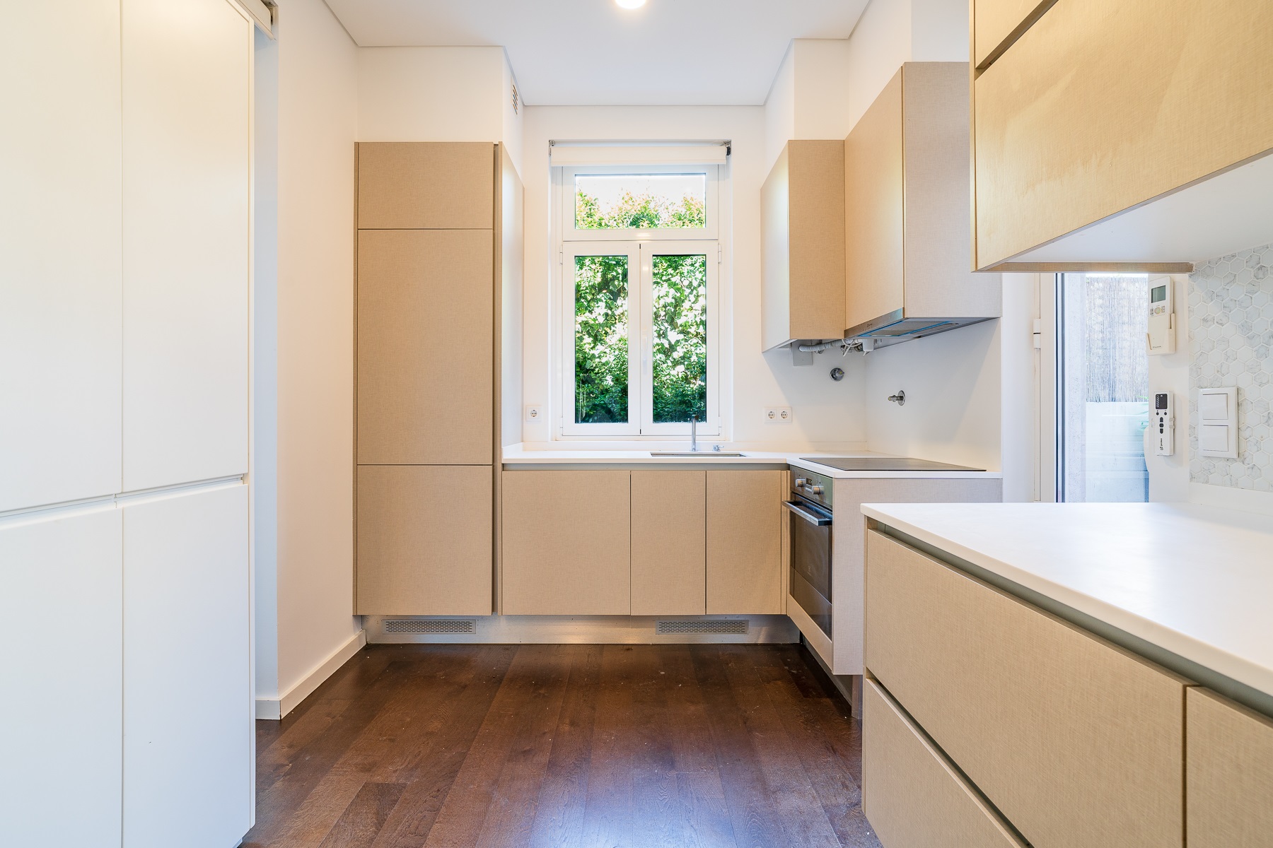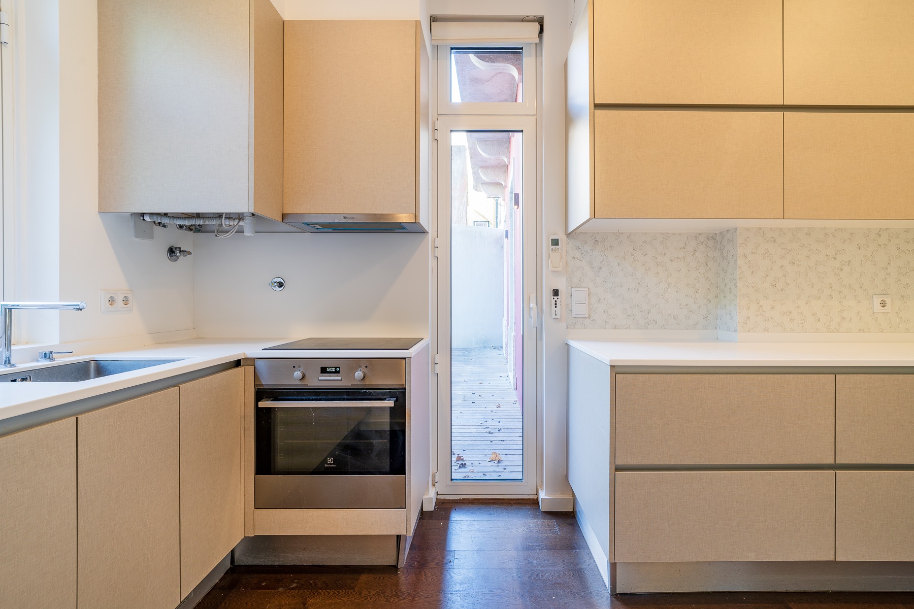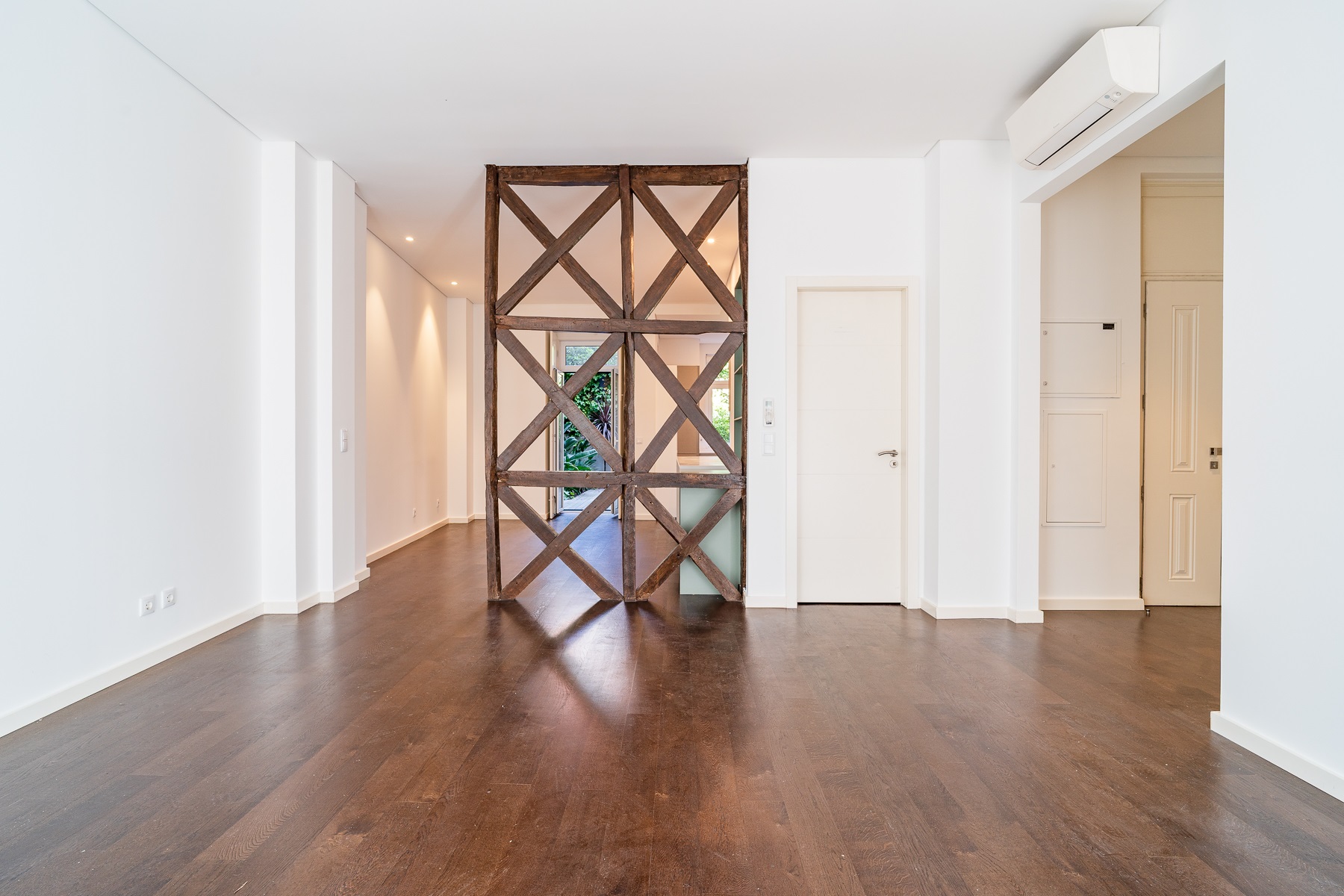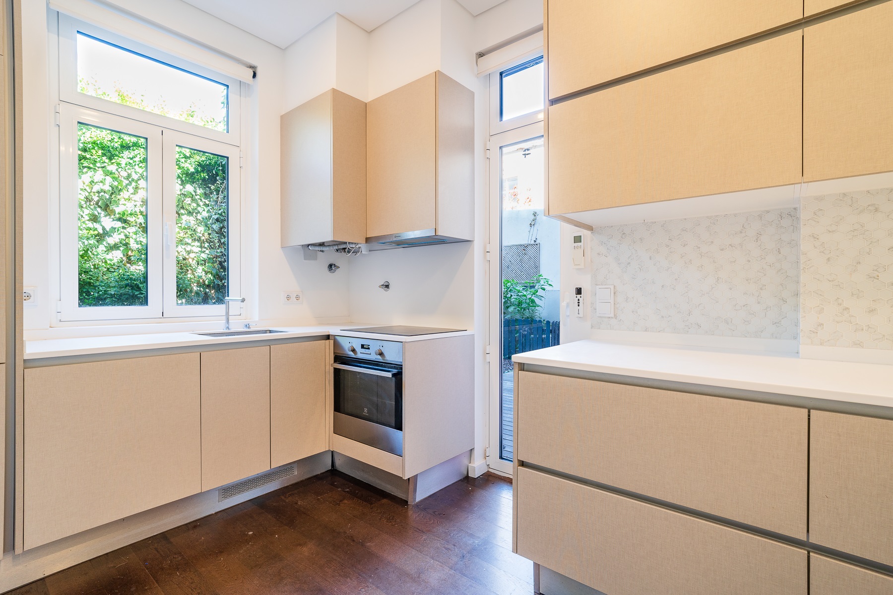 3-Bedroom Apartment with Garden in Estrela We present a rare and beautiful apartment with a magnificent private garden, located in the charming and vibrant Estrela neighborhood, in the heart of Lisbon. This apartment is part of a distinguished building, fully rebuilt in 2019, which preserves its historical architecture while offering all modern comforts. The layout includes a hall, a living room divided by a charming Pombaline cage structure, with large French windows and direct access to a stunning rear garden; a modern open-plan kitchen, fully equipped, also with direct garden access; a guest bathroom; three bedrooms, all with built-in wardrobes, one of which is a suite with a walk-in closet and direct access to the garden; and a full bathroom supporting the other bedrooms. It stands out for its very high ceilings, light and modern lines, surrounded by the tranquility of the garden and the colors of the city — your urban retreat. The building features an elevator, and each floor is exclusive to one apartment. Located in one of the most sought-after areas of the city, this neighborhood charms with its unique energy and welcoming atmosphere. Its lively streets, full of shops, markets, cozy cafés, and easy access to public transport, make it ideal for those seeking practicality without compromising on quality of life. Just one minute from Jardim da Estrela — a green haven in the urban heart — it offers the perfect balance between city buzz and natural serenity.