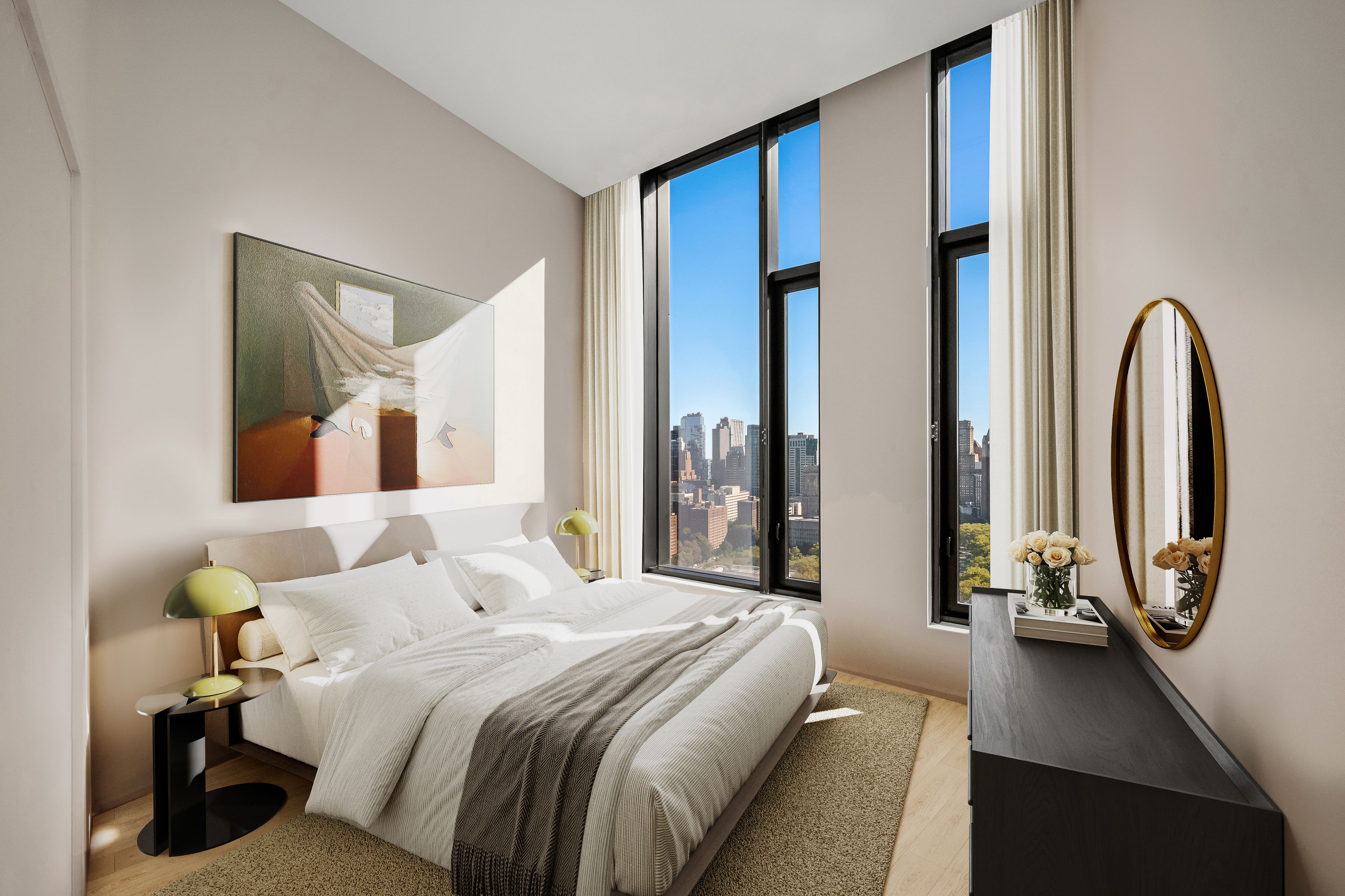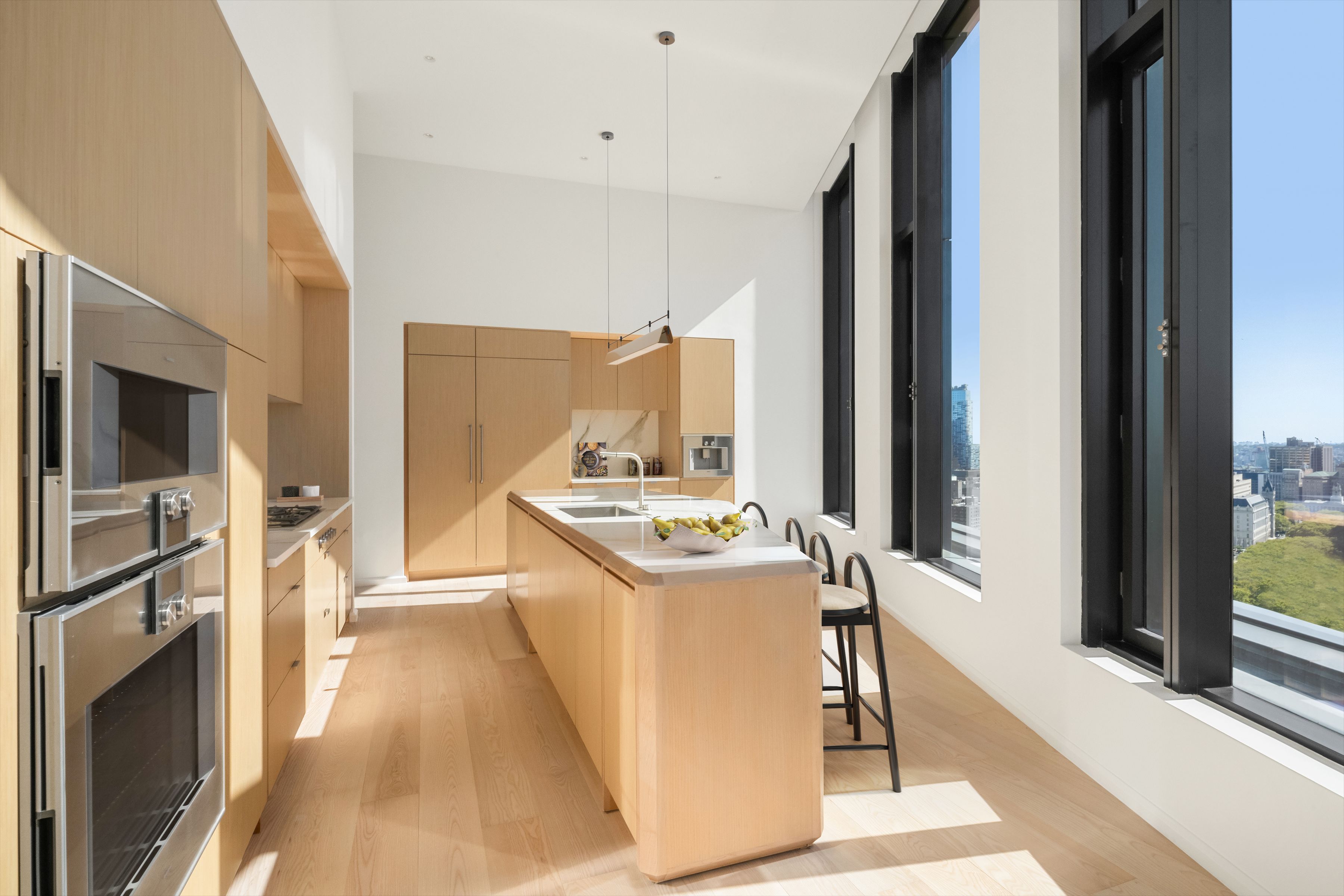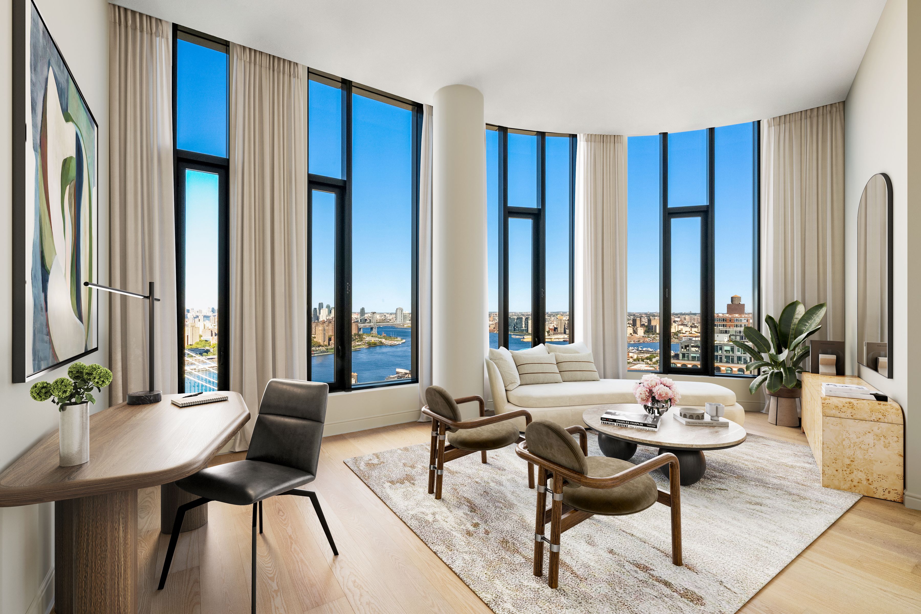 Immediate Occupancy. On-site model residences now available to tour by appointment. Presenting Penthouse A: The crown jewel of Dumbo. With 360 views and a private 498 SF river-facing terrace, this four-bedroom, three-and-a-half bath penthouse is 4,266 SF of entertaining perfection. Perched atop of Olympia Dumbo, PHA spans across the entire top floor, boasting breathtaking views from the 33rd floor, and ceiling heights up to 13’. Arriving home via elevator to a private landing, the formal foyer and gallery lead to the sun-filled living and dining areas, highlighting remarkable views of the Brooklyn Bridge, Manhattan and New York Harbor. The living area is finished with a wet bar featuring white maple cabinetry, Calacatta Vagli Oro marble backsplash, stainless sink and a Thermador wine cooler. The Workstead-designed kitchen is stylishly separated from the main living area and features a spectacular island with Calacatta Vagli Oro marble and chamfered edges, white maple cabinetry paired with satin nickel hardware, Gaggenau appliances and a separate walk-in pantry. A laundry room with side-by-side LG W/D, and the powder room are discreetly located off the main hallway. The powder room features a custom vanity with a stone top, and Federal Blue tile floors. The Manhattan Bridge-facing primary suite features double walk-in closets, a linen closet, and an exceptional en-suite bathroom. With Agglo Ceppo honed stone walls, flooring and countertops, a custom double vanity with satin nickel pulls, deck-mounted faucets and controls, dual water closets, dual showers, and a freestanding soaking tub. As a spacious, separate room just off the foyer, the den/fourth bedroom features curved windows and multiple closets, the perfect space for working or unwinding. In their own wing, the additional two bedrooms feature en-suite bathrooms with Federal Blue tile flooring, undermount tubs with brushed nickel fixtures and custom maple vanities. Olympia is a modern interpretation of its surroundings. With exteriors by Hill West Architects and interiors by Workstead, the 76 homes reflect a sense of scale and rhythm that are grounded in the maritime and industrial heritage of Dumbo's waterfront. Olympia is designed to maximize comfort and convenience, boasting over 38,000 SF of indoor and outdoor services and amenities spread over 3 levels. The Garden level features ground-floor amenities. Through a private entry court, a porte cochère welcomes you to a sheltered vestibule, and to the building’s triple-height lobby. The fully serviced lobby features a sculpture by Jacob Hashimoto and floor-to-ceiling window walls. Adjoining the lobby is the private garden lounge, perfect for reading a book, while overlooking the MPFP-landscaped Gair Gardens. Located in the building’s lower level, The Club is all about fun and fitness, complete with a game lounge, bar, bowling alley, fitness center, spin studio, boxing gym, private locker rooms and maritime-themed kids’ playroom. The Bridge level of Olympia is located on the 10th floor and offers a variety of indoor and outdoor amenities. Features include a 60’ indoor lap pool, wellness amenities, a 58’ outdoor pool and hot tub, cabanas, barbecue areas, children’s playground, and a full-size tennis court overlooking the Brooklyn Bridge, lower Manhattan & beyond. Additional services include private on-site parking available for rent or purchase, 24-hour doorman and concierge, package room with refrigerated storage, bicycle storage and private residential storage available for purchase. Sponsor: Fortis Dumbo Acquisition, LLC, 45 Main St, Suite 800, Brooklyn, NY 11201; Sponsor makes no representation or warranties except as may be set forth in the offering plan filed with the NYS Department of Law. The complete offering terms are in an OP available from sponsor. NYS Department of Law File No. CD20-0174. Equal Housing Opportunity. Co-exclusive.