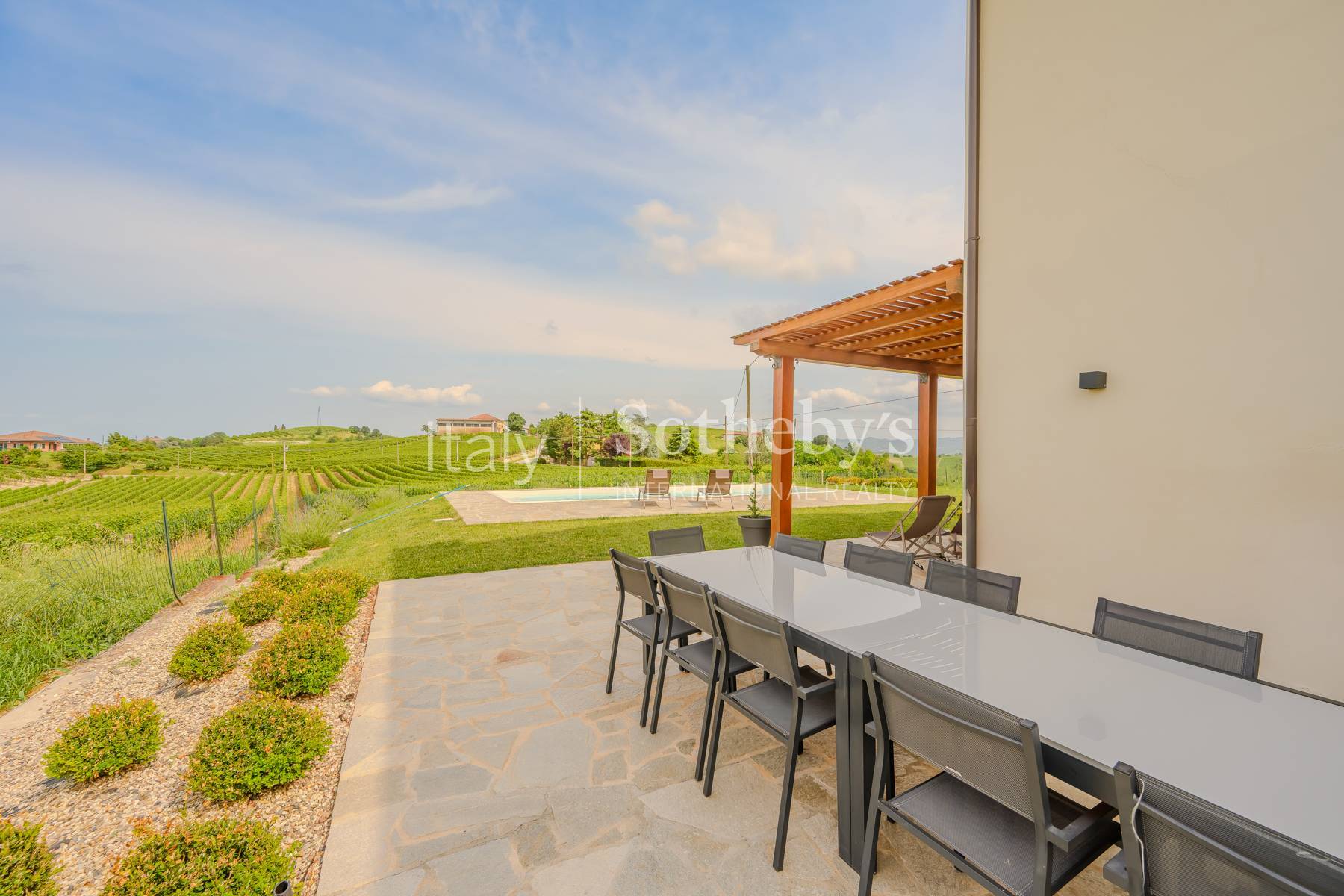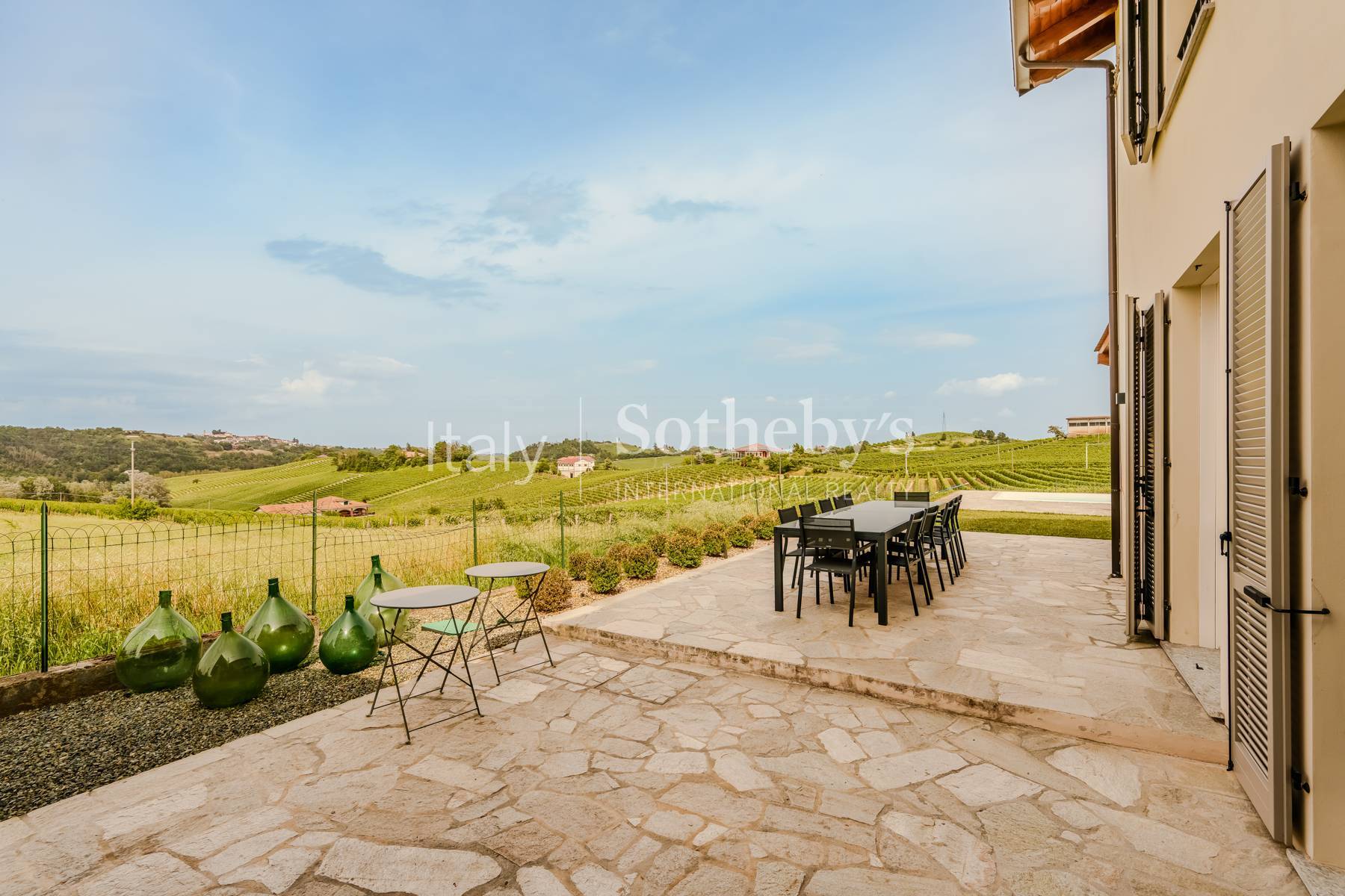 Immersed in the timeless landscape of the hills surrounding Nizza Monferrato, amid rows of vineyards and spectacular views, this charming villa offers the perfect blend of nature, contemporary architecture, and exclusive comfort.Fully renovated and tastefully furnished, the property is arranged over two levels, with spacious, light-filled rooms, large windows, and a seamless connection between indoors and outdoors.The ground floor is conceived as a large open space: distinct yet fluid areas feature a modern kitchen with direct access to the outdoor terrace, a dining area, and a refined living room with glass walls opening onto the pool. The floor is completed by an elegant entrance hall and a bedroom with a private en-suite bathroom. On the first floor, five bedrooms with en-suite bathrooms provide comfort and privacy, all boasting panoramic views over the vineyards and the gentle hills of Monferrato. Outside, the swimming pool and relaxation areas offer an atmosphere of peace and beauty.The villa is perfect as a private residence, yet also represents an excellent investment opportunity for luxury short-term rentals and experiential stays, thanks to its strategic location in the heart of the Monferrato, a UNESCO World Heritage Site, and easily accessible from Asti, Alba, and Turin.