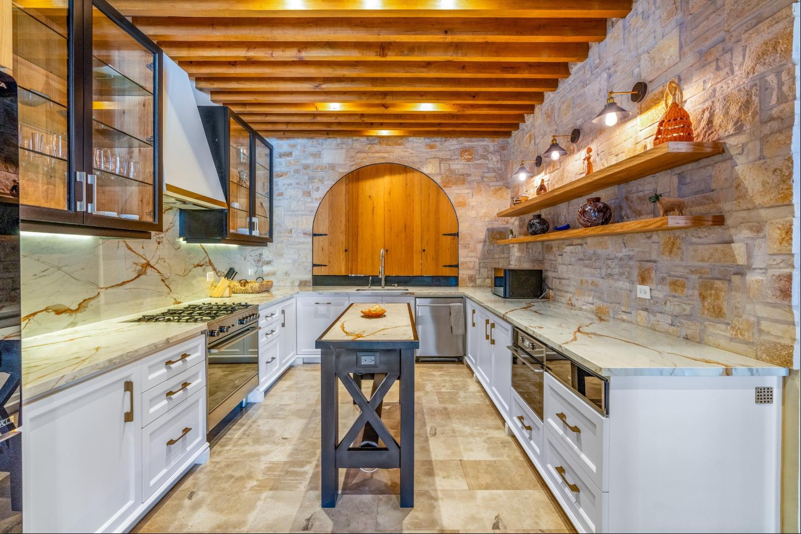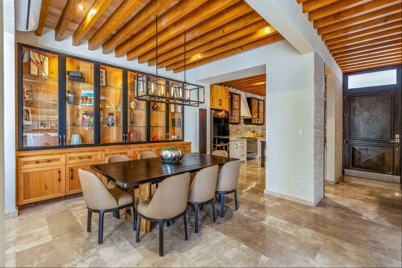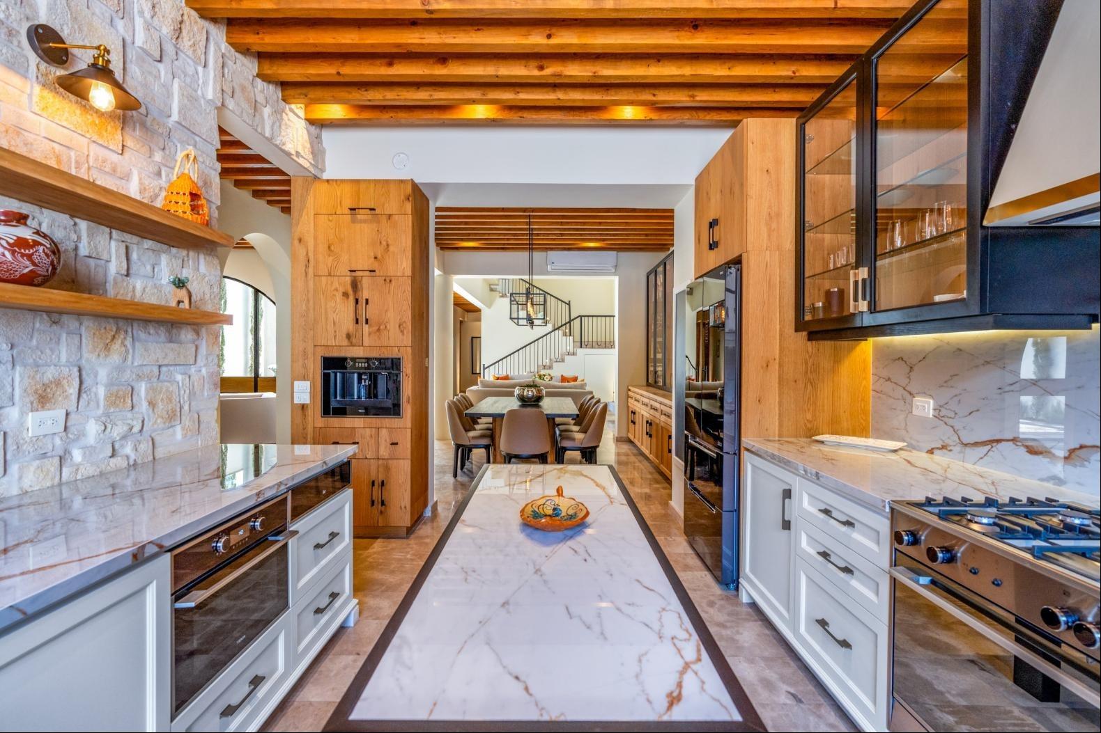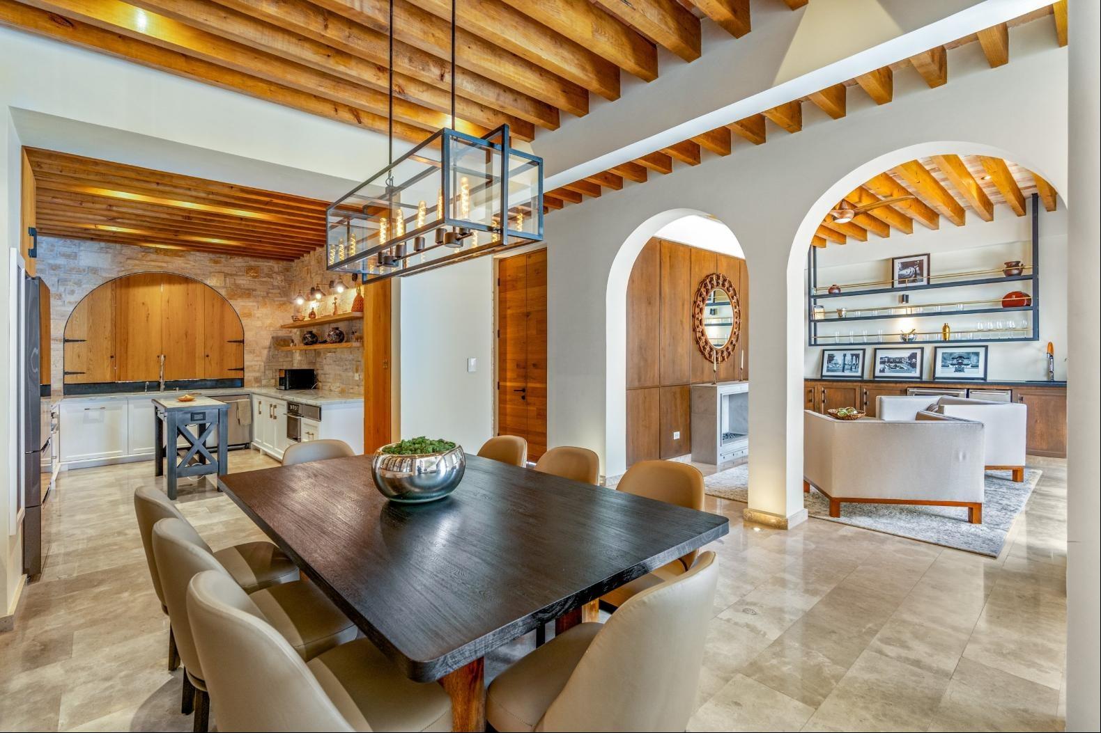 This beautiful home is located in the sought-after gated community of Acuerla. A soft contemporary design filled with natural light, it offers stylish comfort with a relaxed elegance. Marble floors run throughout the home, adding a touch of timeless sophistication.The living room is a dramatic two-story space, with the staircase serving as an architectural feature and part of the overall arch motif found throughout the home. The main entertaining areas flow seamlessly and open onto an interior patio, where the gentle sound of a trickling fountain adds a tranquil ambiance.The kitchen is a delight, featuring a large arched window that welcomes the morning sun. Also on the main level is a bedroom, providing the option for single-level living.Upstairs, you'll find a guest room with an ensuite bath and a generous primary suite that opens to a private plunge pool. The primary suite also includes a cozy sitting area perfect for relaxing in privacy.The rooftop level is a true highlight, offering panoramic views and multiple spaces for entertaining, including a grilling area, bar, dining space, and outdoor living room.Additional features include a private elevator, providing easy access to all levels of the home, and a garage.