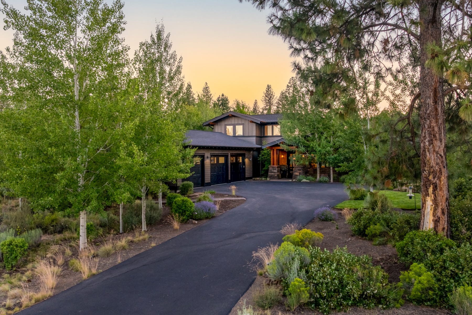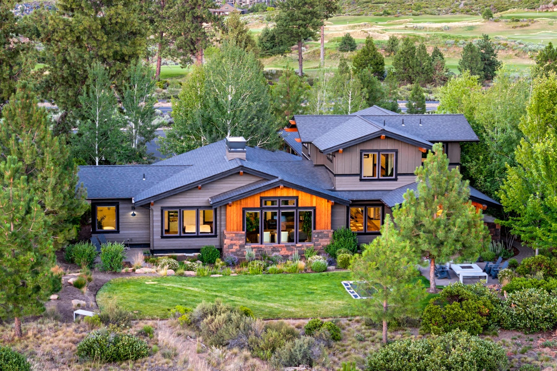Against the backdrop of the Deschutes National Forest, this mountain-modern residence offers a rare blend of privacy, luxury, and lifestyle. With direct access to Phil's renowned trail network just outside your door, the setting is as inspiring as it is rare. Expansive windows frame forest views and capture Bend's golden morning light and glowing evening skies, while the thoughtfully designed interior exudes warmth, sophistication, and effortless elegance. A main-level primary retreat offers a spa-like bath and spacious walk-in closet, while custom finishes and curated design details extend throughout. Located within one of Bend's premier golf course communities, this one-of-a-kind property offers an exceptional retreat with seamless access to Central Oregon's best recreation and the distinctive lifestyle that defines Tetherow.