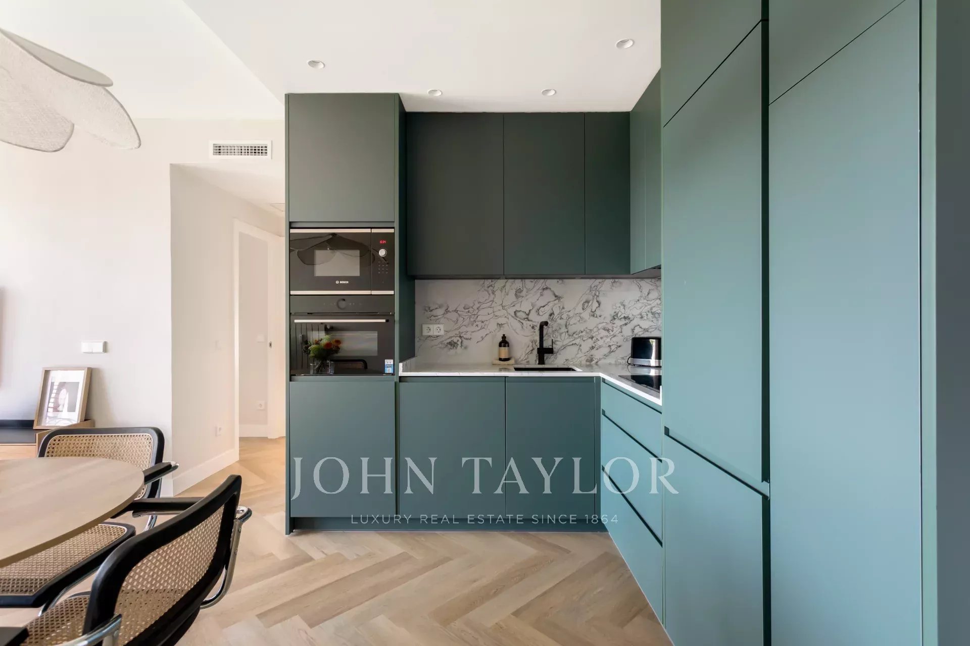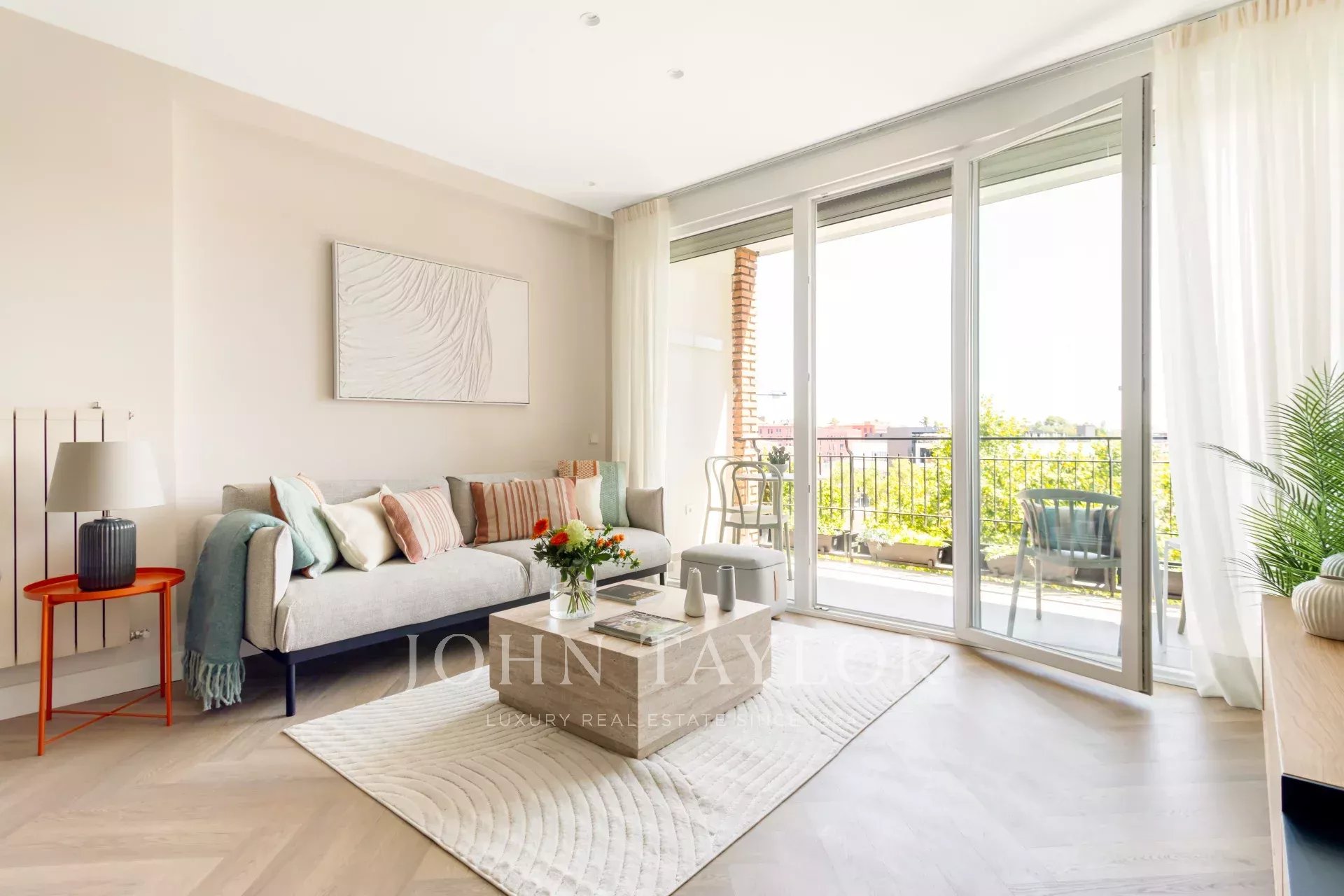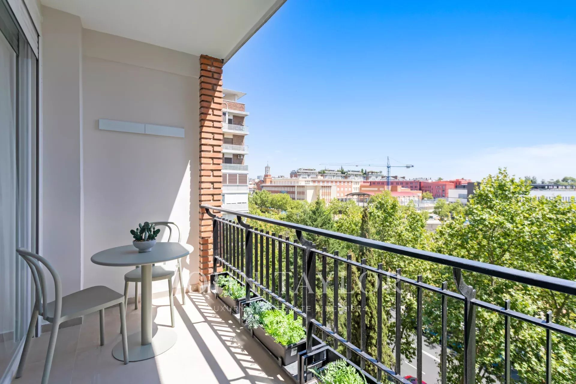 HOUSING AVAILABLE FROM JUNE 2026. The property is located on the sixth floor of a well-maintained building with a 24-hour porter service. Solarium and swimming pool on the top floor of the building.The apartment has been completely renovated, paying attention to every detail in both the renovation and interior design. It has an area of 91 m² distributed in a living-dining room with an integrated kitchen, a habitable terrace facing east with fabulous views of Madrid.The night area consists of two bedrooms, the main bedroom with an en-suite bathroom, a secondary bedroom facing south, and a full bathroom in the hallway.The property is rented fully furnished.Located on Padre Damián Street, one of the most desirable streets in Nueva España, due to its excellent location, proximity to sports areas, its commercial and gastronomic offerings, and the large green areas surrounding it.The property is fully exterior, boasts excellent natural light, central heating with individual consumption devices, and central air conditioning. Long-term contract.Undoubtedly, we are dealing with a charming, practical home ready to move in. Long-term rent. Individualized consumption to be paid by the tenant. Lease conditions include the current month's rent, a security deposit equivalent to one month's rent, and two months' rent as additional guarantee.