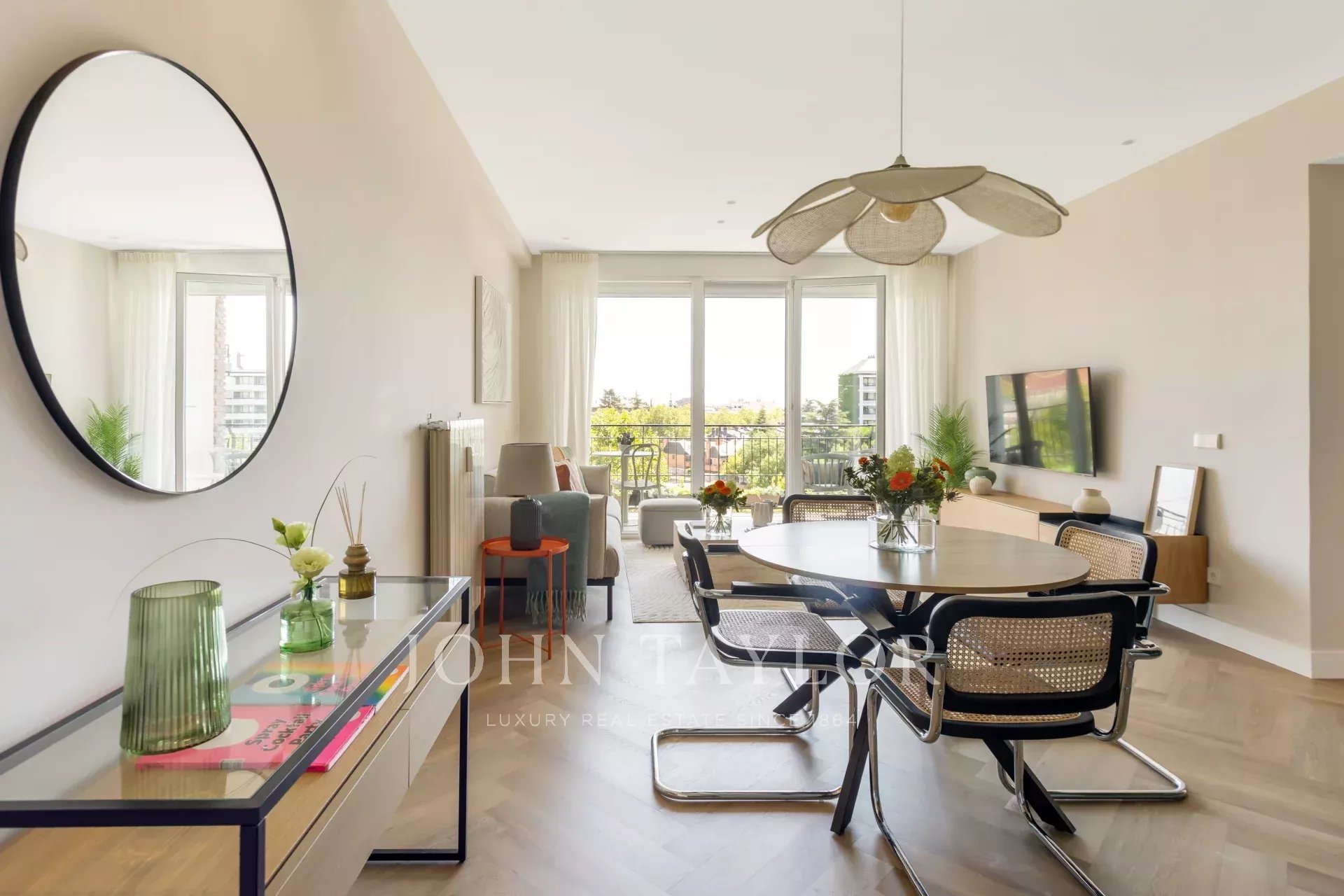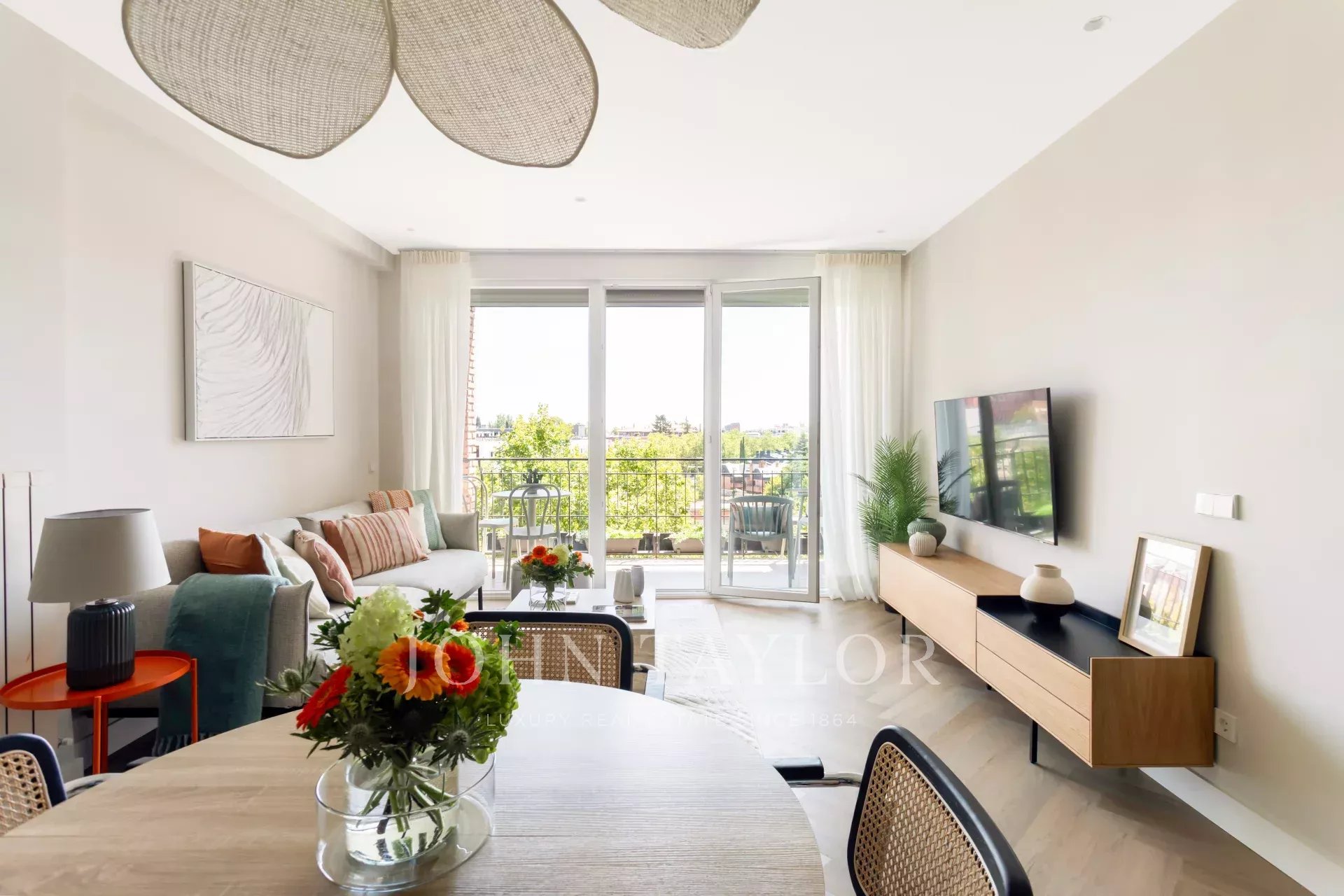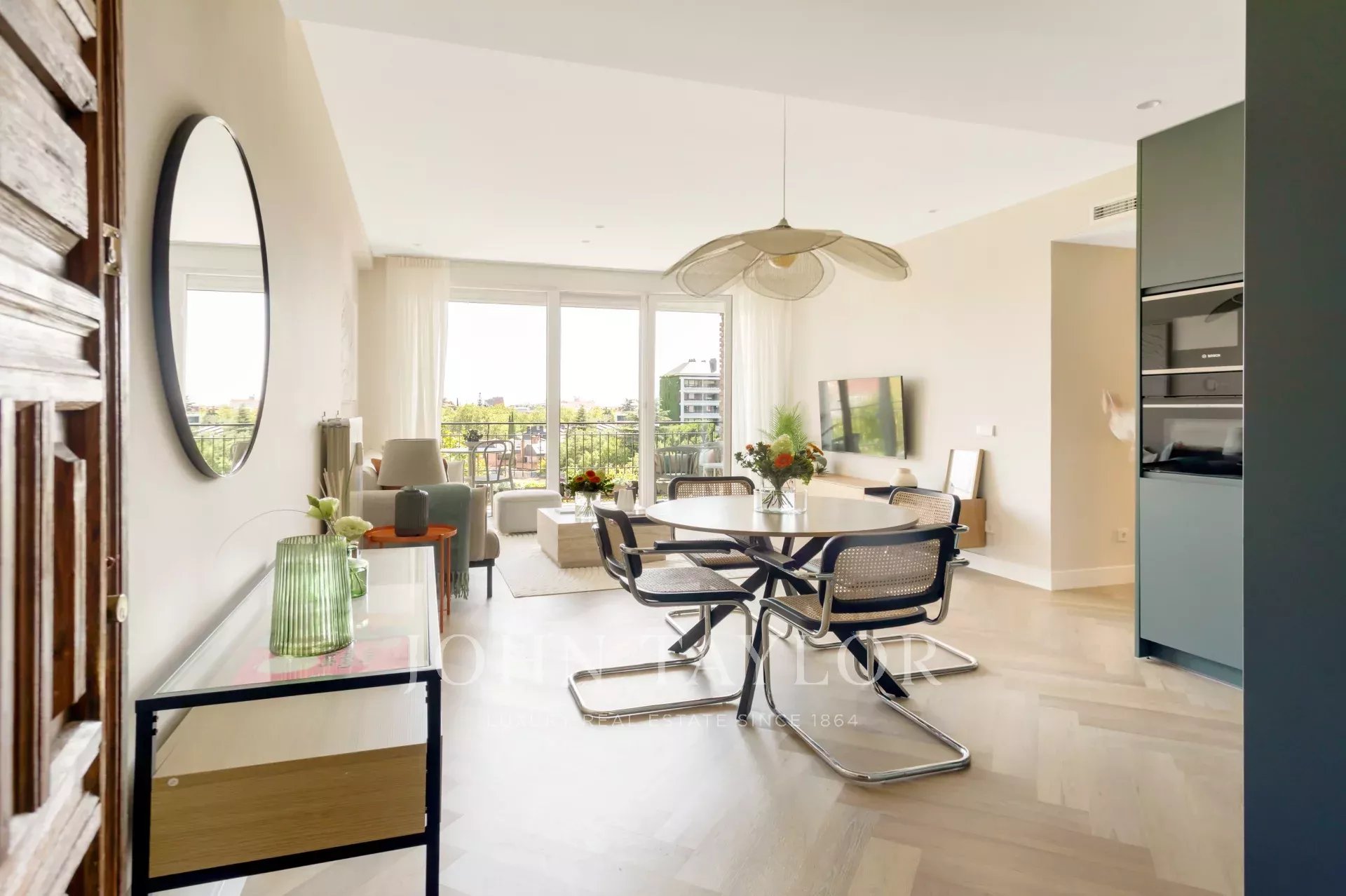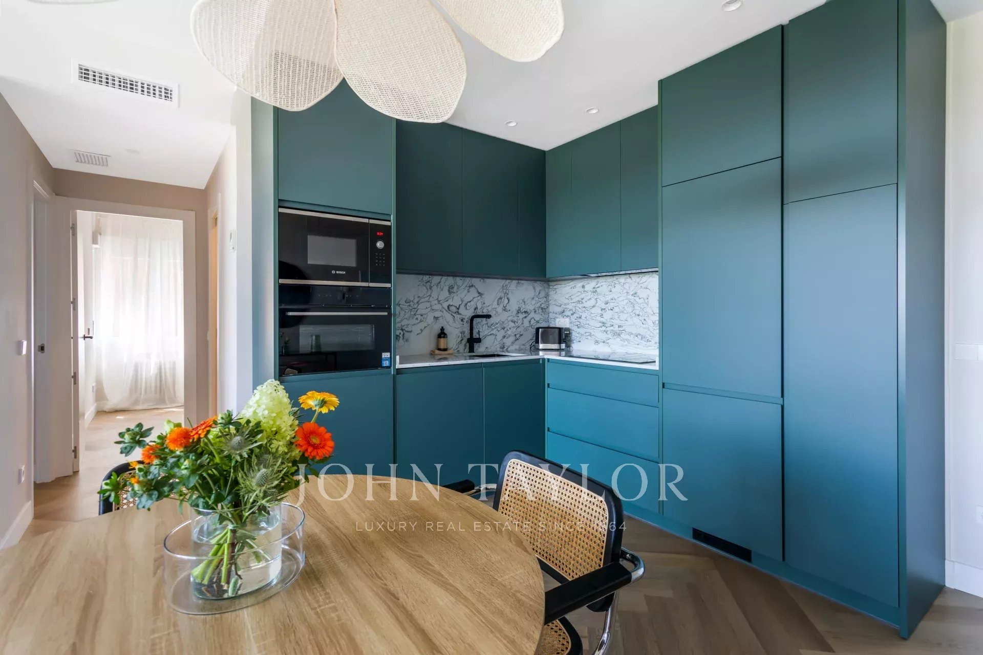 HOUSING AVAILABLE FROM JUNE 2026. The property is located on the sixth floor of a well-maintained building with a 24-hour porter service. Solarium and swimming pool on the top floor of the building.The apartment has been completely renovated, paying attention to every detail in both the renovation and interior design. It has an area of 91 m² distributed in a living-dining room with an integrated kitchen, a habitable terrace facing east with fabulous views of Madrid.The night area consists of two bedrooms, the main bedroom with an en-suite bathroom, a secondary bedroom facing south, and a full bathroom in the hallway.The property is rented fully furnished.Located on Padre Damián Street, one of the most desirable streets in Nueva España, due to its excellent location, proximity to sports areas, its commercial and gastronomic offerings, and the large green areas surrounding it.The property is fully exterior, boasts excellent natural light, central heating with individual consumption devices, and central air conditioning. Long-term contract.Undoubtedly, we are dealing with a charming, practical home ready to move in. Long-term rent. Individualized consumption to be paid by the tenant. Lease conditions include the current month's rent, a security deposit equivalent to one month's rent, and two months' rent as additional guarantee.