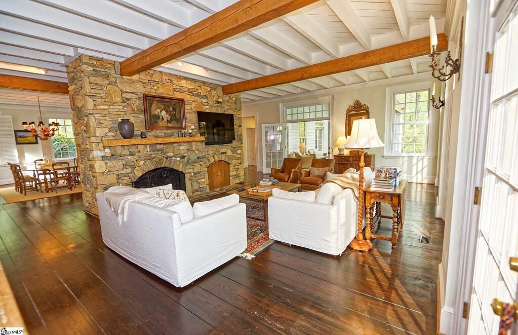 Butter Moon Farm An Exquisite Estate on 58 Acres in Landrum, SC This breathtaking estate offers the perfect harmony of nature and world-class craftsmanship, nestled on nearly 58 pristine acres in beautiful Landrum, SC. A spectacular winding driveway leads you to this beautiful home featuring 6 bedrooms, 6 bathrooms, and thoughtful design at every turn-from trim details to layout, color palette, and flow. Inside, the open floor plan is bathed in natural light. From the welcoming foyer, step into the grand formal dining room, which connects seamlessly to the spacious kitchen-complete with Sub-Zero refrigerator, Thermador cooktop, double ovens, two dishwashers, warming drawer, ice maker, microwave, granite countertops, and an oversized island perfect for family gatherings. The adjacent breakfast room and cozy living room with its stunning stone fireplace flow effortlessly to the newly replaced back deck and a spacious screened-in porch with skylights and ceiling fans-ideal for morning coffee, reading, or entertaining. The serene main-floor primary suite features a trey ceiling, fireplace, walk-in closets, stackable washer and dryer, and a private sitting room with a second fireplace. The elegant en-suite bathroom boasts jetted tub, walk-in shower, and double vanity. A second main-floor bedroom includes its own private entrance and en-suite bath-perfect for guests or multigenerational living, or as an office. The spacious mudroom off the porte-cochere entrance includes a sink, custom cabinetry, and built-in storage. Throughout the main floor, wide plank hardwood floors-salvaged from historic mills-add timeless character and warmth. Upstairs, you'll find four additional spacious bedrooms-two with en-suite bathrooms, and two sharing a Jack-and-Jill bath-as well as a large laundry room with sink, cabinetry, and seasonal storage. A second staircase leads conveniently back to the kitchen and breakfast area. The finished basement includes another beautiful stone fireplace, kitchenette, full bathroom, expansive recreation room, multiple storage areas, and walkout access to the backyard-ideal for entertaining, grilling, or enjoying the backyard and firepit. Above the detached two-car garage is a generous guest suite, or office, or work-out space complete with full bath, kitchenette, and closet. For the equestrian enthusiast, the charming 7-stall barn has been recently cleaned out and upgraded with leveled, matted floors and fresh paint. It also includes a tack room, feed room, and fenced pastures, with a riding arena on site. Plus, the NPA trail system runs along the edge of the property, offering hours of scenic trail riding. Additional features include: Newly replaced deck, 2022 architectural roof, Generator, Fully encapsulated crawlspace, and Professionally designed landscape with rare tree and shrub species. Located in sought-after Landrum, this private retreat offers easy access to Spartanburg, Greenville, Greer, GSP Airport, Tryon, and TIEC. A rare opportunity to own a legacy property-schedule your private showing today. Video tour available