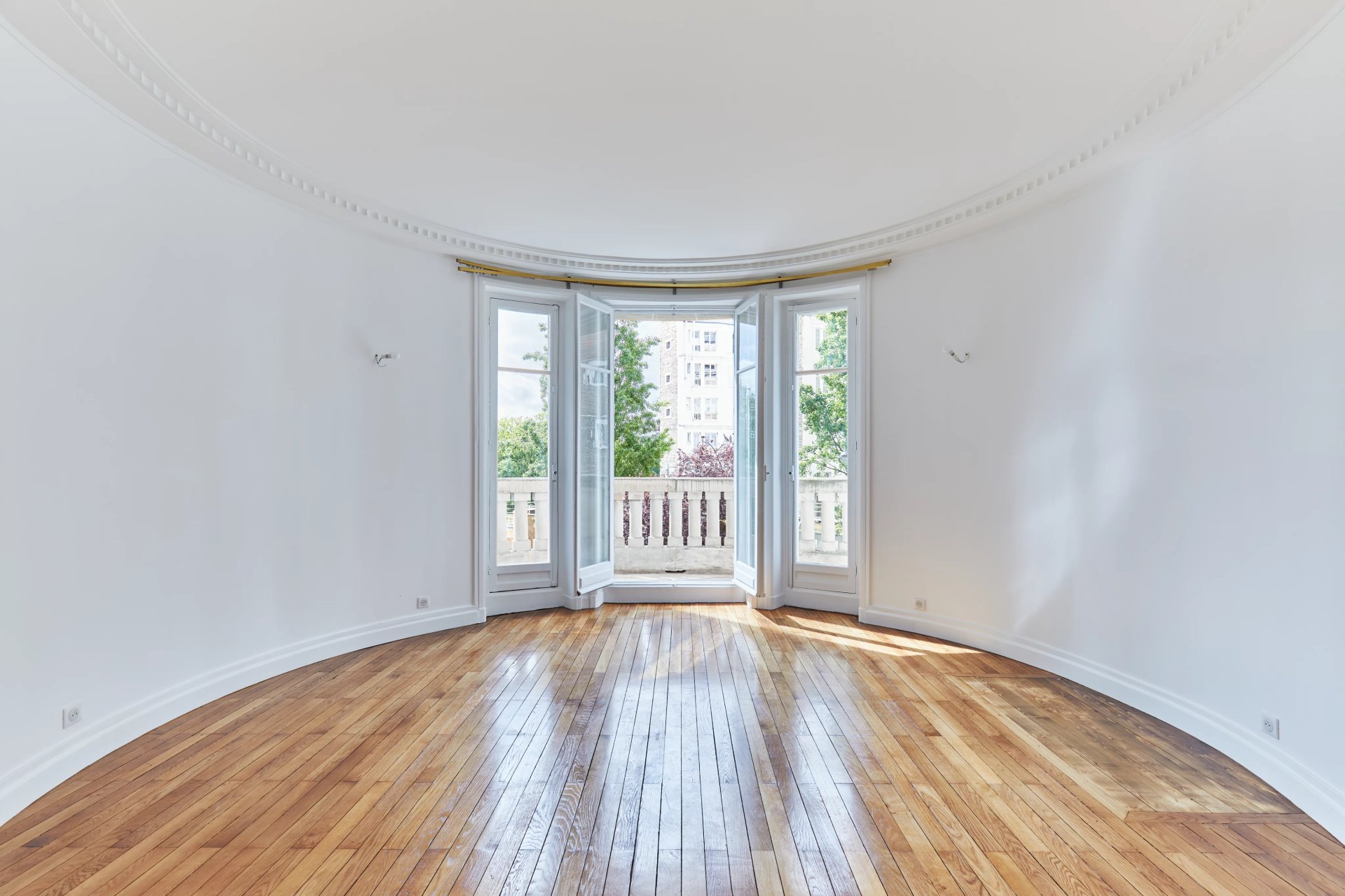 Period features include 2.97 metre high ceilings with mouldings, parquet flooring, and wide floor-to-ceiling windows.
