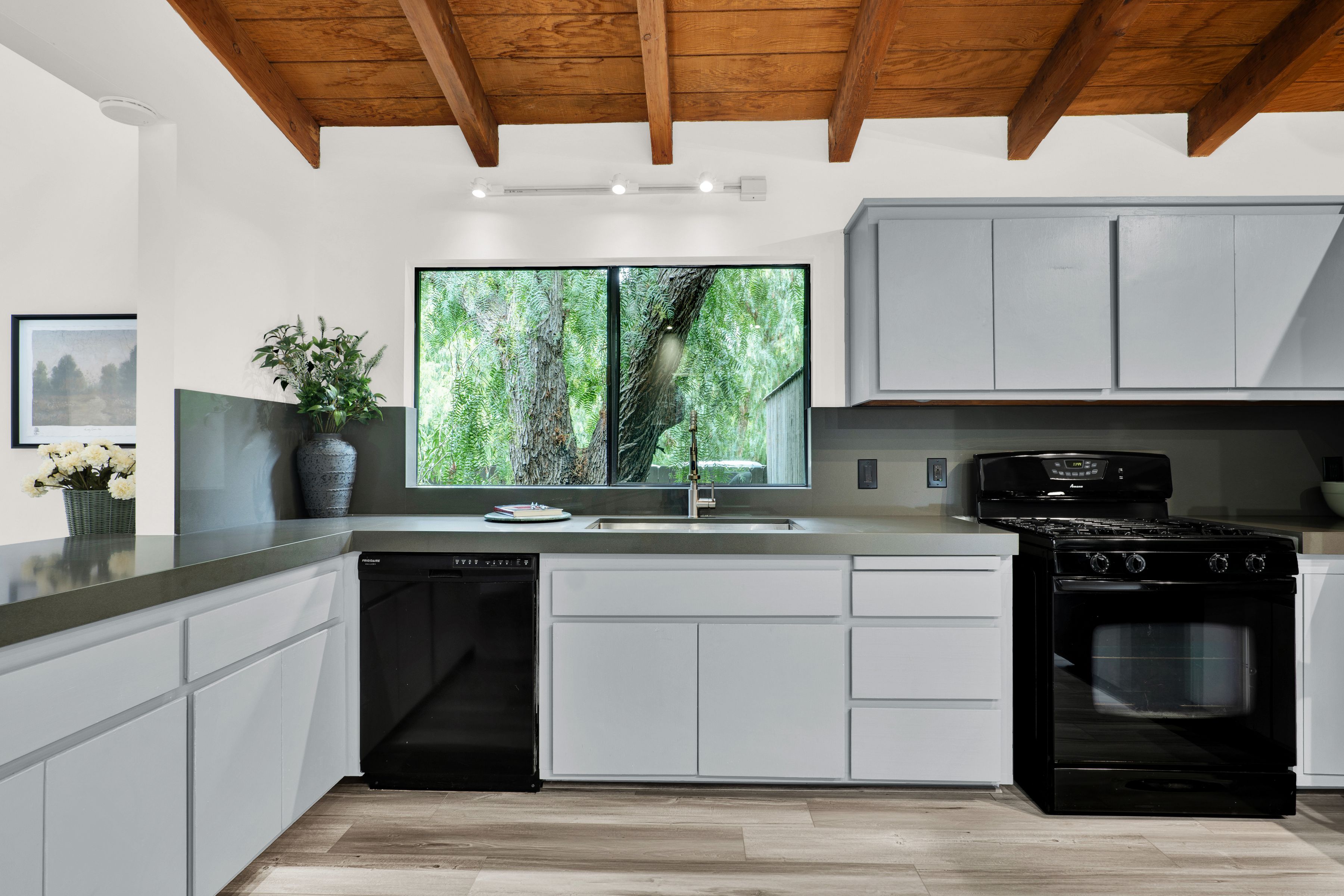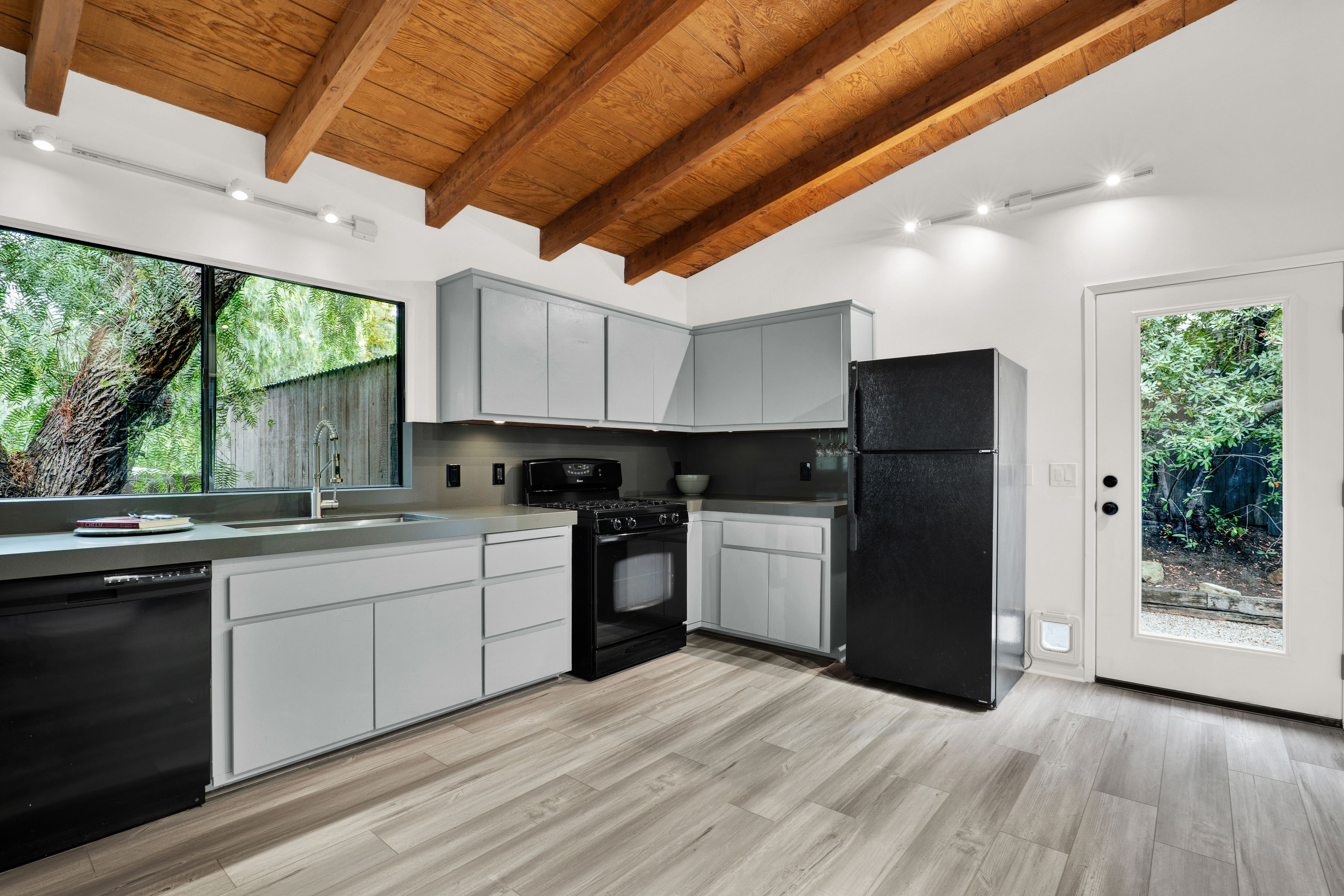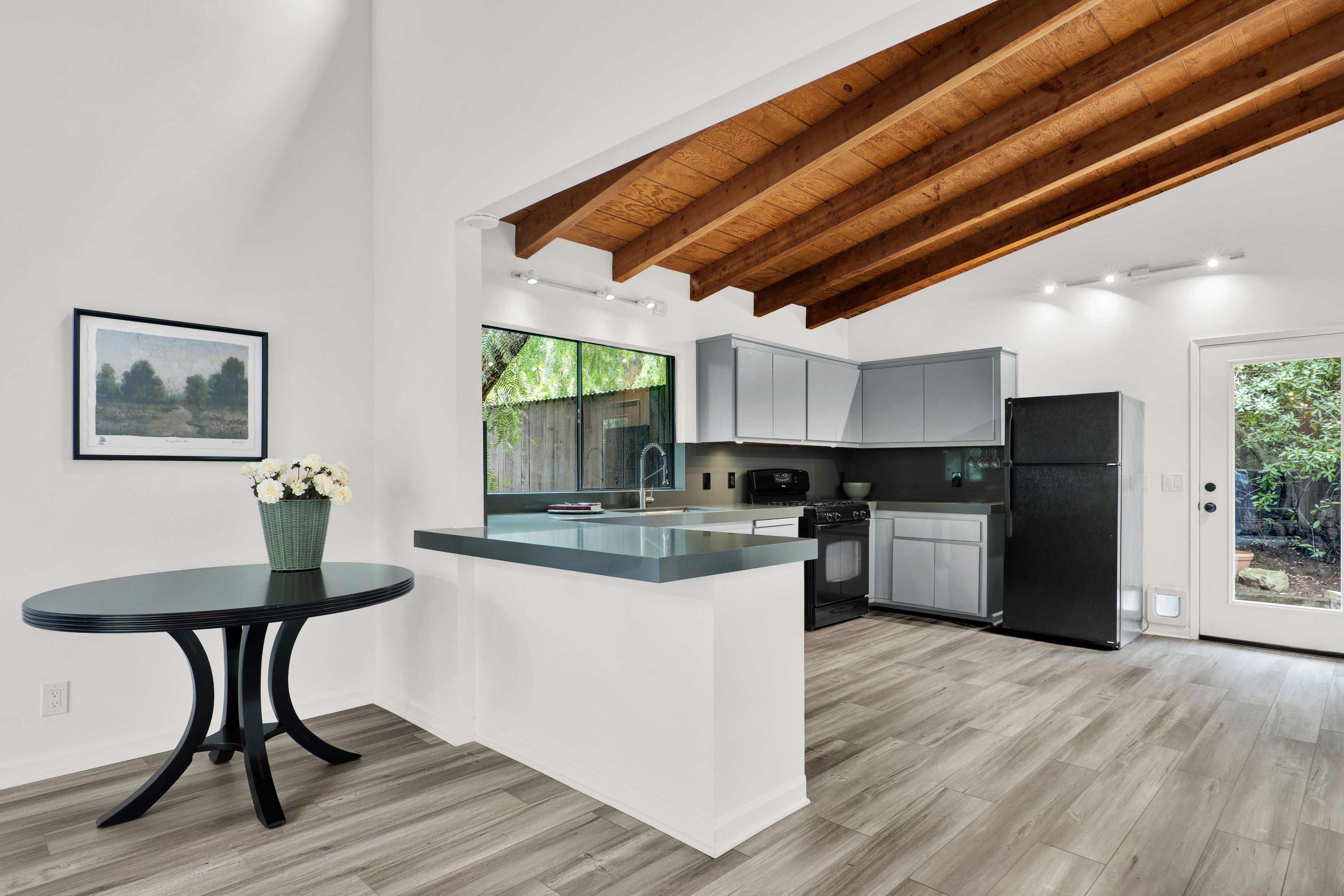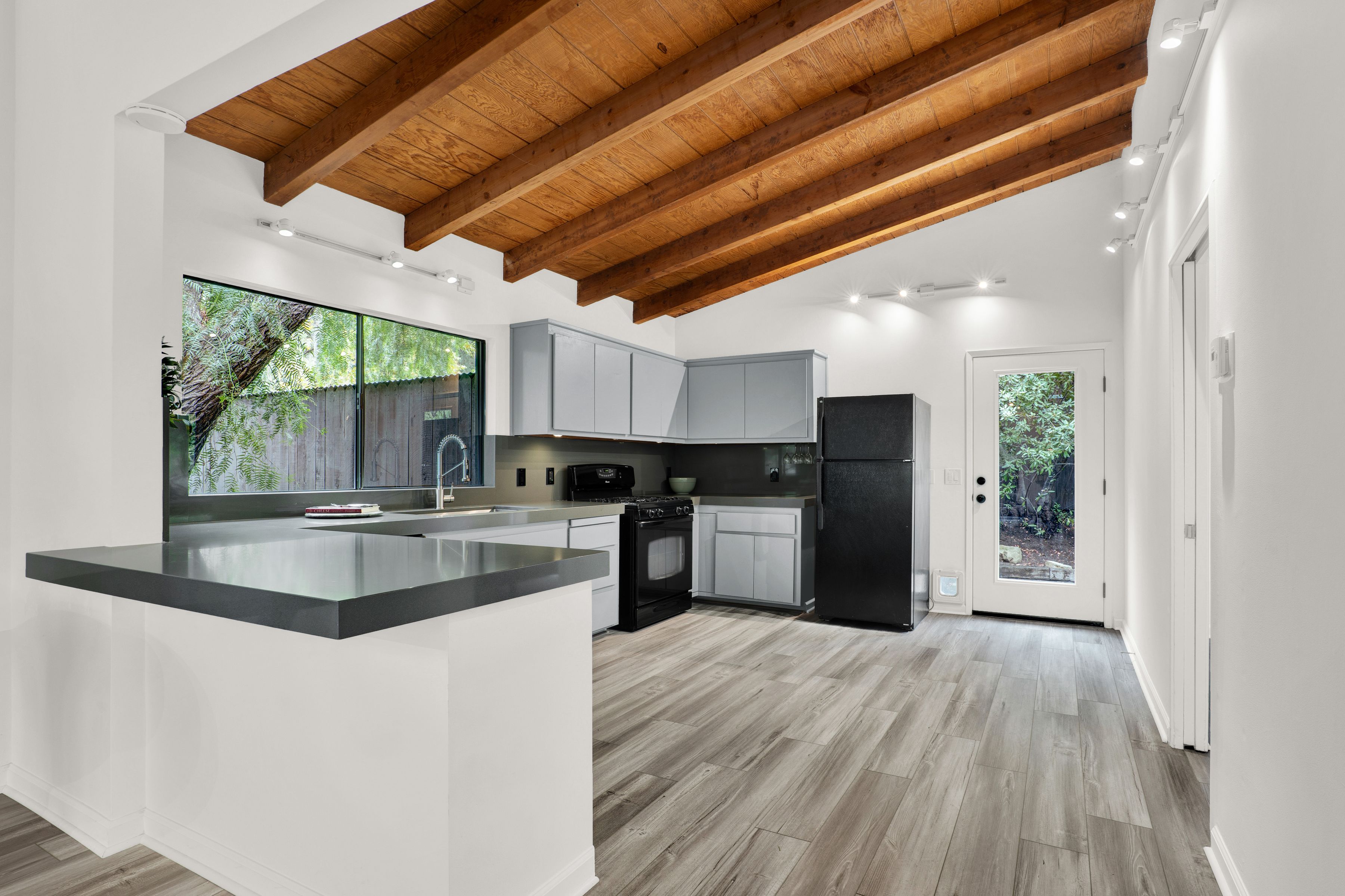 Located in the Desired Climate Perfect Fernwood area of Topanga Canyon. This Private 2 Bedroom, 1 Bath Home is part of a Large Estate and Features High Beam Ceilings, Open Floorplan, New Kitchen Countertops and a Fireplace in the Living Room. Enjoy a Private Laundry Area with Full-Size Washer and Dryer. Relax on your own Private Decks and Private Back Yard with Overhanging Trees & Fresh Ocean Air with Morning Fog. Central Air & Heat, Dishwasher, New Floors and Plenty of Parking.