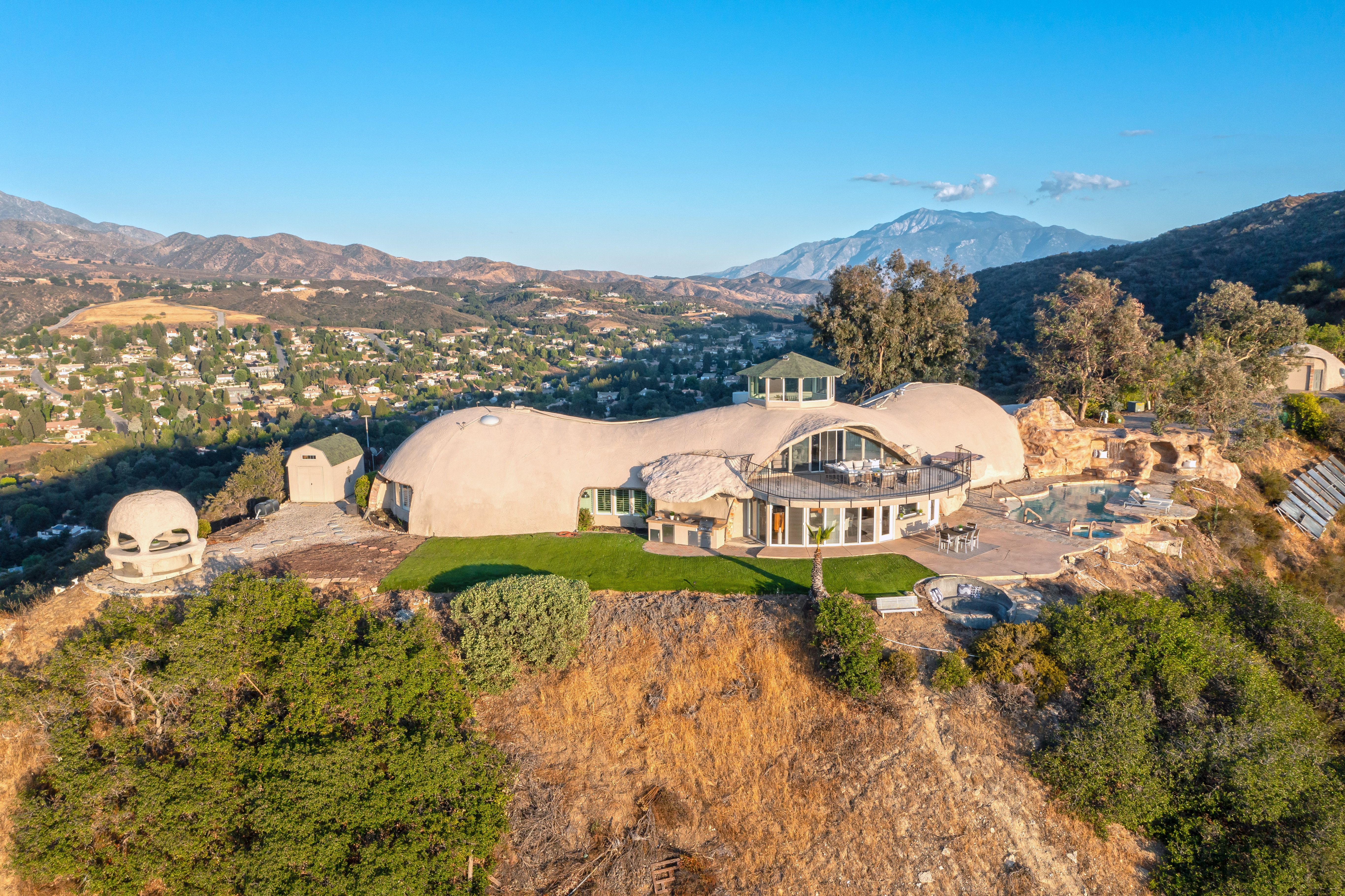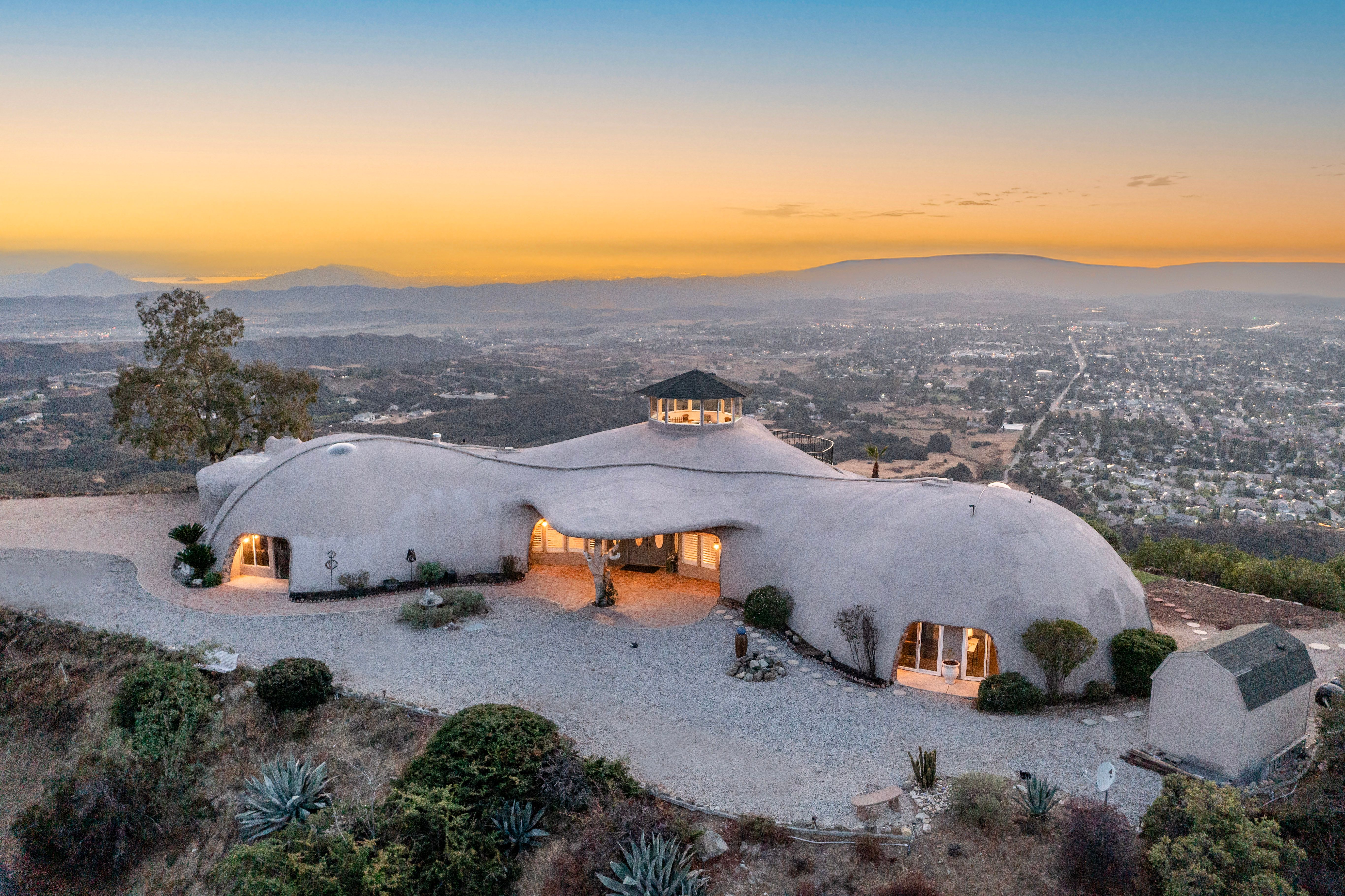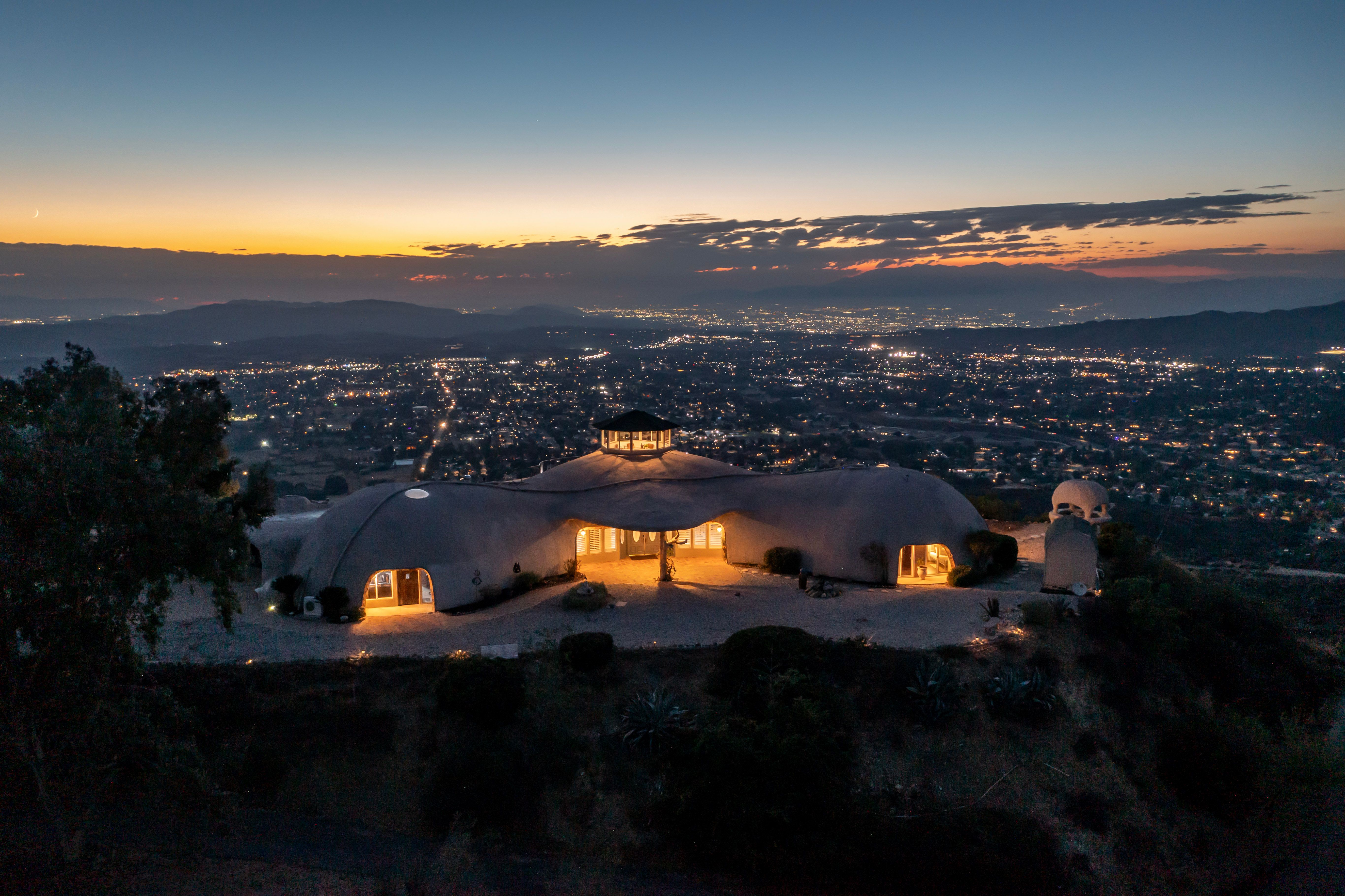 Welcome to Vista Dhome, an extraordinary monolithic dome residence situated atop a breathtaking mountain in Yucaipa, California. Spanning 3,895 square feet of thoughtfully designed living space, this unique home rests on 42 acres of pristine mountain top land at an elevation of 3,800 feet. Here, you’ll experience true 360-degree panoramic views that sweep across the landscapes of Yucaipa, Calimesa, Cherry Valley and the rugged majesty of the surrounding mountains. From your vantage, gaze over the San Bernardino National Forest, Lake Perris, and Lake San Jacinto. On a clear day, your eyes can wander as far as Palm Springs and even the distant outline of Catalina Island. This setting delivers unparalleled vistas and a sense of tranquility that is simply unmatched, ideal for those seeking harmony between contemporary comfort and raw natural beauty. Nestled in the foothills of the San Bernardino Mountains, Vista Dhome offers both peaceful seclusion and convenient access to local amenities. The property is located near scenic parks, hiking and biking trails, shopping centers, and top-rated schools, ensuring a lifestyle that blends relaxation with opportunity. *Monolithic Dome Design: The home's innovative dome shape provides exceptional energy efficiency, structural integrity, and a striking architectural profile. *Expansive Living Space: The residence features an open-concept floor plan illuminated by natural light, soaring ceilings, and elegant finishes throughout. *Resort-Style Pool and Spa: Enjoy an exotic swimming pool complete with a dramatic waterfall and a hidden grotto, creating an atmosphere of tropical luxury. Relax in the inviting in-ground spa, or retreat to the additional above-ground spa perched on the expansive viewing deck, perfect for soaking in the breathtaking mountain vistas. *Modern Kitchen: The gourmet kitchen is equipped with premium appliances, spacious granite countertops, ample cabinetry, and a central island perfect for both casual meals and entertaining *Outdoor Retreat: With 42 acres to explore, the property includes beautifully landscaped gardens, a welcoming patio, and abundant room for outdoor gatherings or peaceful evenings under the stars. *Energy Efficiency: Dome construction, modern HVAC system, dual-pane windows, Solar for the pool and smart home features combine for impressive comfort and sustainability. Vista Dhome isn't just a home; it's a one-of-a-kind mountaintop retreat.