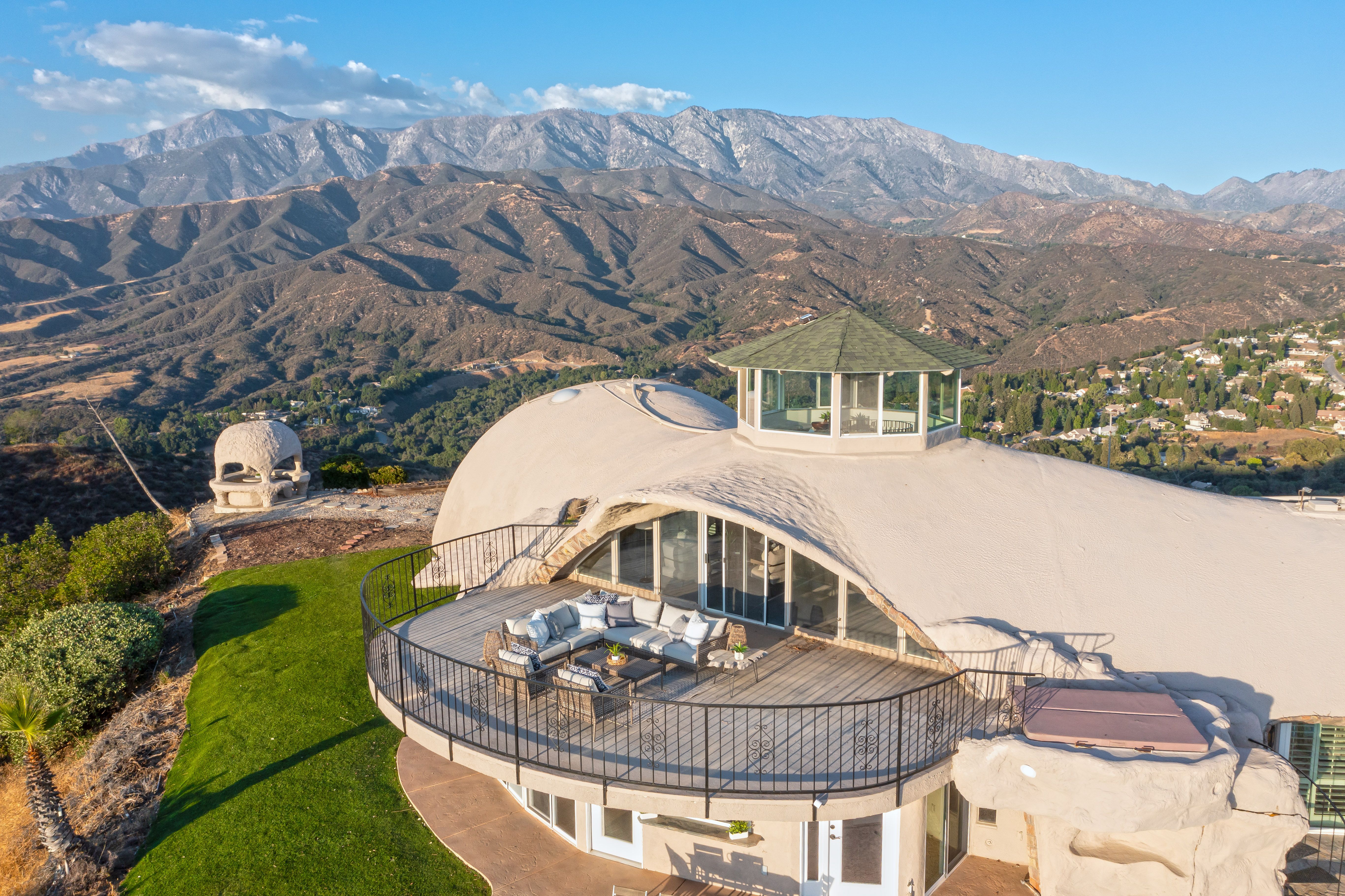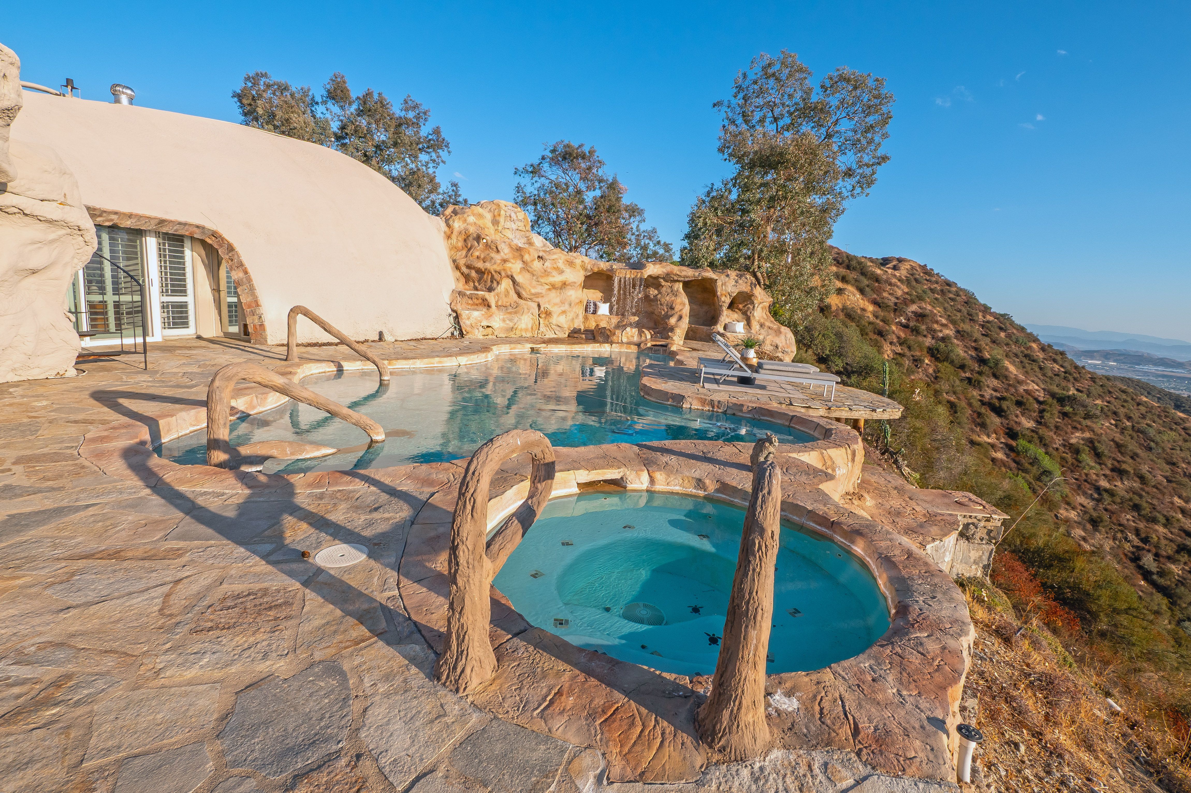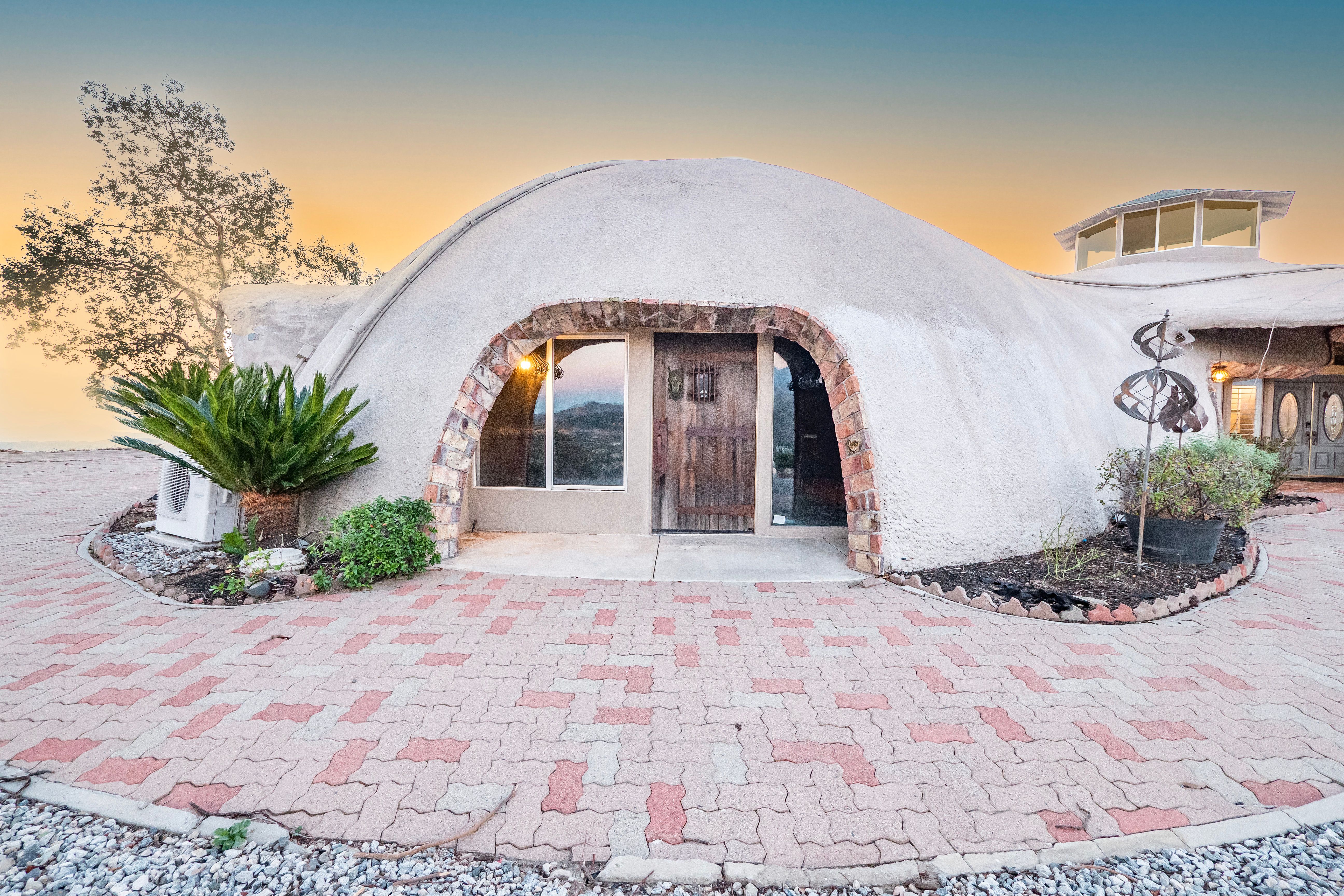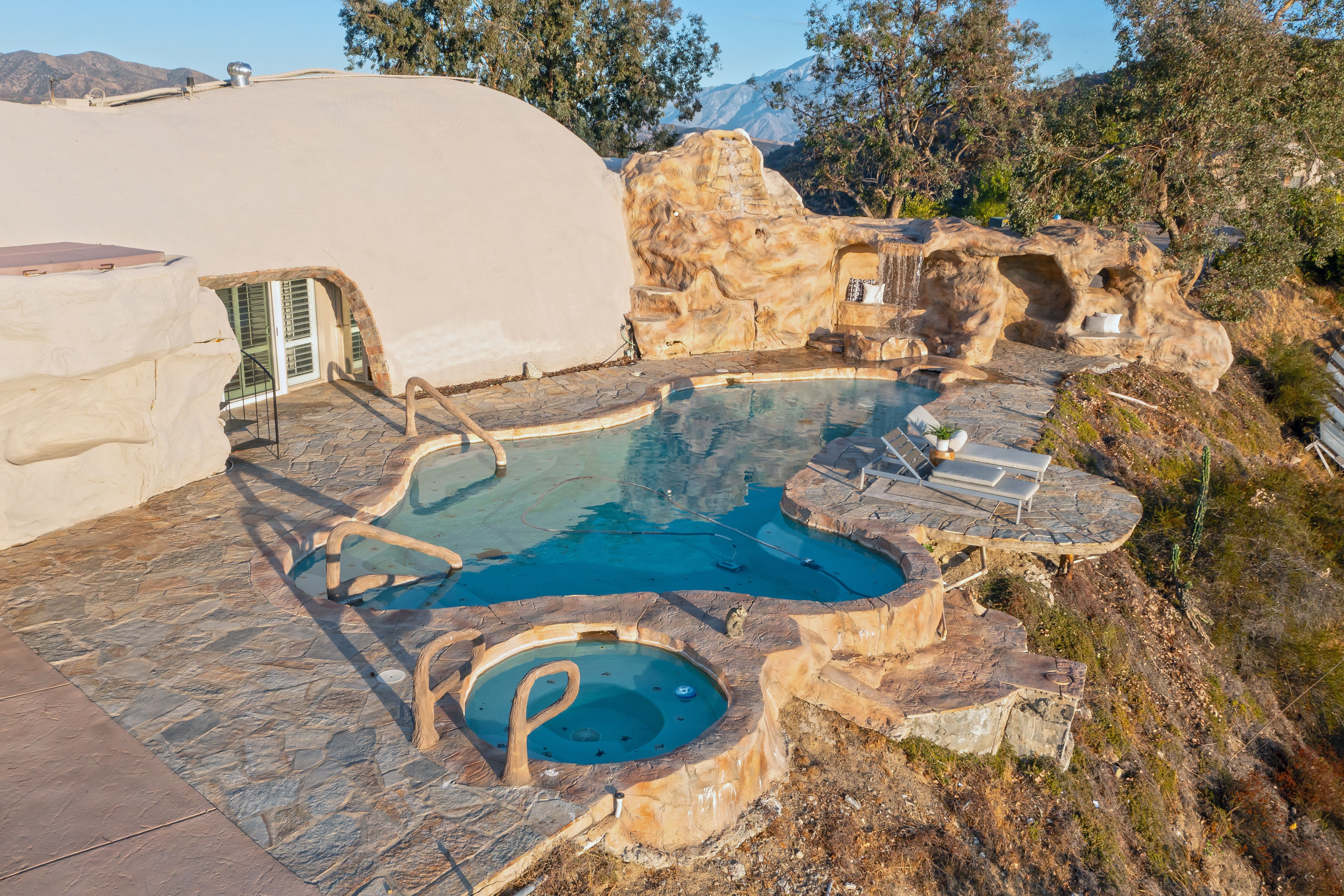 Welcome to Vista Dhome, an extraordinary monolithic dome residence situated atop a breathtaking mountain in Yucaipa, California. Spanning 3,895 square feet of thoughtfully designed living space, this unique home rests on 42 acres of pristine mountain top land at an elevation of 3,800 feet. Here, you’ll experience true 360-degree panoramic views that sweep across the landscapes of Yucaipa, Calimesa, Cherry Valley and the rugged majesty of the surrounding mountains. From your vantage, gaze over the San Bernardino National Forest, Lake Perris, and Lake San Jacinto. On a clear day, your eyes can wander as far as Palm Springs and even the distant outline of Catalina Island. This setting delivers unparalleled vistas and a sense of tranquility that is simply unmatched, ideal for those seeking harmony between contemporary comfort and raw natural beauty. Nestled in the foothills of the San Bernardino Mountains, Vista Dhome offers both peaceful seclusion and convenient access to local amenities. The property is located near scenic parks, hiking and biking trails, shopping centers, and top-rated schools, ensuring a lifestyle that blends relaxation with opportunity. *Monolithic Dome Design: The home's innovative dome shape provides exceptional energy efficiency, structural integrity, and a striking architectural profile. *Expansive Living Space: The residence features an open-concept floor plan illuminated by natural light, soaring ceilings, and elegant finishes throughout. *Resort-Style Pool and Spa: Enjoy an exotic swimming pool complete with a dramatic waterfall and a hidden grotto, creating an atmosphere of tropical luxury. Relax in the inviting in-ground spa, or retreat to the additional above-ground spa perched on the expansive viewing deck, perfect for soaking in the breathtaking mountain vistas. *Modern Kitchen: The gourmet kitchen is equipped with premium appliances, spacious granite countertops, ample cabinetry, and a central island perfect for both casual meals and entertaining *Outdoor Retreat: With 42 acres to explore, the property includes beautifully landscaped gardens, a welcoming patio, and abundant room for outdoor gatherings or peaceful evenings under the stars. *Energy Efficiency: Dome construction, modern HVAC system, dual-pane windows, Solar for the pool and smart home features combine for impressive comfort and sustainability. Vista Dhome isn't just a home; it's a one-of-a-kind mountaintop retreat.