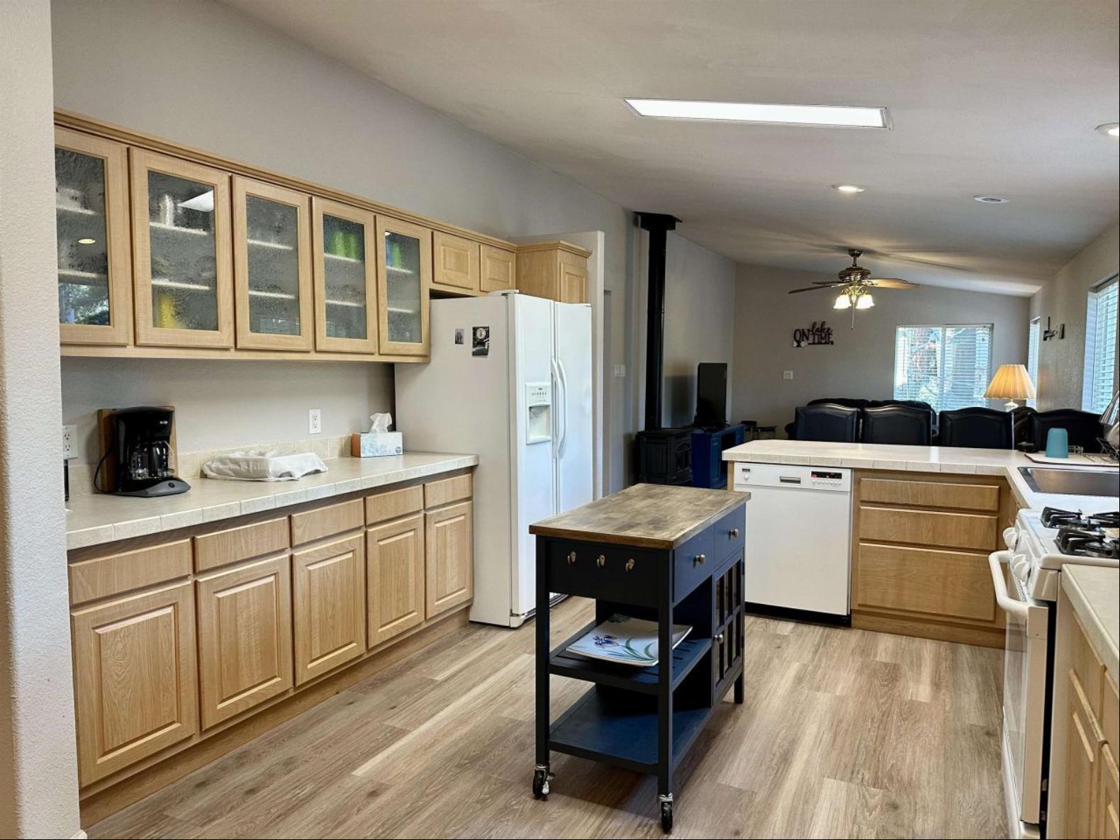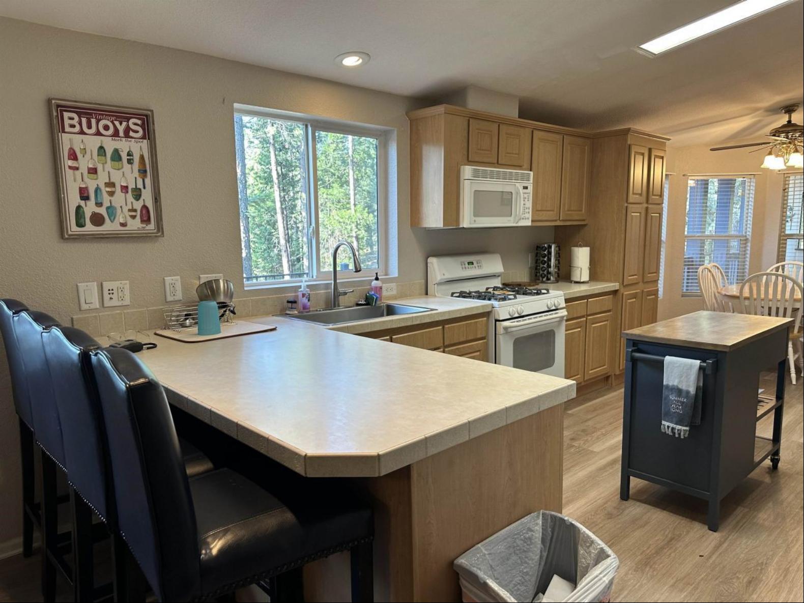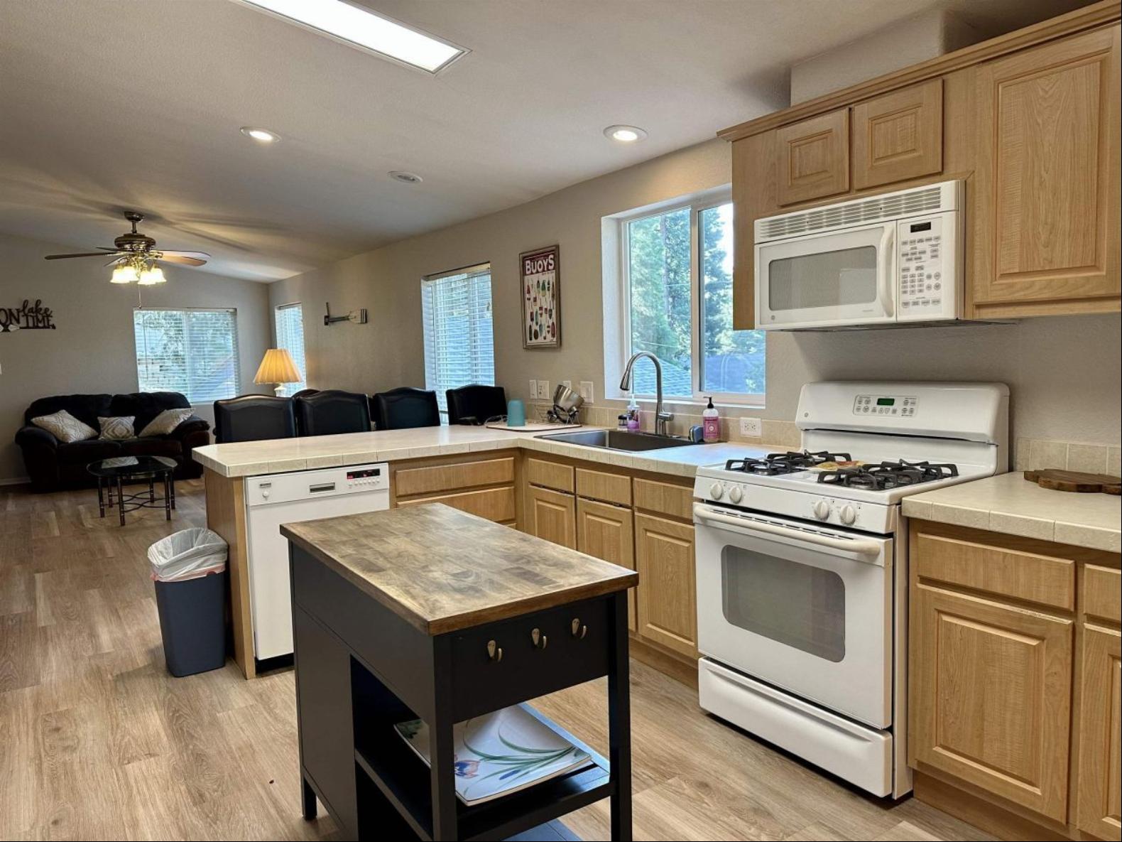 Wonderful Lake Almanor Home This newly renovated home is waiting for you to live the dream! What could be better than vacationing in a beautiful mountain community? This home boasts 3 bedrooms and 2.5 bathrooms. Enjoy the lovely covered porch entry?step inside and be wowed by the open living and dining area. The kitchen is very functional and includes a breakfast nook that overlooks another living room complete with a gas log fireplace. The master bedroom features an ensuite and a walk-in closet on one side of the home, while the two guest bedrooms offer plenty of space on the other side. There\'s a beautifully remodeled bathroom and a conveniently located half bath just off the main living area. The home has forced heat for chilly mountain nights, A/C for warmer months, and is topped off with a Generac generator for peace of mind. A large two-car garage provides plenty of room for your toys. This property backs up to a large undeveloped piece of land, offering access to hiking and nature right in your backyard. It\'s located at the end of a cul-de-sac, adding extra privacy, and is close to restaurants and marinas. So just bring your toothbrush as this home comes fully furnished.
