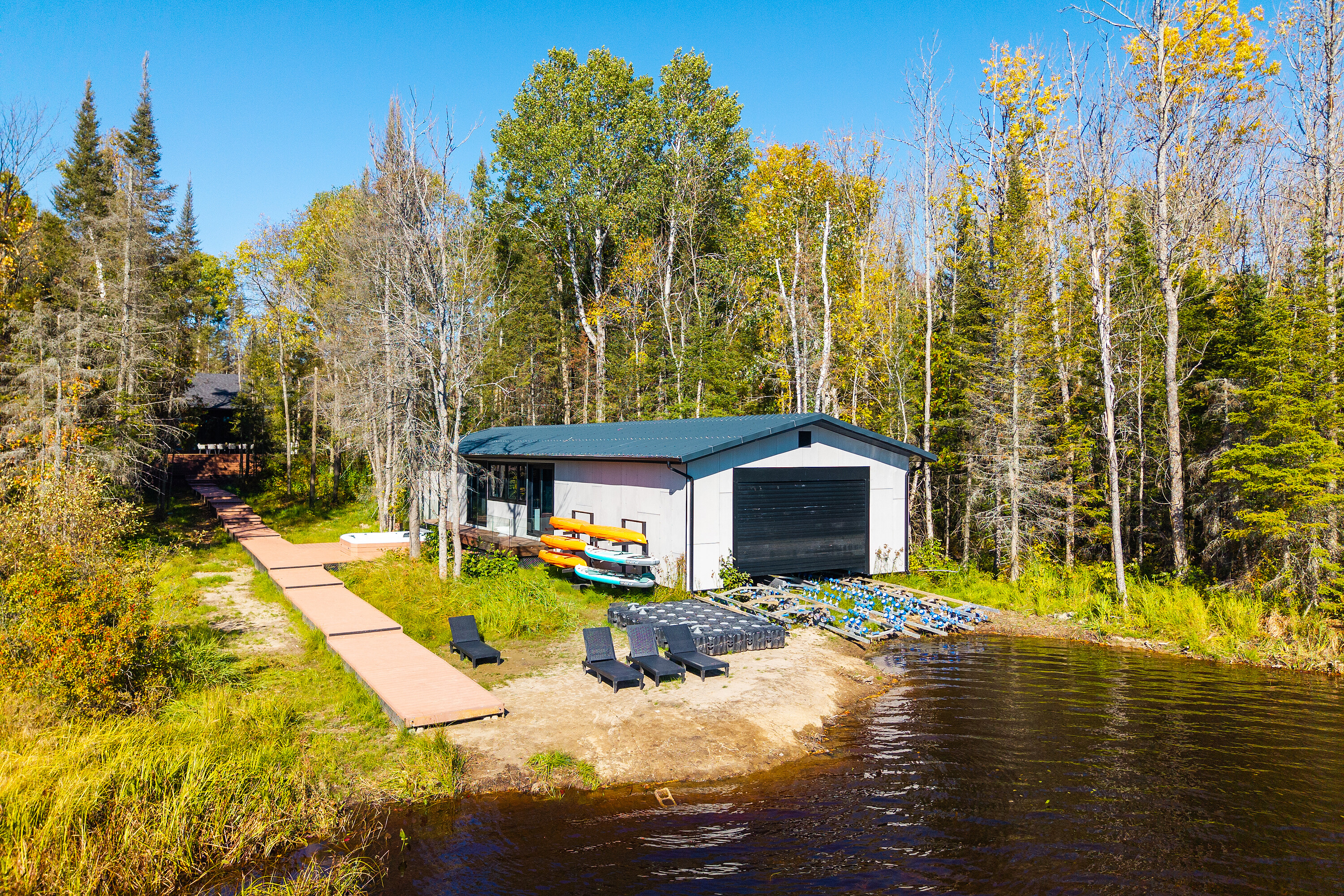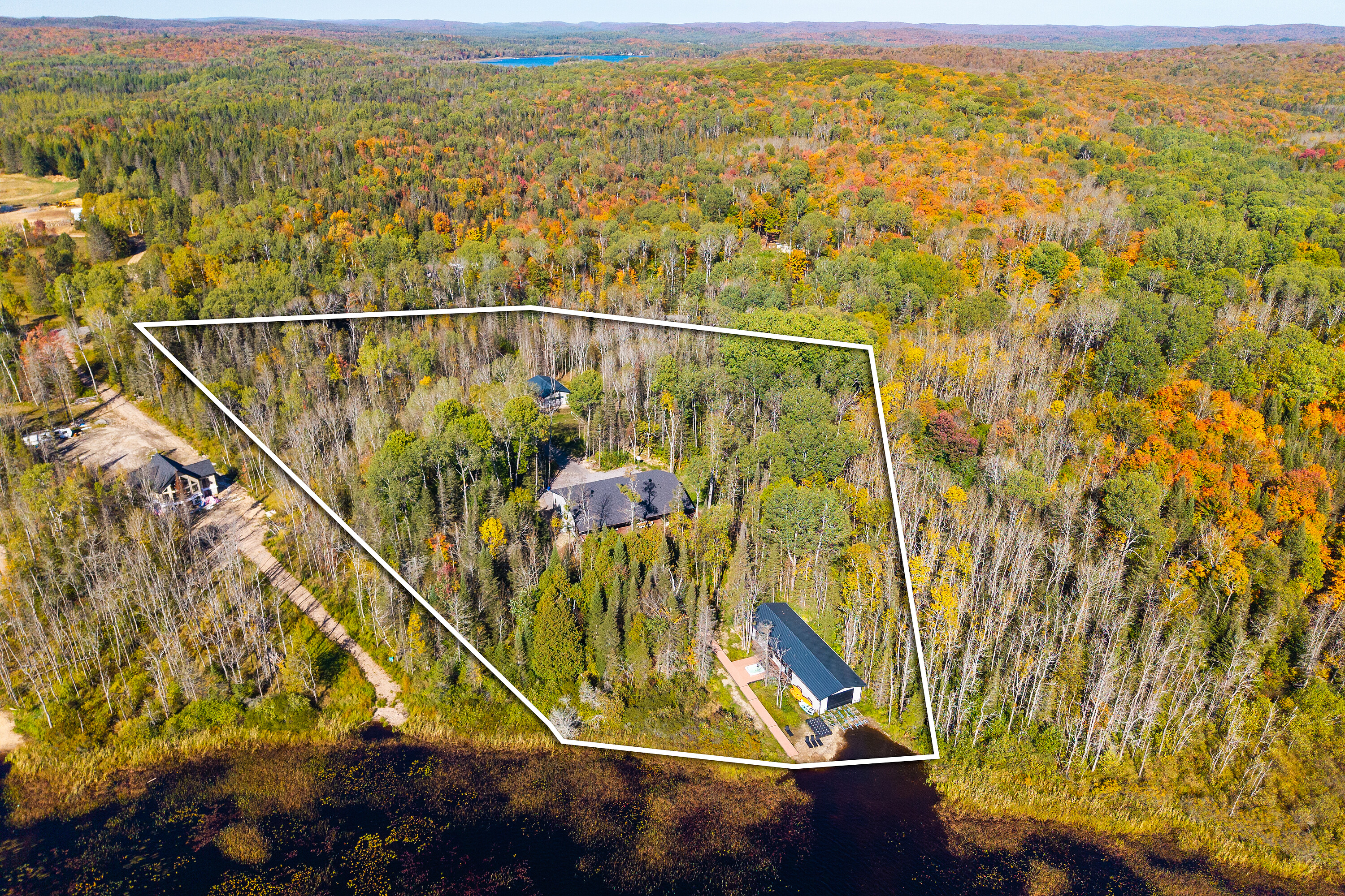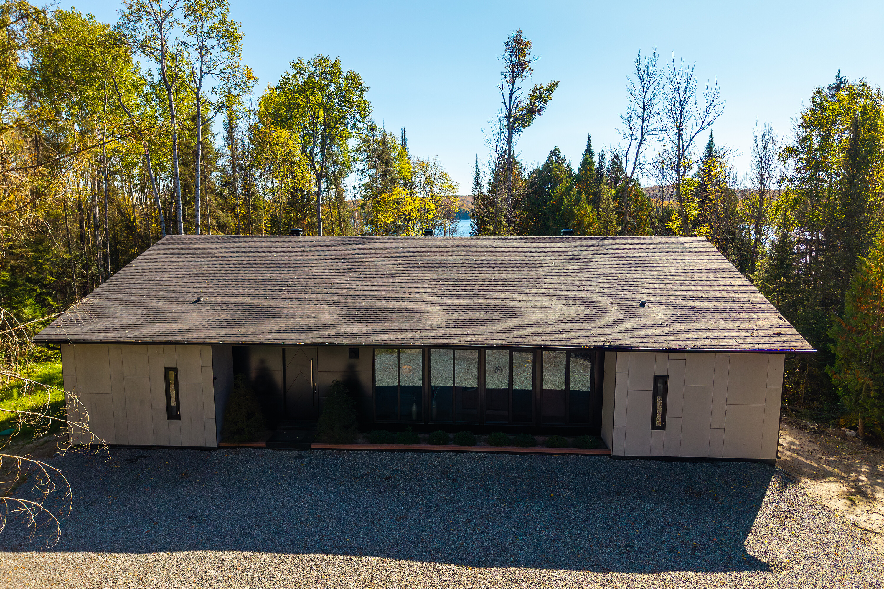 Discover your own private waterfront sanctuary on Jack and Pickerel Lake Road with this modern eight-bedroom, six-bathroom lakefront estate offering on a six-plus acre level lot with 208 feet of private and sunny southwest exposure shoreline in the Burk's Falls area. The unique layout of this expansive single storey bungalow is specifically designed for both grand entertaining and a peaceful retreat. The mid-century modern inspired architecture features luxury finishes and minimalist elegance to compliment the beauty of this natural setting. Huge floor to ceiling windows reveal jaw-dropping panoramic lake and forest views framed by towering trees. In addition, the massive open-concept living space, including triple-sided fireplace, chef's kitchen (double islands, dual dishwashers, hidden coffee station), offer multiple generous gathering zones plus four separate bedroom wings for privacy with eight bedrooms and six bathrooms, including two king primary suites with spa-inspired ensuites and private outdoor patios plus two queen bedrooms each with their own private bath, two oversized bunk bed-style rooms (queen and single) and two office/guest Murphy-bed rooms. Exceptional outdoor amenities features a one of a kind 1,570 feet covered deck with 14 feet canopy ceiling, an outdoor kitchen, barbeque and prep area, outdoor dining area and a sunken lake-facing seating area with a large propane fire-table. Guests will marvel at the lakeside recreation and wellness building (1,950 feet): featuring an outdoor eight-person hot tub, a private pole dock with swim ladder and mooring cleats plus an indoor sauna, full gym, games (pool table, ping-pong) along with a convenient dry boathouse with marine railway boat ramps. There are two separate firepits overall, a four-bay garage with poured concrete, a kid's "jungle gym" playground area , an outdoor volley court, picnic spaces, kayaks and paddle boards included. Enjoy this spectacular turnkey, waterfront compound ready to host family, friends, retreats or luxury high-end rentals.