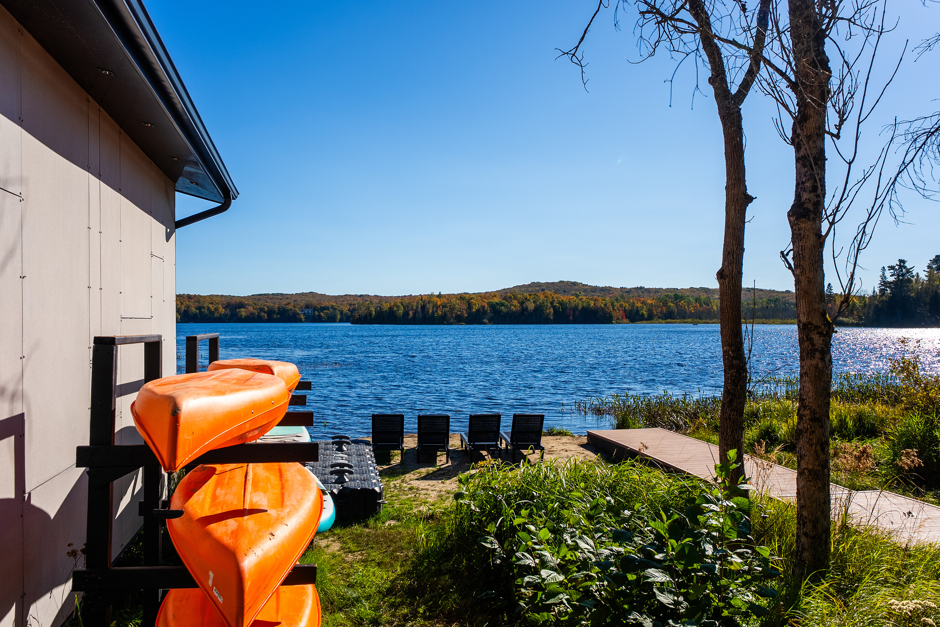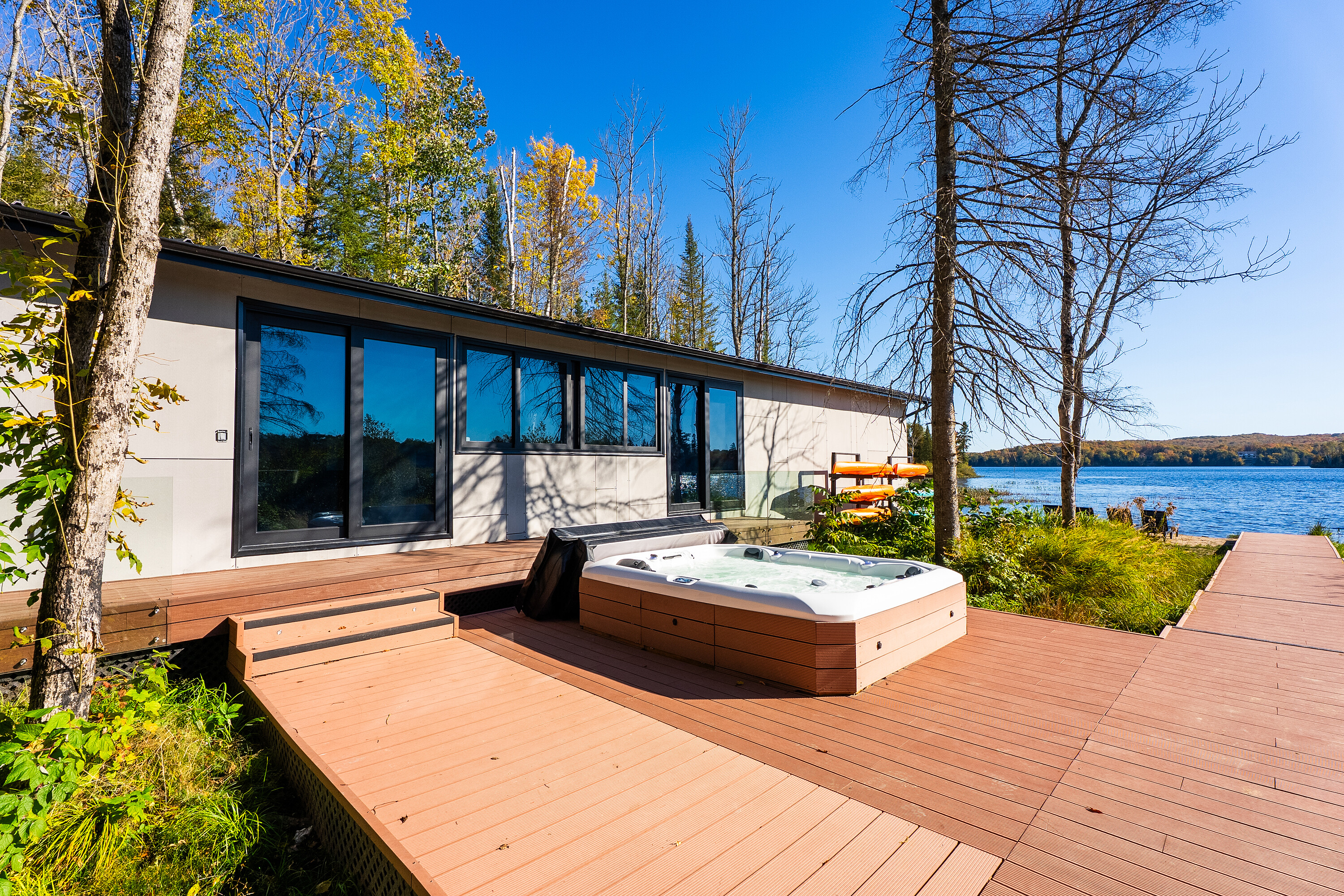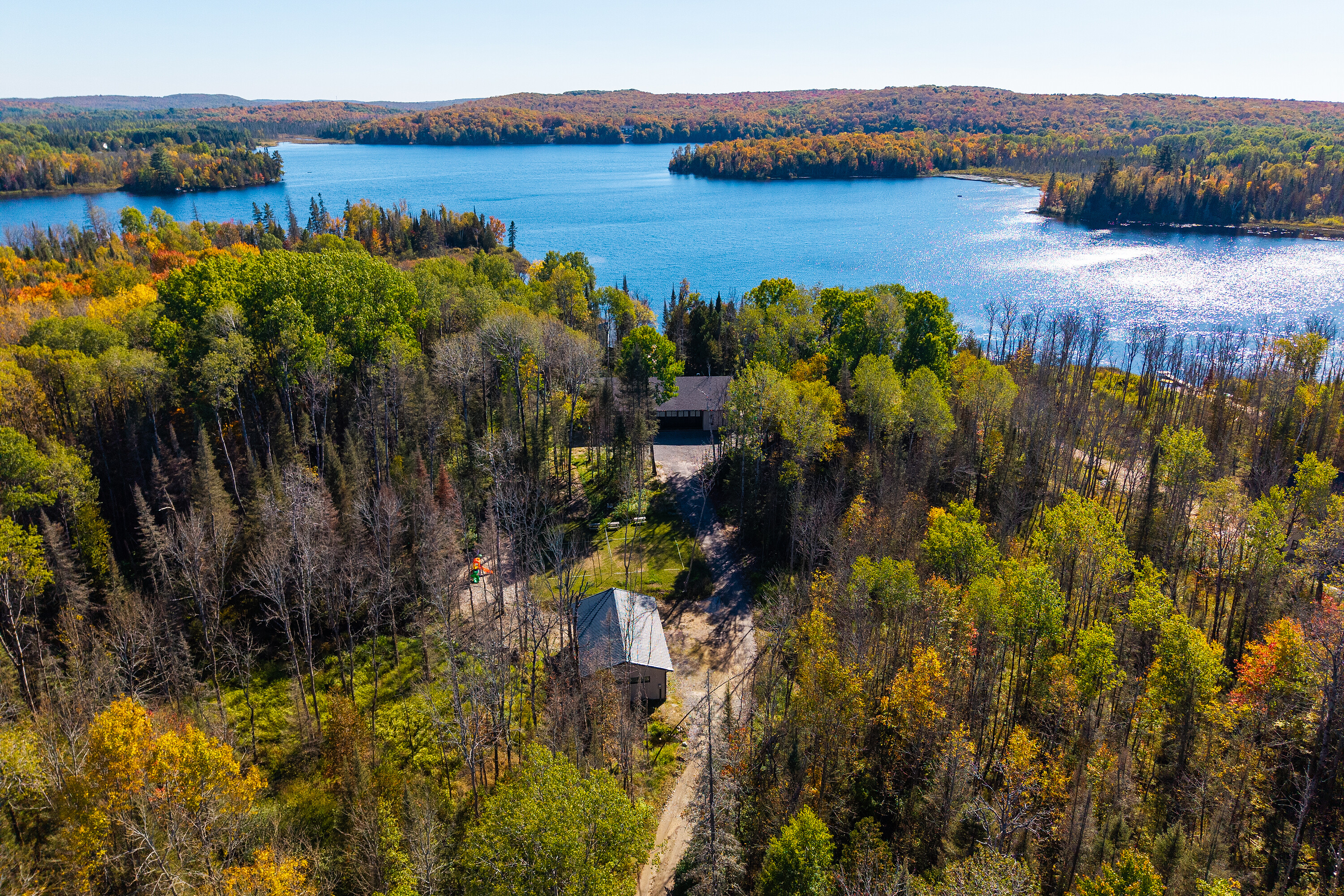 Discover your own private waterfront sanctuary on Jack and Pickerel Lake Road with this modern eight-bedroom, six-bathroom lakefront estate offering on a six-plus acre level lot with 208 feet of private and sunny southwest exposure shoreline in the Burk's Falls area. The unique layout of this expansive single storey bungalow is specifically designed for both grand entertaining and a peaceful retreat. The mid-century modern inspired architecture features luxury finishes and minimalist elegance to compliment the beauty of this natural setting. Huge floor to ceiling windows reveal jaw-dropping panoramic lake and forest views framed by towering trees. In addition, the massive open-concept living space, including triple-sided fireplace, chef's kitchen (double islands, dual dishwashers, hidden coffee station), offer multiple generous gathering zones plus four separate bedroom wings for privacy with eight bedrooms and six bathrooms, including two king primary suites with spa-inspired ensuites and private outdoor patios plus two queen bedrooms each with their own private bath, two oversized bunk bed-style rooms (queen and single) and two office/guest Murphy-bed rooms. Exceptional outdoor amenities features a one of a kind 1,570 feet covered deck with 14 feet canopy ceiling, an outdoor kitchen, barbeque and prep area, outdoor dining area and a sunken lake-facing seating area with a large propane fire-table. Guests will marvel at the lakeside recreation and wellness building (1,950 feet): featuring an outdoor eight-person hot tub, a private pole dock with swim ladder and mooring cleats plus an indoor sauna, full gym, games (pool table, ping-pong) along with a convenient dry boathouse with marine railway boat ramps. There are two separate firepits overall, a four-bay garage with poured concrete, a kid's "jungle gym" playground area , an outdoor volley court, picnic spaces, kayaks and paddle boards included. Enjoy this spectacular turnkey, waterfront compound ready to host family, friends, retreats or luxury high-end rentals.