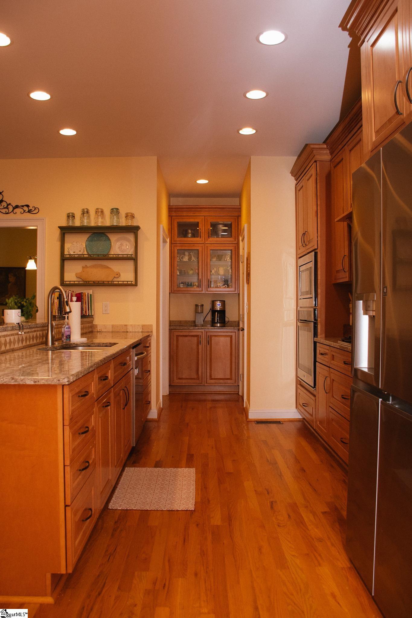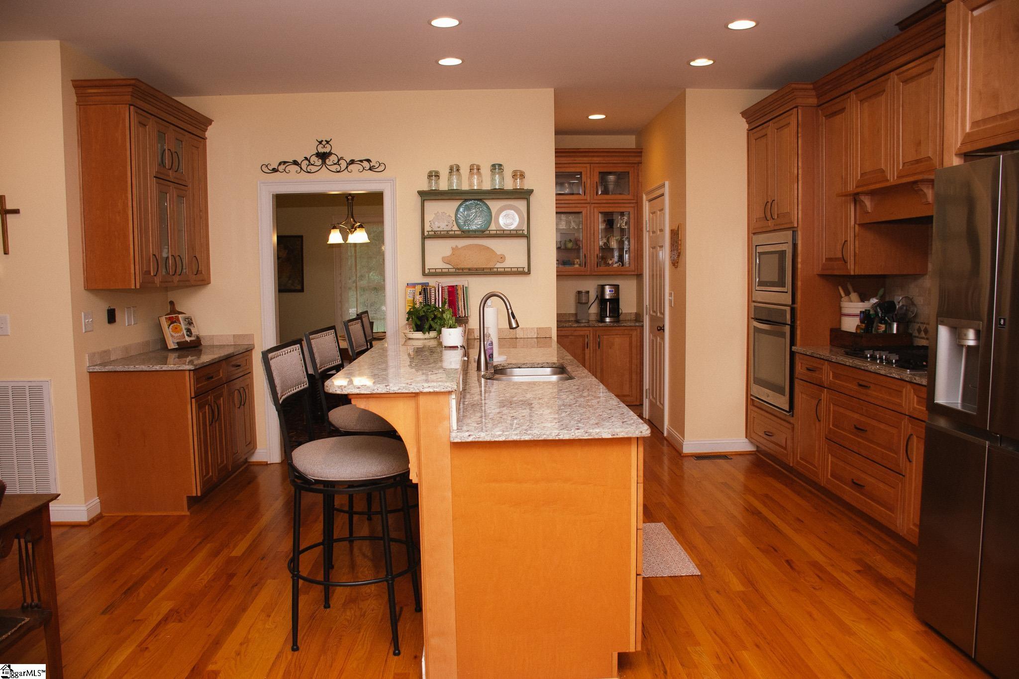 This beautifully maintained, custom-built 4-bedroom, 4-bath home is nestled in the sought-after Harpers Ridge subdivision and features an expansive 400+ foot privacy fence surrounding the backyard, offering both seclusion and space for outdoor enjoyment. Ideally situated, the home is just moments from downtown Anderson and offers easy access to Clemson University, I-85, and Lake Hartwell - making it perfectly located for both convenience and recreation. From the moment you arrive, the inviting rocking chair front porch sets the tone for the warmth and charm found throughout. Inside, the home boasts a spacious great room with a remote-controlled gas log fireplace, a formal dining room, and a chef's kitchen outfitted with granite countertops, gas cooktop, bar seating, and a cozy breakfast area - all accented by gleaming hardwood floors. Thoughtfully designed for flexibility and comfort, the main level features two expansive master suites located on opposite sides of the home. The primary master includes a luxurious en-suite bath with walk-in shower, garden tub, double granite vanity, oversized walk-in closets, and a private office that also connects to the foyer. The second master suite offers its own private sitting area with built-in bookshelves and an en-suite bath featuring a walk-in shower, tub/shower combo, and dual granite vanity. A third full bath and a convenient laundry room are also located on the main level. Enjoy the outdoors year-round from the large screened-in back porch, overlooking the well-maintained backyard with a fully enclosed privacy fence - adding both beauty and function to the space. The partially finished walk-out basement includes two additional bedrooms, a full bath with walk-in shower and double granite vanity, and a massive 800+ square foot unfinished area perfect for storage, hobbies, or future expansion. There's also a dedicated workshop and a separate lawn equipment garage. Additional features include an oversized two-car garage, a partially irrigated yard, and countless thoughtful details throughout. This home has been lovingly maintained and is truly move-in ready.