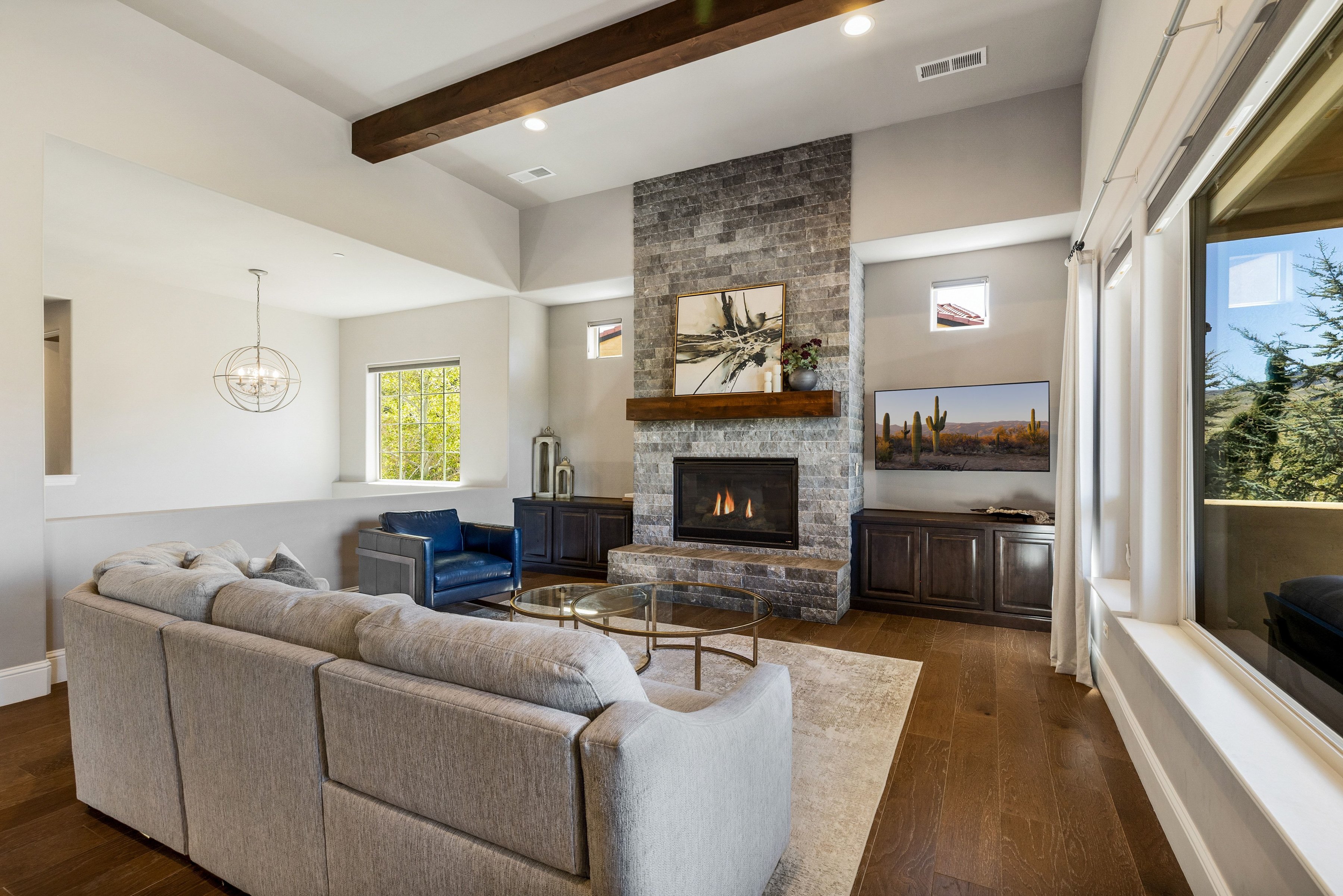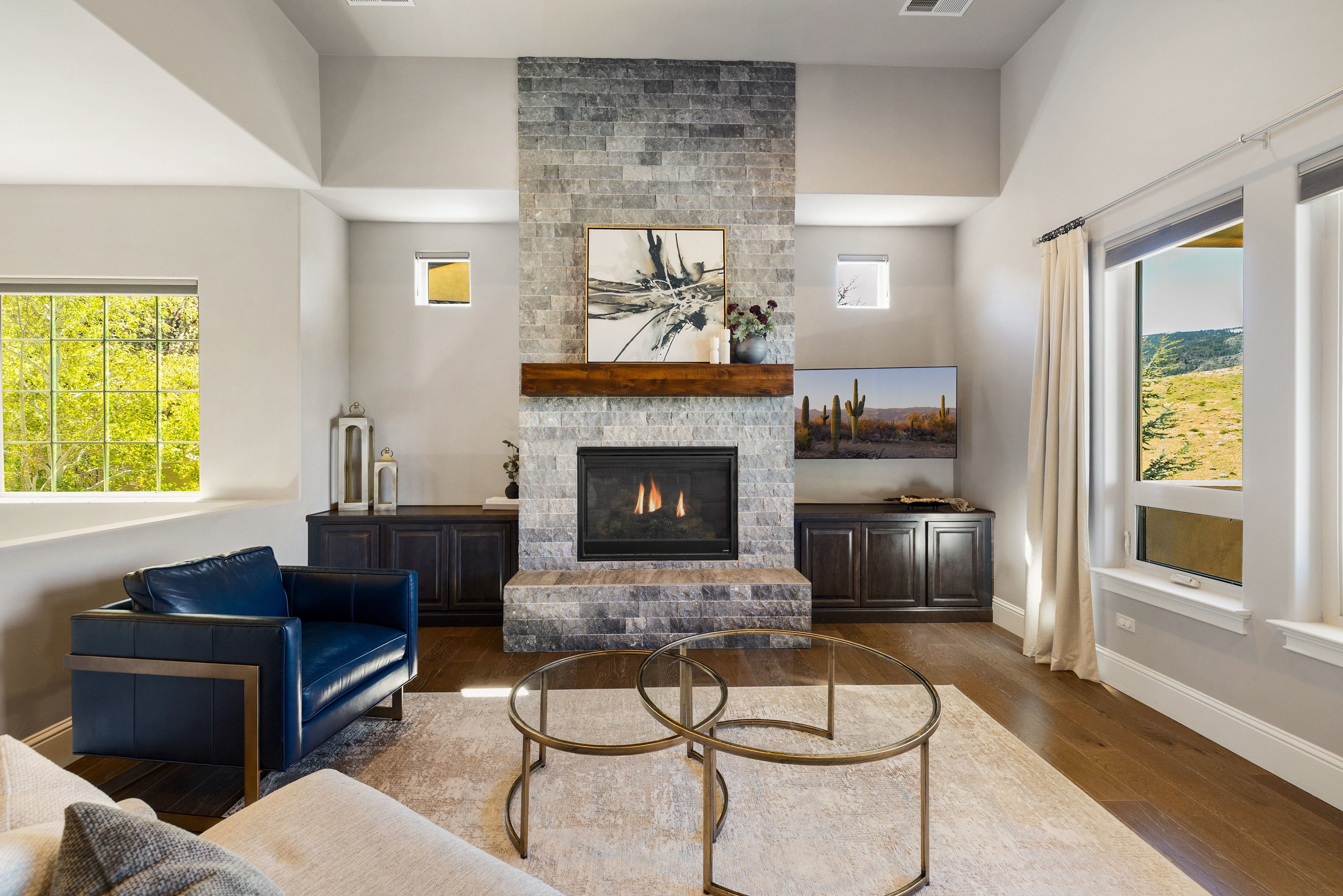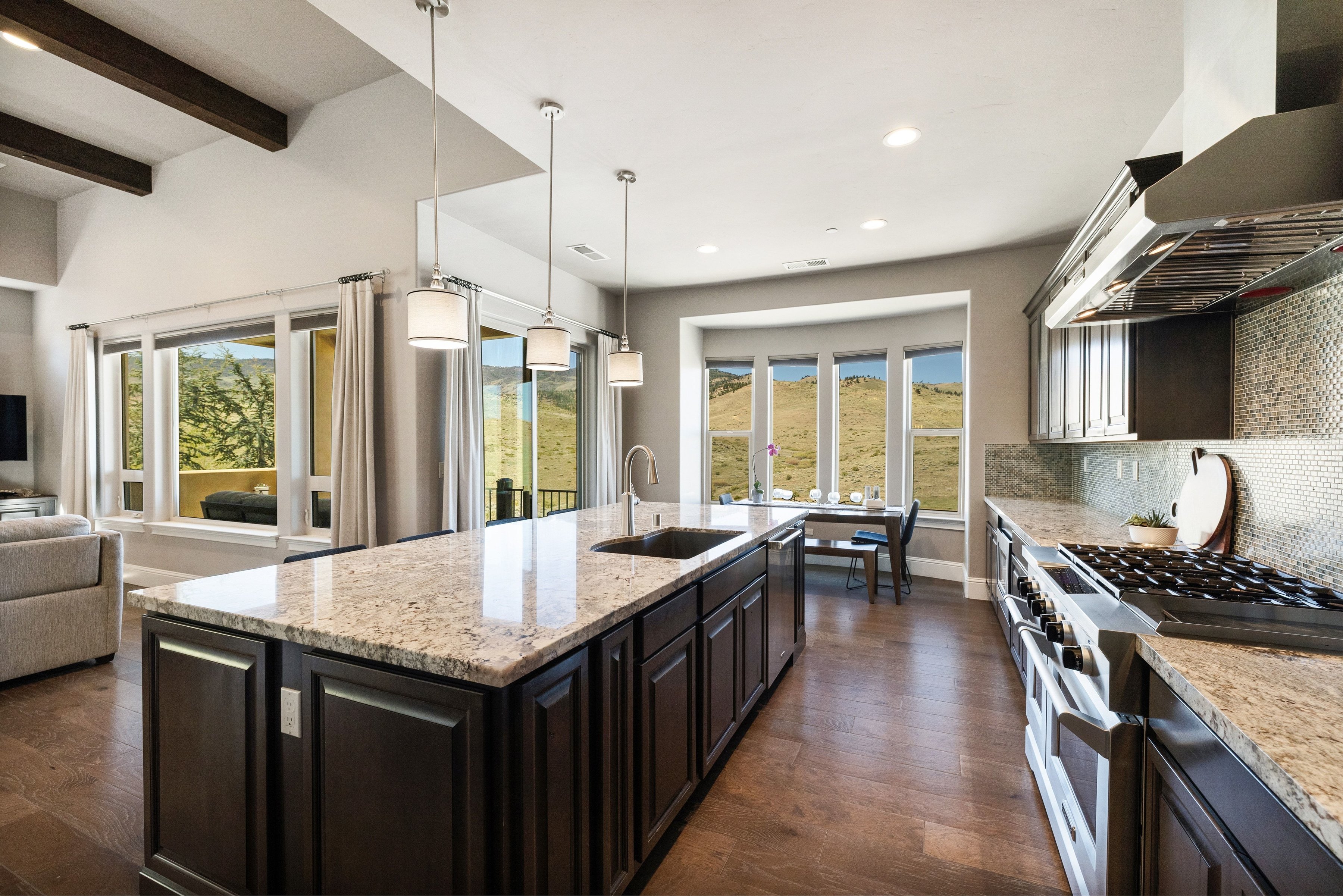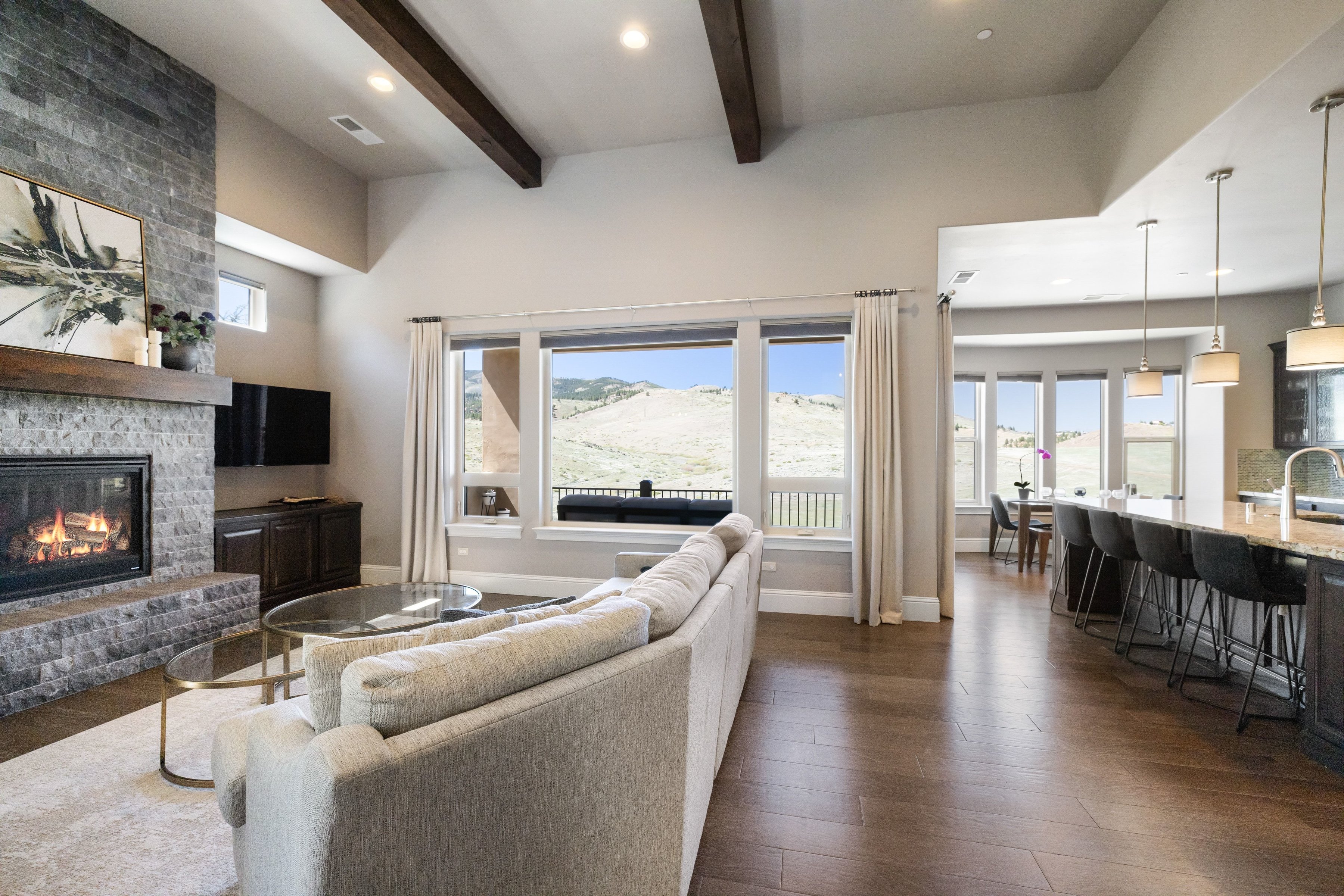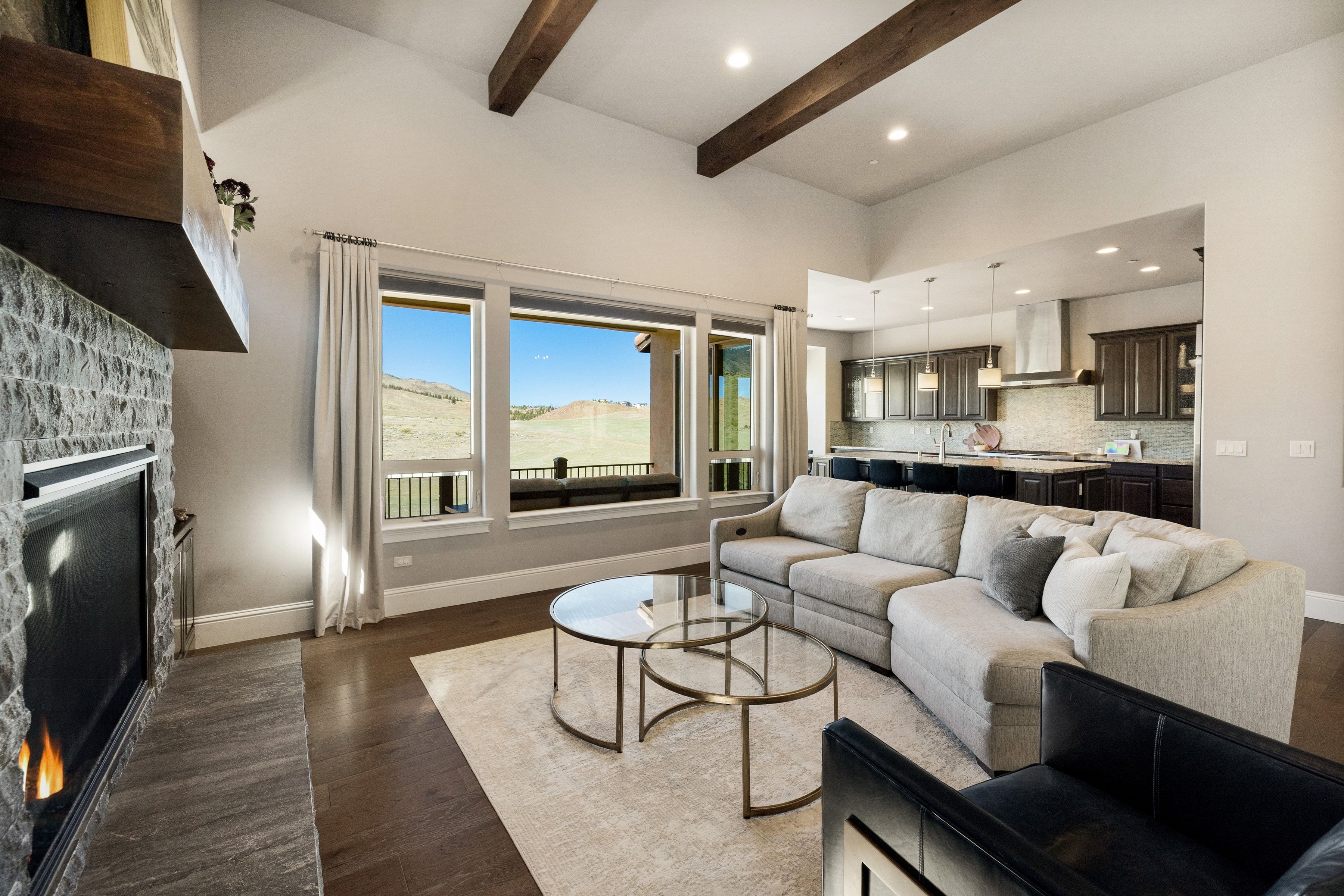 Welcome to 3172 Vista Favoloso, a beautifully designed 4-bedroom, 4.5-bath modern home located in the gated Villagio community in Reno, Nevada. Offering over 3,500 square feet of thoughtfully designed living space, this luxury home in Reno, NV blends comfort, functionality, and elevated design. Nearly every room captures views of the Toiyabe National Forest in the distance, creating a serene, private setting that feels connected to nature. The kitchen serves as the heart of the home, designed for gathering and entertaining, featuring a large granite island, commercial-grade range and hood, and a walk-through butler's pantry. The open-concept main level is filled with natural light and includes a spacious living area, a tranquil primary suite that feels like a true retreat, and a secondary en-suite bedroom, ideal for guests or multigenerational living. The lower level offers a versatile bonus room along with two additional bedrooms, each with their own private bath, providing flexibility for a home office, media room, or guest accommodations. Step outside to a custom backyard designed for year-round enjoyment, complete with a built-in BBQ kitchen, gas fire pit, and low-maintenance turf. This space is perfect for entertaining or relaxing in your own private outdoor oasis. Additional features include approximately 750 square feet of walk-in under-house storage, a dedicated closet office, Hunter Douglas blinds, central vacuum, two tankless water heaters, and a spacious three-car garage. Ideally located just minutes from shopping, dining, and outdoor recreation, this home offers convenient access to Lake Tahoe, hiking trails, and golf courses, making it a standout opportunity for buyers seeking a modern home in Reno, NV with both lifestyle and location.