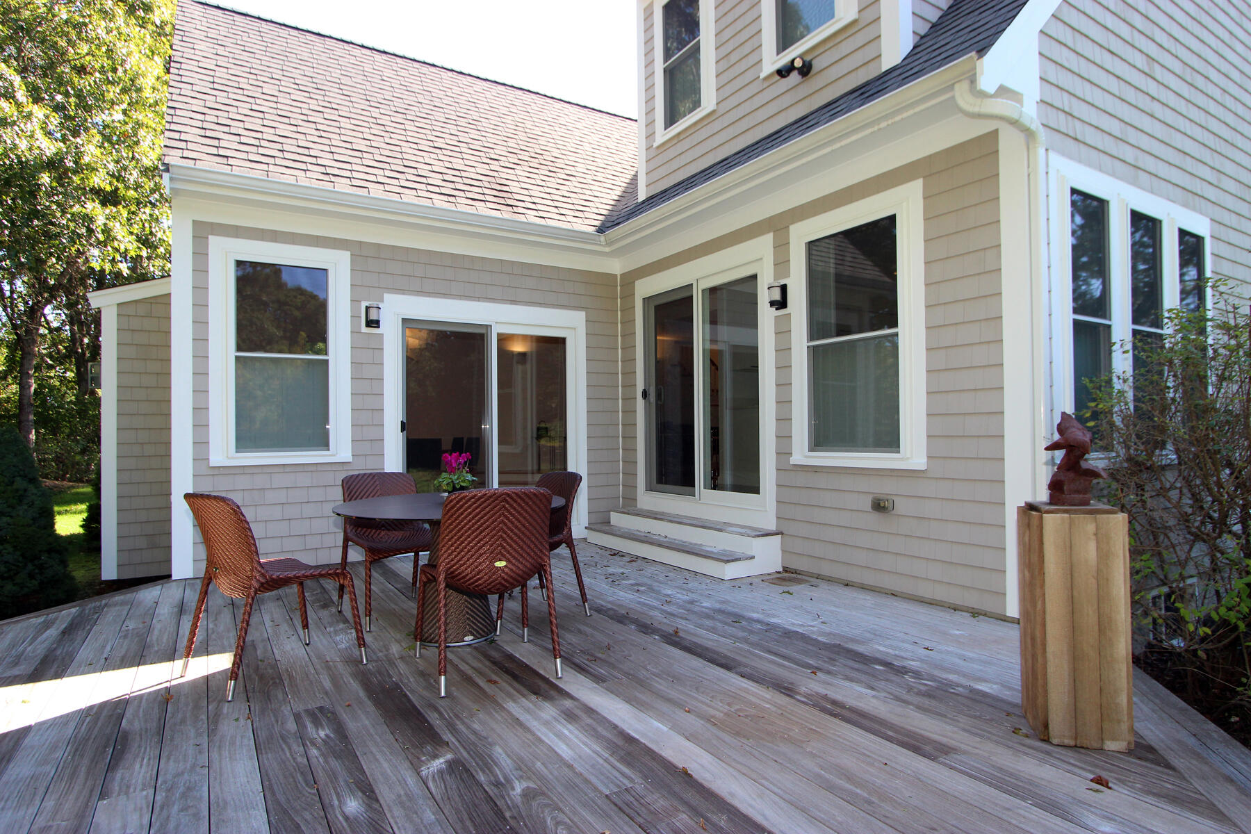 Stunning Brewster Home!Just minutes from beaches and premier golf courses, this meticulously maintained residence offers the perfect blend of casual elegance and modern comfort. The bright, open floor plan features a gourmet kitchen with center island, custom cabinetry, and gleaming Roca tile floors. The inviting living room flows into the dining area, featuring a soaring ceiling, a gas fireplace and sliding doors that open to a spacious deck overlooking the private backyard.Throughout the home, you'll find custom window shutters and exquisite hardwood floors. There are two primary suites, one on each level, along with two guest bedrooms--one currently used as a sitting room. Additional highlights include beautifully appointed bathrooms, 1st floor laundry, natural gas heat, central air conditioning, a whole-house generator, irrigation system, and an atttached two-car garage with potential bonus space above. A welcoming front porch and professional landscaping complete this stunning oasis, privately nestled on a cul-de-sac in a lovely Brewster neighborhood.