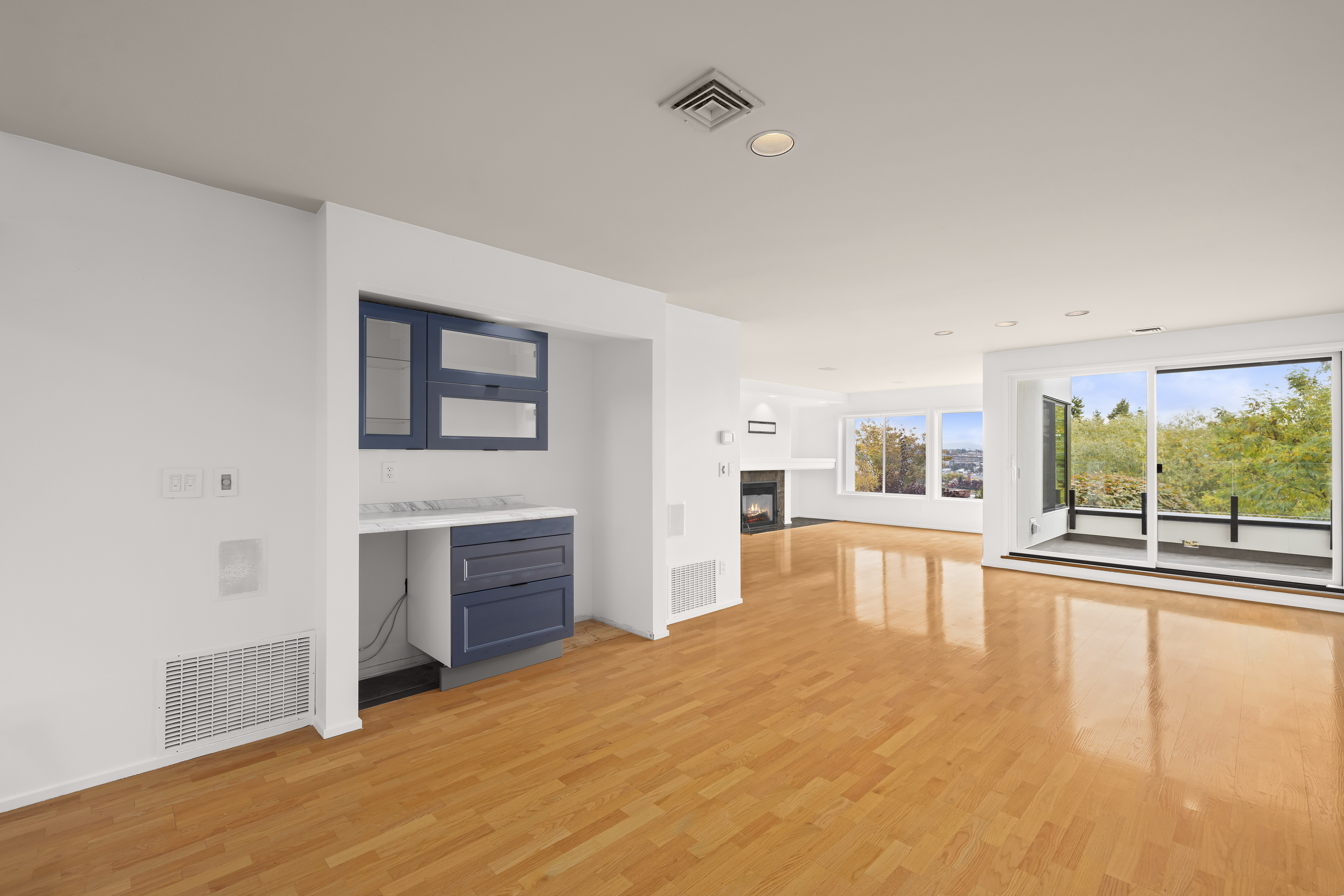 An opportunity to own at the newly renovated Windwatch, combining city living with the privacy of a peaceful retreat.Minutes away from Amazon HQ this condo lives like a townhome, featuring its own private entrance and an attached two-car garage with generous storage. Enjoy views of Lake Union and the Cascades, from the main floor expanding to the upstairs bedrooms. An open-concept kitchen creates a seamless flow between the dining and living areas, perfect for entertaining or simply relaxing by the fireplace. The quality and care in this community features a brand-new Ceraclad exterior envelope designed for 50 years of low-maintenance living, all-new windows, a new roof, and new decks throughout the community. Pet friendly with dog trails!