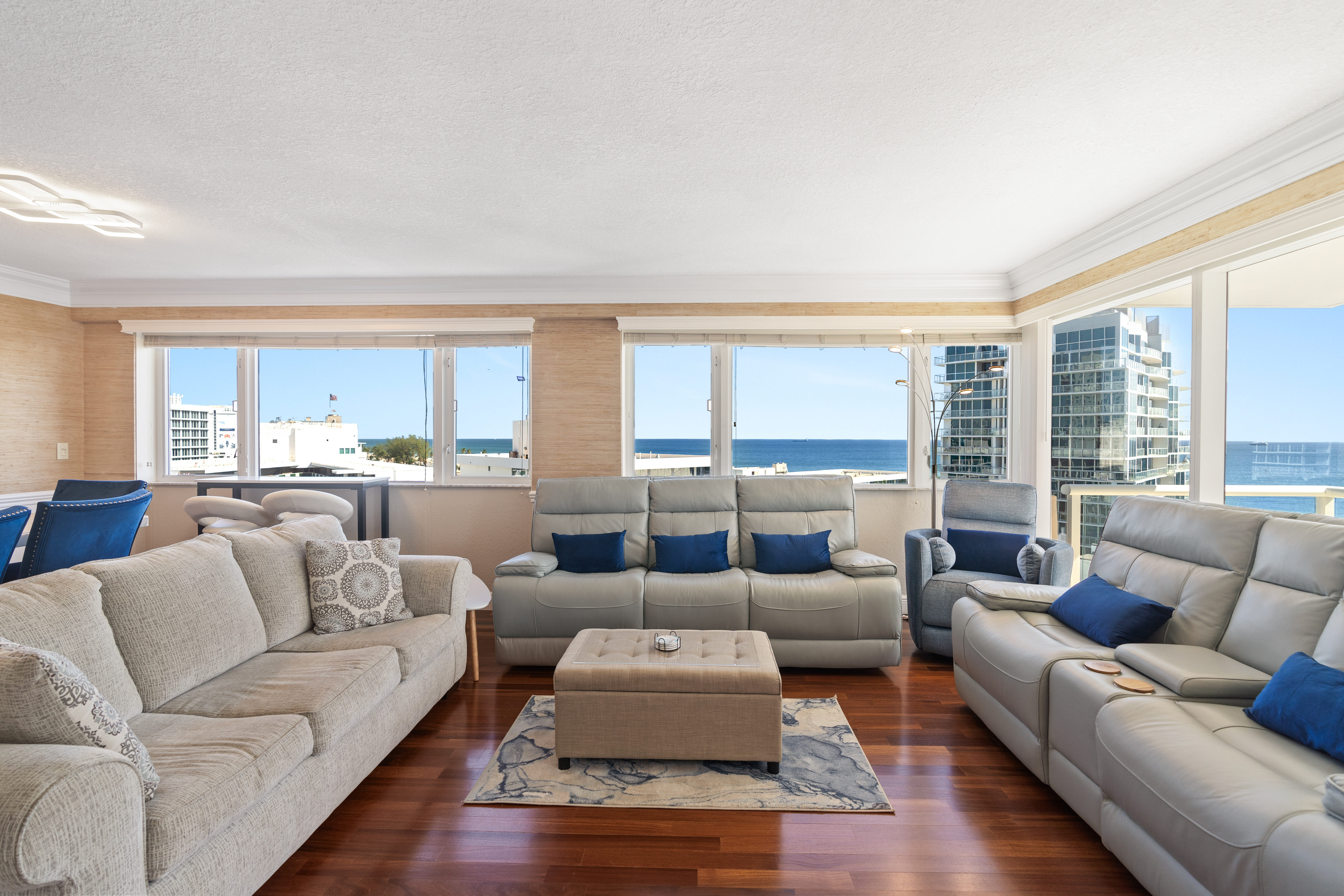 Spacious and bright 1 bedroom,1.5 bathroom corner seasonal condo with direct ocean and Lake Mayan views! Tastefully furnished and fully stocked, featuring in-unit full-size washer and dryer and a large pantry. Enjoy easy beachside living—just steps to Fort Lauderdale Beach, the new Marina Village, shopping, dining, and nightlife. Perfectly located—only 20 minutes to the airport and about 2 miles to Las Olas Blvd with great restaurants, boutiques, and entertainment. Building amenities include a heated pool with ocean access and lake views, BBQ area, 24-hour security, covered parking, gym, and renovated community room. Association approval in 30 days. Available for 6+ months. Enjoy a front-row seat to the spring/summer events like Air and Sea Show and walk to the 4th of July fireworks and festivities!