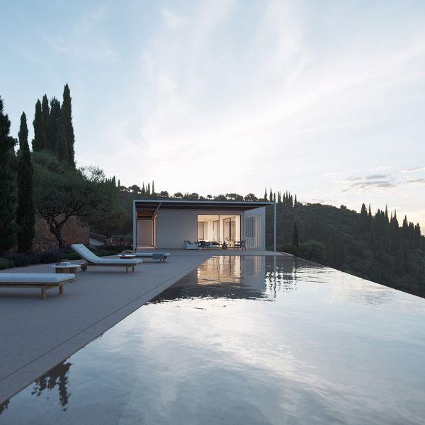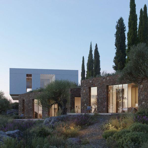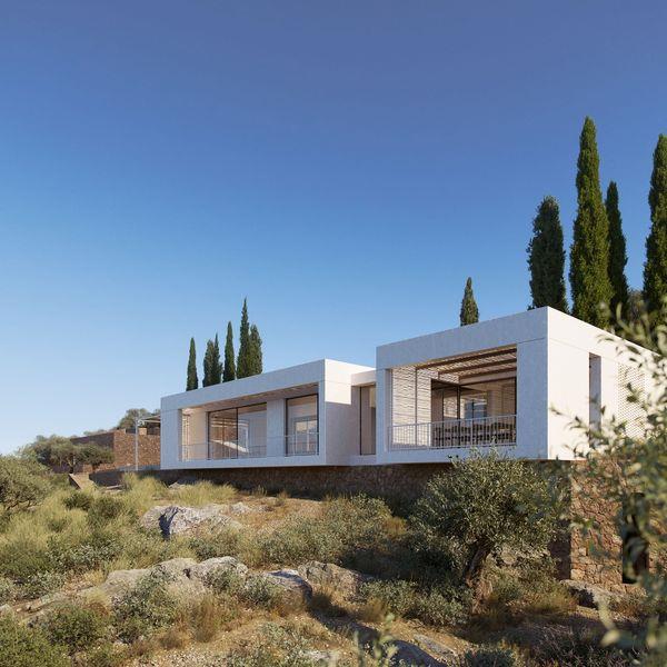 All set within a long plot of 7,130 sqm that is full of olive and cypress trees, the villa and its independent guest house are easily accessed via a main gate and private road that leads to a parking area and the villa. To be sold complete and fully landscaped, the planned external areas include state-of-the-art gardens, extensive paved seating areas with an external kitchen and dining area. The pièce de resistance must be the stunning private pool measuring 19m x 4m that will be positioned to the front of the land to take advantage of the panoramic views.