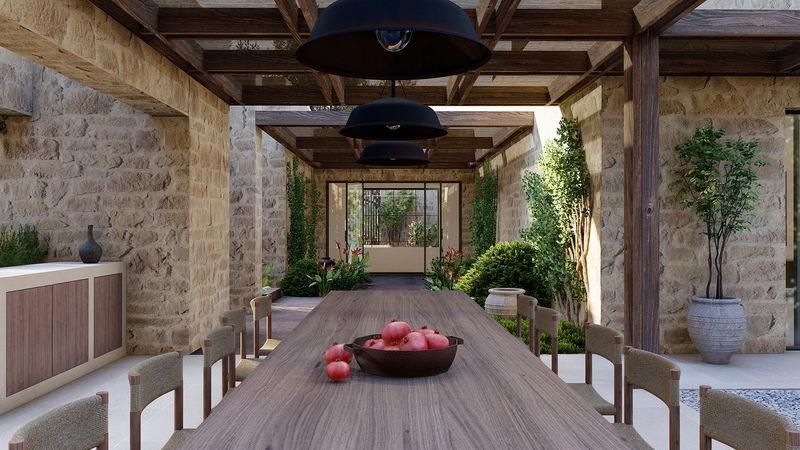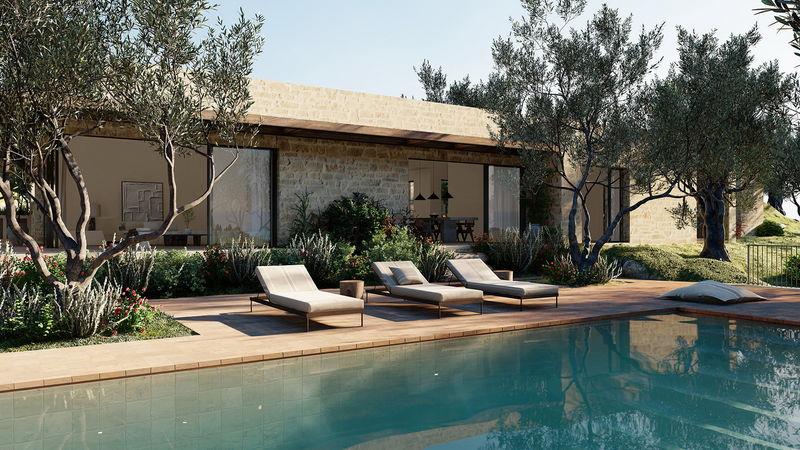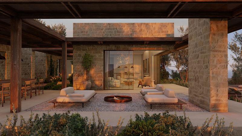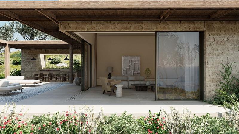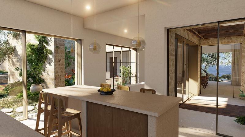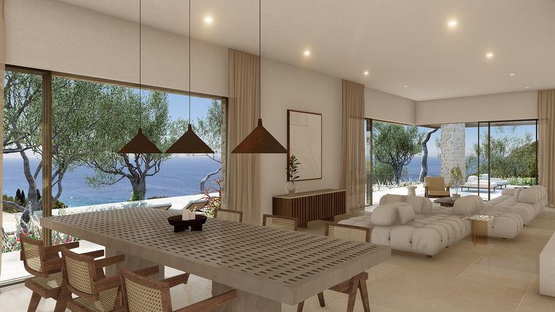 All set within a beautiful plot of 4,843 sqm surrounded by the lush Corfiot countryside, every attention to detail has been paid to offer you wonderful outside living spaces amongst the fully landscaped gardens. Internal courtyards, paved terraces, a large external kitchen with covered dining and seating areas as well as a large private pool with sun terraces.