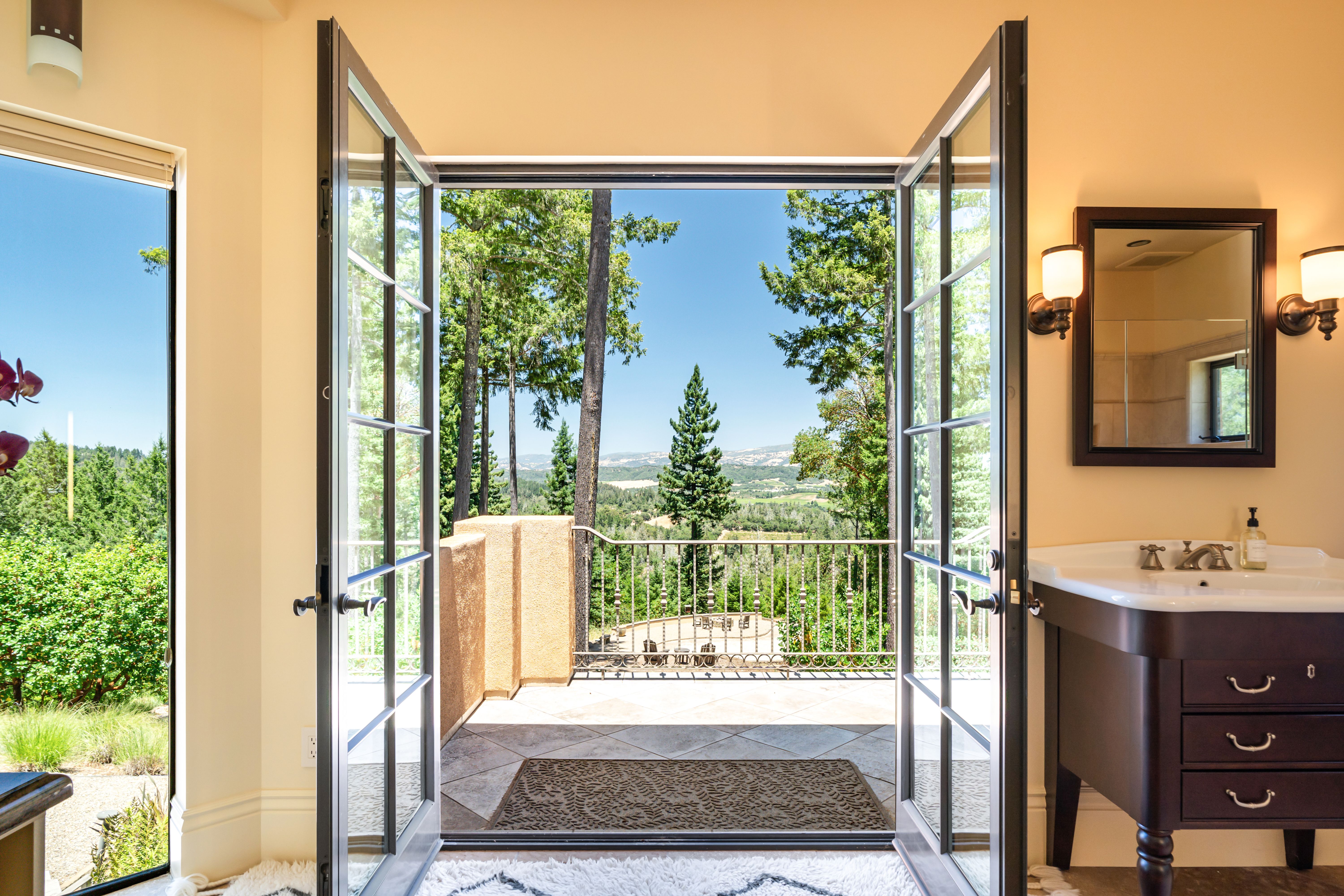 Experience the pinnacle of wine country living at this exceptional Dry Creek Valley estate, set on 25.9± private acres surrounded by world-class vineyards. This stunning home offers 4 bedrooms, one a newly added in-law unit, 4 full baths, and 2 powder rooms, masterfully blending modern sophistication with natural beauty. Expansive terraces, manicured grounds, and panoramic vineyard views create a breathtaking backdrop for entertaining, from al fresco dinners under the stars to poolside lounging and golden hour wine tastings. Every space is designed for both celebration and serenity. Inside, the open-concept Great Room flows seamlessly to the outdoors, ideal for gatherings large or small. A chef's kitchen, soaring ceilings, and a serene primary suite offer elegant comfort. Walls of glass and clean architectural lines bathe the home in light and warmth. Whether hosting a sunset soiree or savoring a quiet glass of wine, this estate embodies the best of the Healdsburg lifestyle--refined, relaxed, and undeniably luxurious.