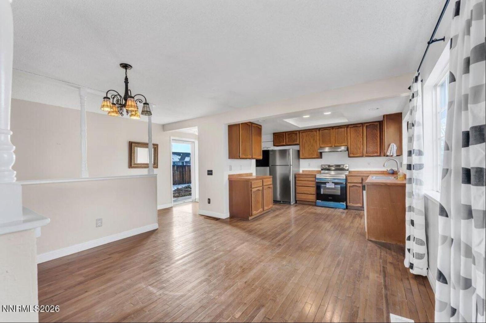 Conveniently situated between Tahoe and Reno, this splendid single-story offers comfortable living in a walkable location! A 1400+ sq ft floor plan boasts a sensible layout with hardwood floors, neutral finishes, and plenty of windows. A beautiful brick fireplace acts as the main living area\'s focal point, providing you with the ideal place to unwind. The kitchen\'s functional design includes stainless steel appliances, warm wood cabinetry, and plenty of countertop space, flowing seamlessly into a bright dining area. Enjoy an incredibly spacious primary suite with generous closets, a private bathroom, and backyard access. Two additional bedrooms offer excellent space for a variety of uses. Outside, enjoy the mature foliage or head around back and make use of the vegetable garden, two covered porches, Flagstone patio, and hobby shed (with a/c!), all from the privacy and comfort of your fully-fenced yard. Other noteworthy features include RV PARKING with power and water, attached two-car garage with storage, designated laundry area, all appliances included, and more. From the practical floor plan to the low-maintenance landscaping and unbeatable location, this Carson City charmer won\'t last long. Don\'t miss the chance to call it yours! Buyer and buyer\'s agent to verify all.