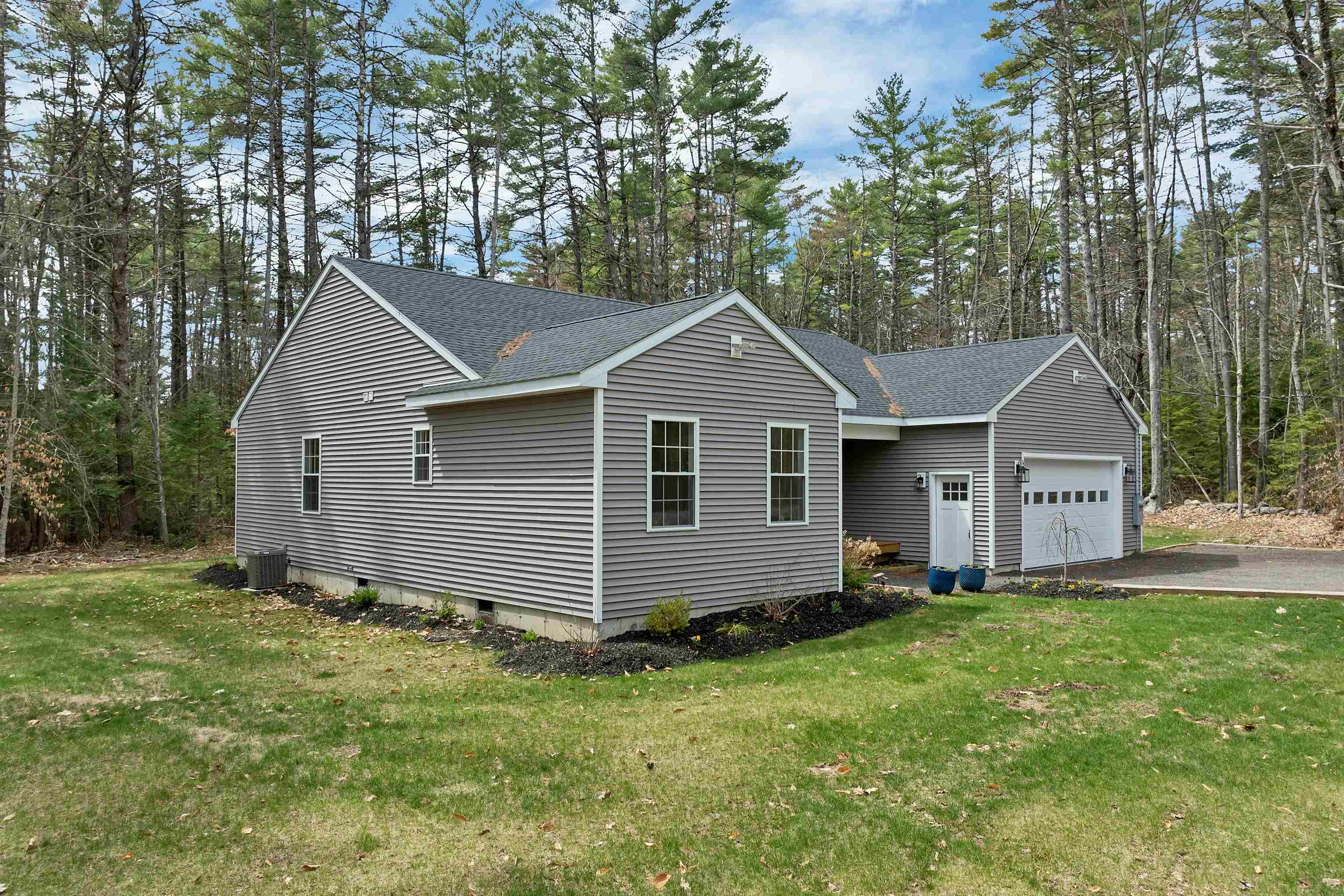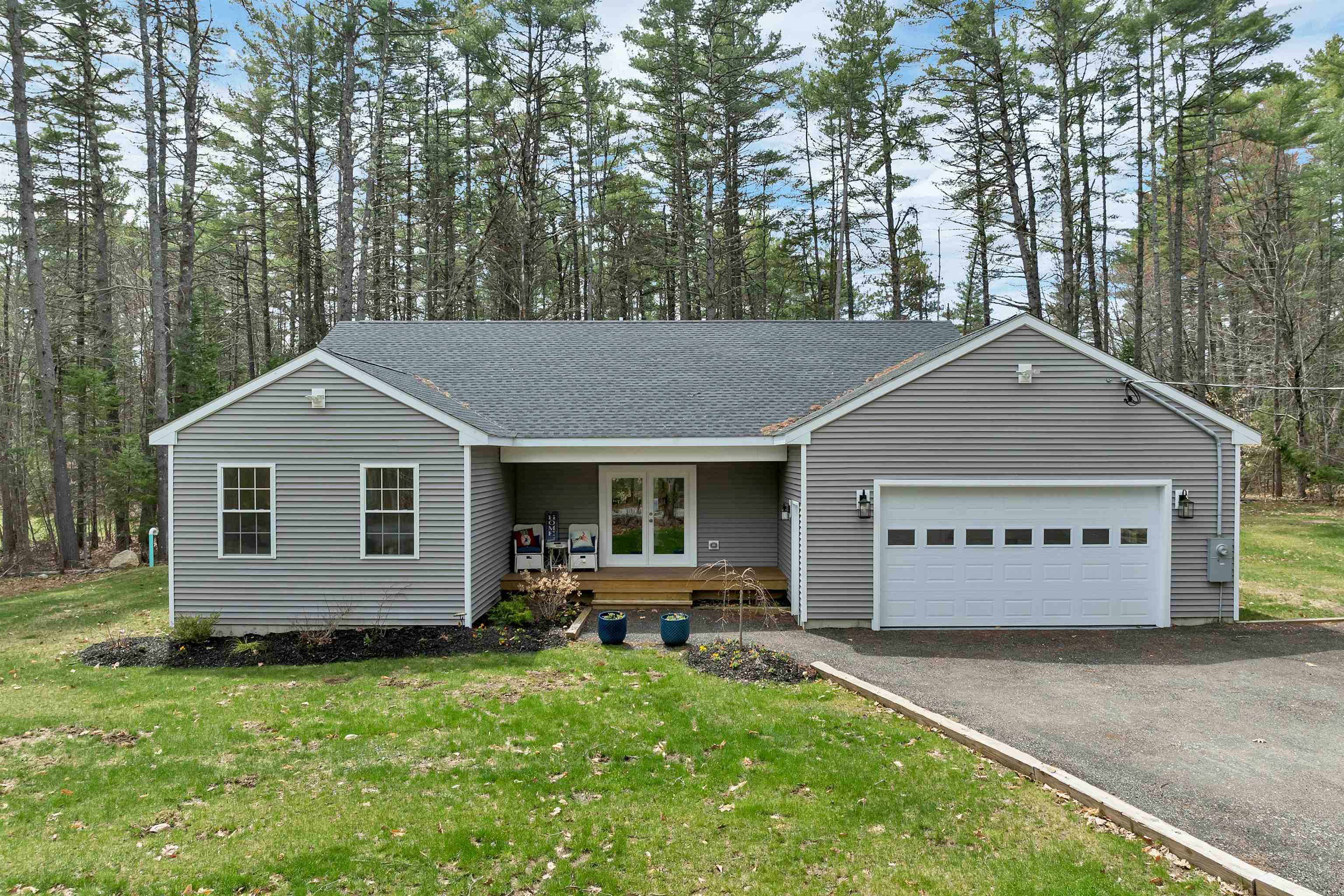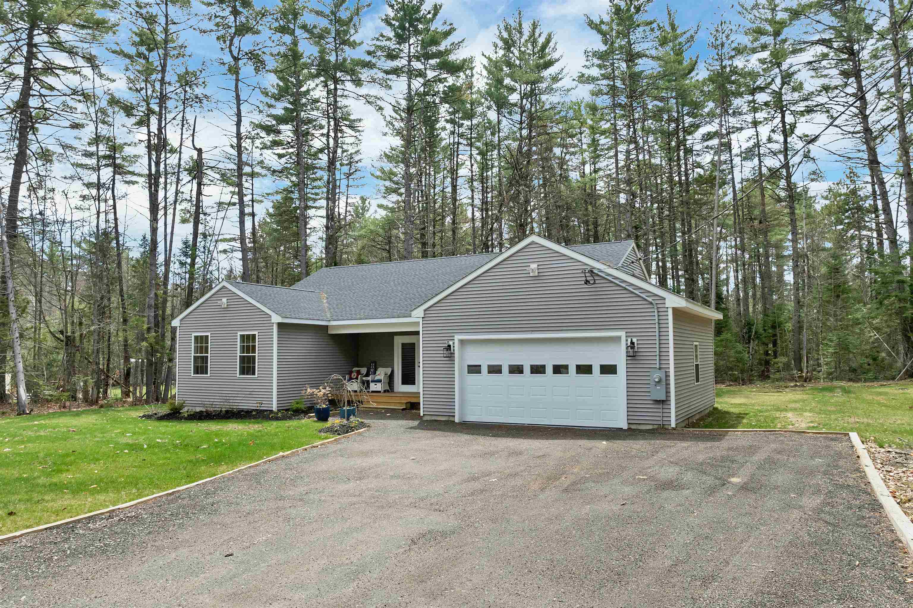 OPEN HOUSE SUNDAY 04/26 10 AM - 12 PM. Welcome to your New Hampshire getaway - this stunning new construction ranch-style home blends modern comfort with easy, low-maintenance living, making it an ideal second home or vacation retreat. Thoughtfully designed for single-level living, the home offers 3 spacious bedrooms, 2 full bathrooms, and a convenient outdoor shower - perfect after a day at the lake, hiking, or snowmobiling. The open-concept kitchen serves as the heart of the home, featuring granite countertops, a tile backsplash, pantry storage, and plenty of room to gather with family and friends. Luxury vinyl plank flooring runs throughout, offering durability and style for year-round or seasonal use. A dedicated laundry room and generous bedroom closets add to the home's comfort and functionality. The epoxy-coated garage includes a built-in workbench with hot and cold water, ideal for storing outdoor gear, lake toys, or tackling weekend projects. Set on a level, landscaped lot, the property provides a peaceful setting to unwind, entertain, or simply enjoy the natural surroundings. Whether relaxing on warm summer evenings or returning from winter adventures, this home is designed for effortless enjoyment. Ideally located near Province Lake and Ossipee Lake, you'll have easy access to swimming, boating, fishing, and nearby beaches. Outdoor enthusiasts will love the proximity to Green Mountain State Forest, scenic hiking trails, conservation areas, and wildlife preserves. Four-season recreation abounds with snowmobiling, snowshoeing, cross-country skiing, golf courses, and downhill skiing all within a comfortable drive. Whether you're looking for a serene weekend escape or a basecamp for outdoor adventure, this property offers the perfect balance of comfort, location, and New Hampshire charm.