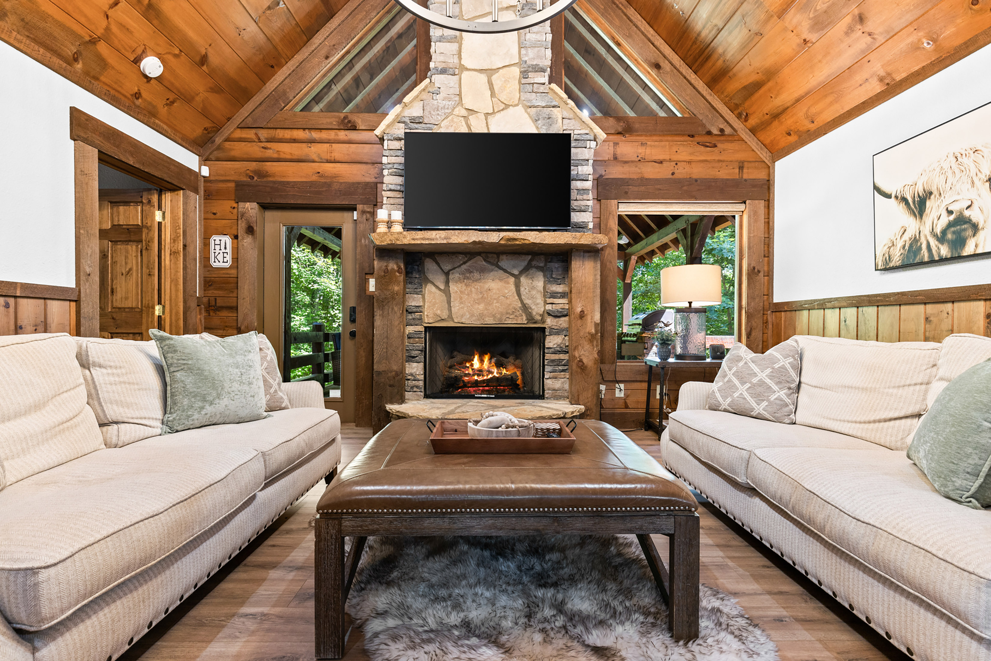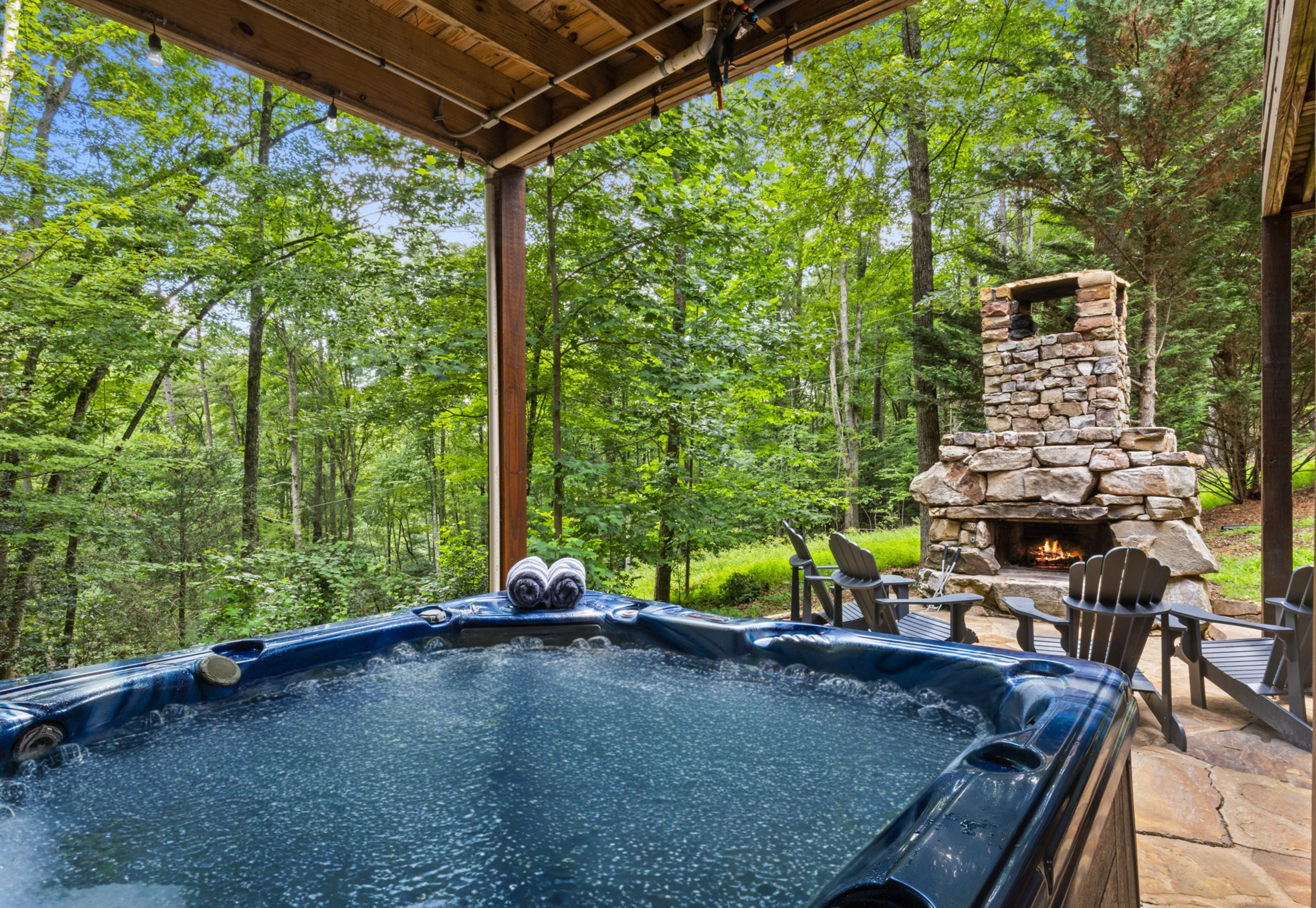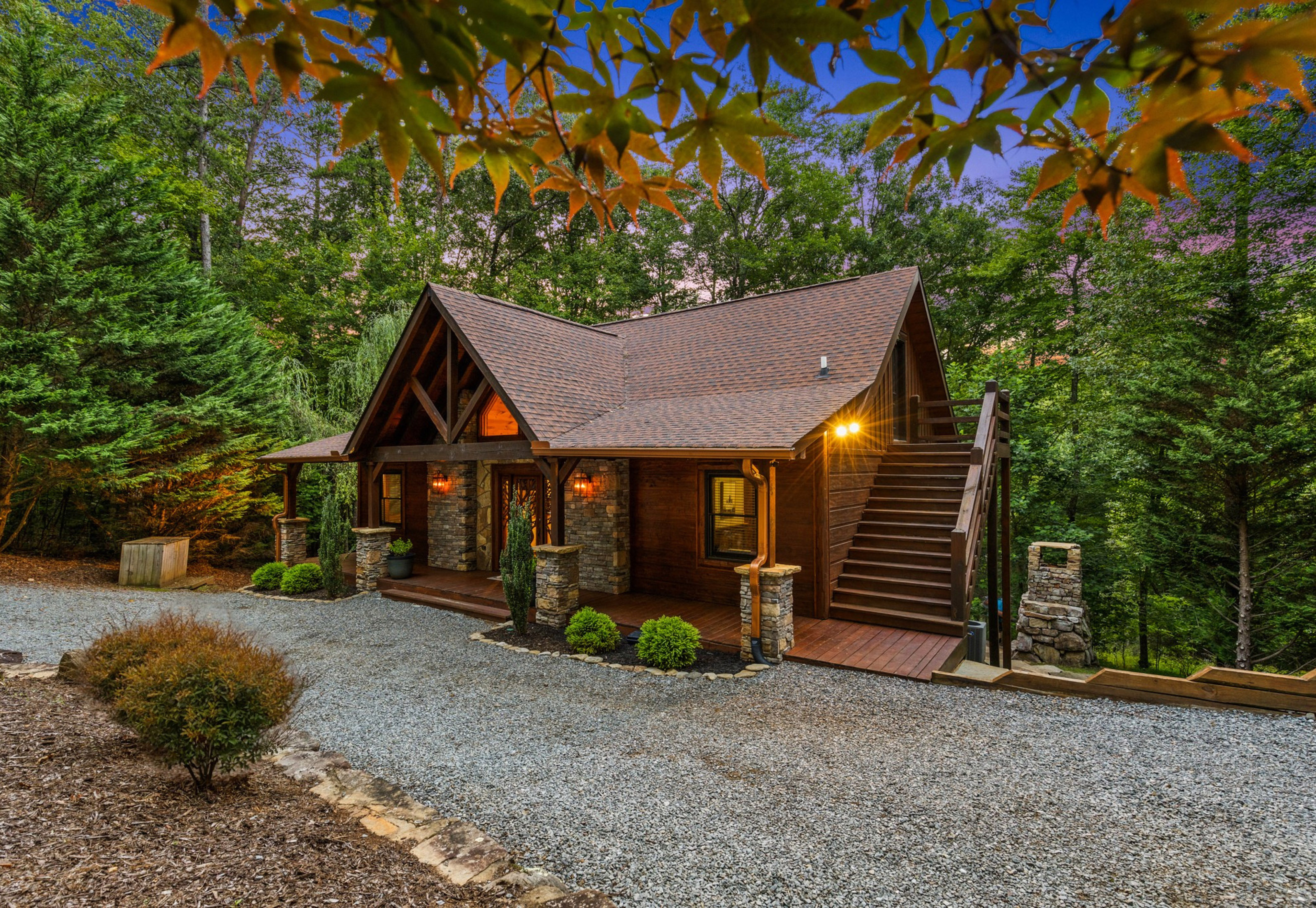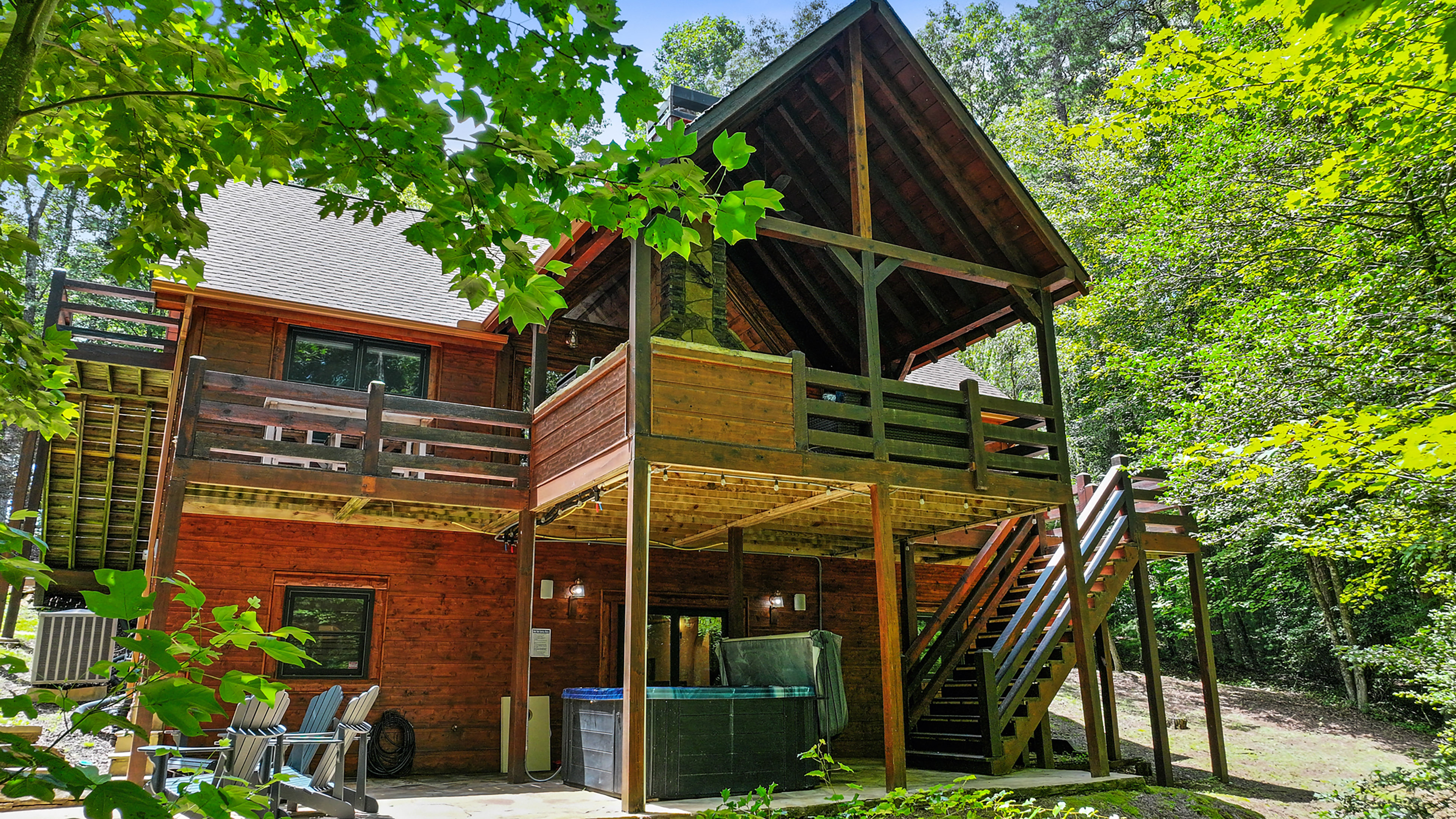 Have it all and then some! Welcome to "The Oasis" -- a uniquely crafted Keith Sumner Original home with rustic charm and modern amenities. Minutes away from Downtown Blue Ridge with all-paved access, this rustic compound is complete with main house and garage with studio. The main house is comprised of an open-concept main level, gourmet kitchen, dining area, comfortable living room with massive stone fireplace, covered party deck with an outdoor kitchen and fireplace, two primary ensuites, and views of the canopy from across the home. On the terrace level, find a bar, den, bedroom + bunk room, and walk out patio to a brand-new jacuzzi and third fireplace underneath the stars. Across the drive, find a finished and complete two car garage with a game room above. Sold fully-furnished, this home is ready for you! Would make for the perfect full-time home, second home or investment property. Call today for an exclusive tour.