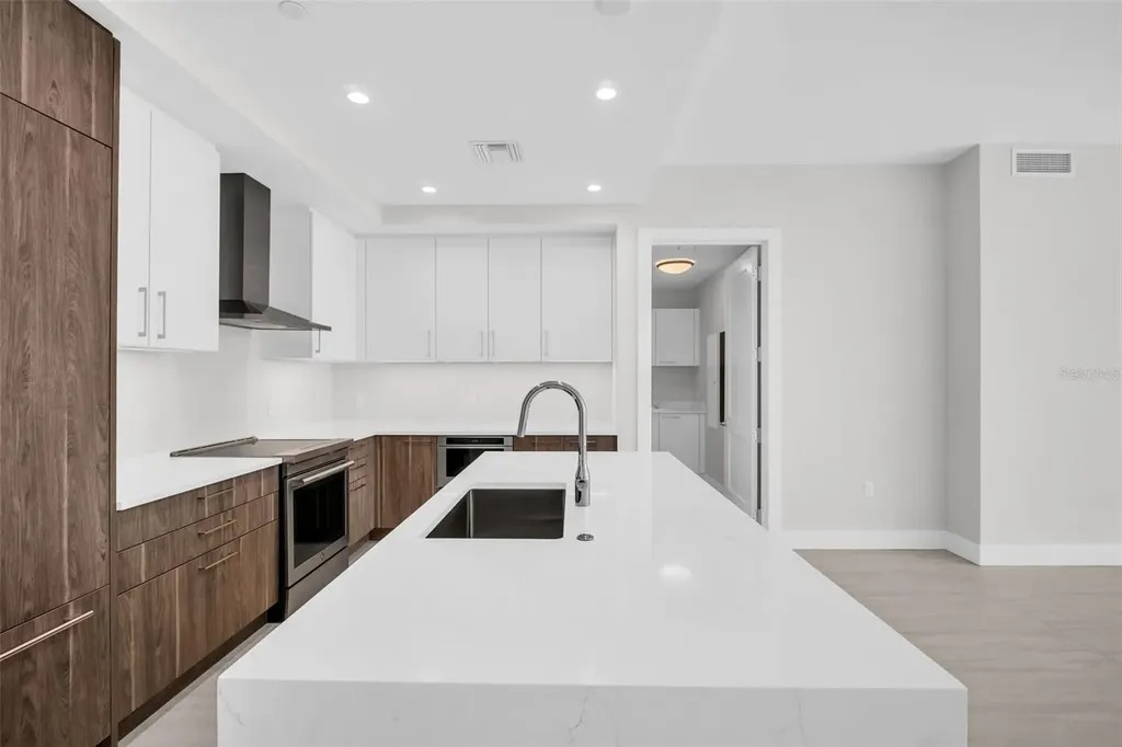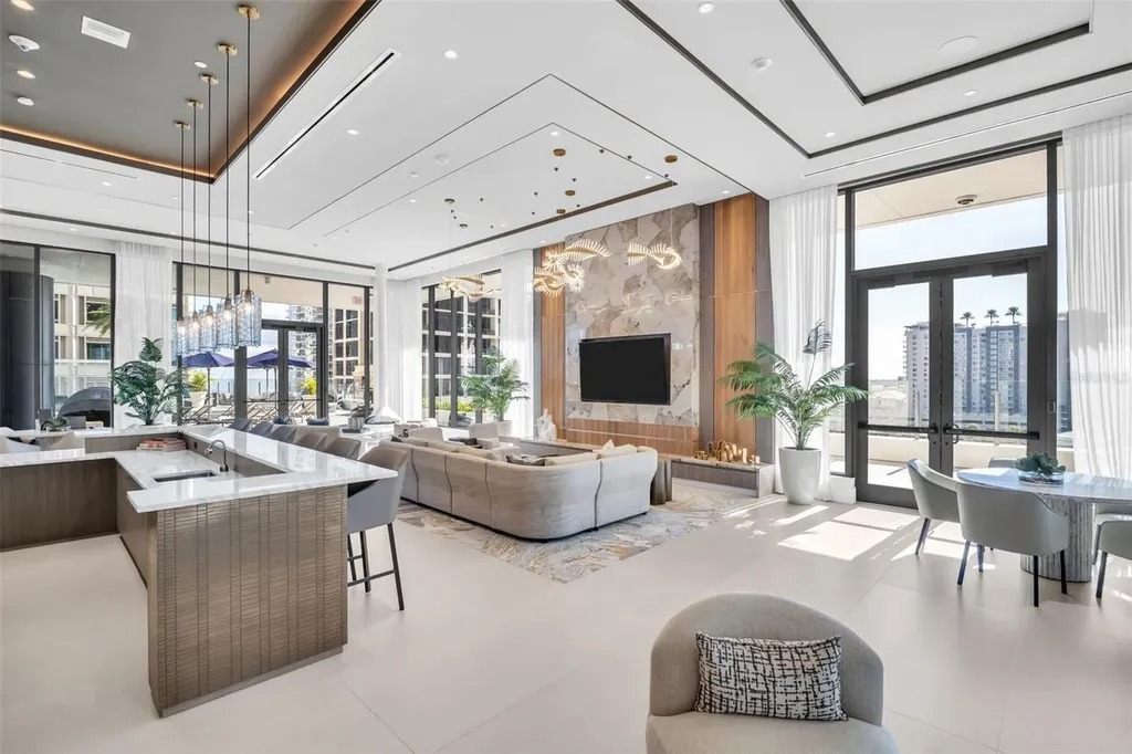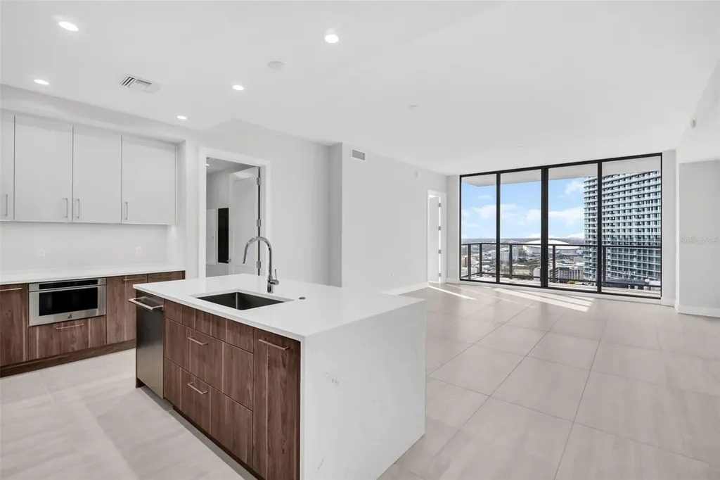 Positioned on the 28th floor within the newlycompleted ART HOUSE building in downtown St. Pete, this impeccablyfinished 2-bedroom, 2.5-bath residence offers 1,339 square feet of refinedinterior living complemented by a generous 270-square-foot balcony designed fortrue indoor-outdoor enjoyment. West-facing and elevated, the home capturesexpansive open-sky vistas with sightlines stretching toward the Gulf of Mexicoand glimpses of the Sunshine Skyway Bridge. Sunlit and tranquil duringdaylight hours, the setting transforms after dusk as the sun sets while the citylights and the downtown streetscape come alive below. Generously sized andthoughtfully positioned, the balcony serves as a seamless extension of theliving area; ideal for sunset cocktails, alfresco dining, or unwinding whiletaking in the ever-changing cityscape.Inside, the residence showcases elegant designselections from the Grigio Collection, including European-style Noltecabinetry, designer quartz countertops, and a striking waterfall-edge islandthat anchors the kitchen with both beauty and function. A premium JennAirappliance suite elevates everyday living and entertaining, featuring built-inpanel-ready refrigeration, an upgraded induction cooktop, wall oven, microwavedrawer, paneled dishwasher, and an exterior-vented hood. Thoughtful details suchas Grohe fixtures, soft-close cabinetry, recessed LED lighting, andlarge-format porcelain tile flooring throughout enhances the home's modern,cohesive aesthetic. Both bedroom suites are well-appointed, with spa-inspiredbaths, curated finishes, and generous storage, while the powder room addsconvenience for guests.Beyond the residence, ART HOUSE delivers an amenityexperience unlike anything else in downtown St. Petersburg, seamlessly blendingwellness, design, and culture. Residents enjoy access to a golf simulator,billiards lounge, a 4,200-square-foot fitness center with sauna and steamrooms, private studios, reservable treatment rooms, a 20-seat private theater,and a 3,000-square-foot covered turf dog park. Curated artwork from prominentlocal galleries transform the building into a living art experience, setting anew standard for elevated urban living. Ideally located just two blocks fromthe waterfront parks and Beach Drive, with effortless walkability to acclaimeddining, shopping, and the arts, ART HOUSE is complete and move-inready-offering a rare opportunity to secure Gulf-to-skyline views and beginliving the downtown lifestyle today.