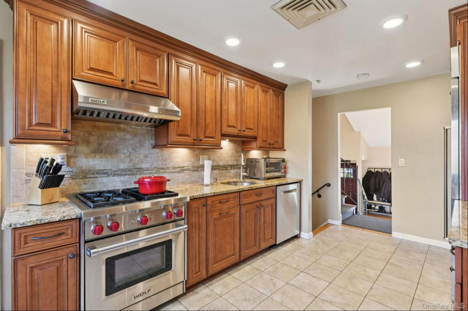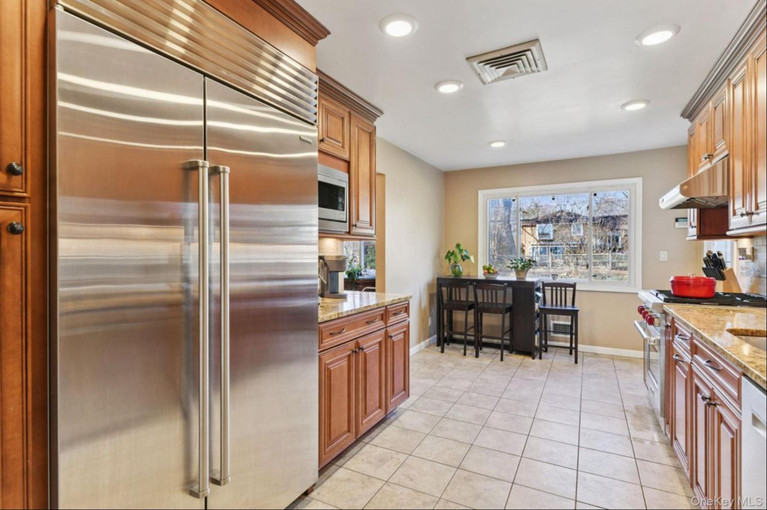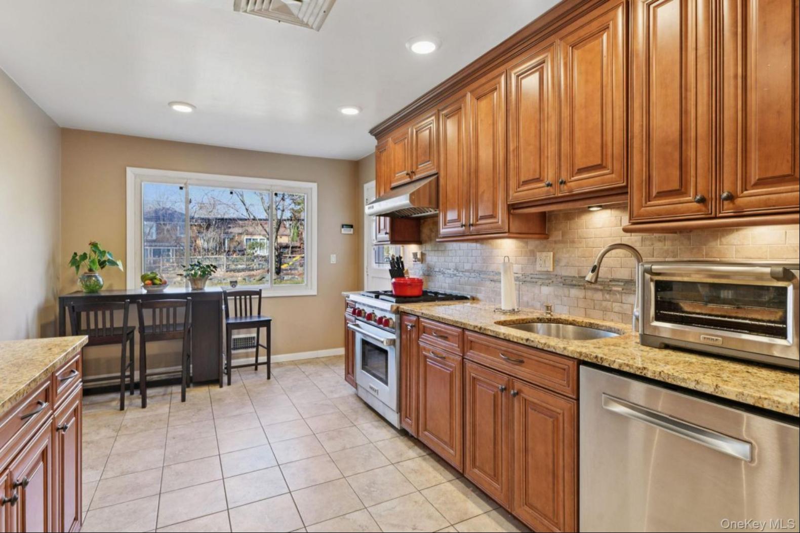 Welcome to 14 Fairview, a beautifully maintained Split level style home offering 4 bedrooms and 3 full baths with a flexible and thoughtfully designed layout. The exterior features classic brick with vinyl siding, architectural soffits with integrated lighting, a new front door, and a spacious six-car driveway. One-year-old pavers enhance the outdoor spaces, complemented by full front and rear lawn sprinkler systems and a fully fenced yard. Inside, red oak floors run throughout, while the main-level primary suite features marble flooring, built-in shelving, and generous closet space. A second expanded primary suite upstairs includes its own full bath, offering ideal flexibility for guests or extended living. Anderson windows provide abundant natural light, and Hunter Douglas shades add both style and privacy. The home offers multiple living areas, including an additional living great room with sliding glass doors that open directly to the backyard, creating seamless indoor-outdoor flow. The kitchen is equipped with stainless steel appliances, including a Sub-Zero refrigerator, Wolf gas oven, Bosch dishwasher, granite countertops, and Kohler faucets. Highlights include a new washer and dryer in the basement, a whole-house generator, four-keypad alarm system with glass-break sensors, and an air-conditioned garage. Conveniently located close to the country club and golf course, this home combines comfort, quality craftsmanship, and an exceptional setting. Steps away from Highway access to Manhattan or east end. Location, Location, Location its all here.