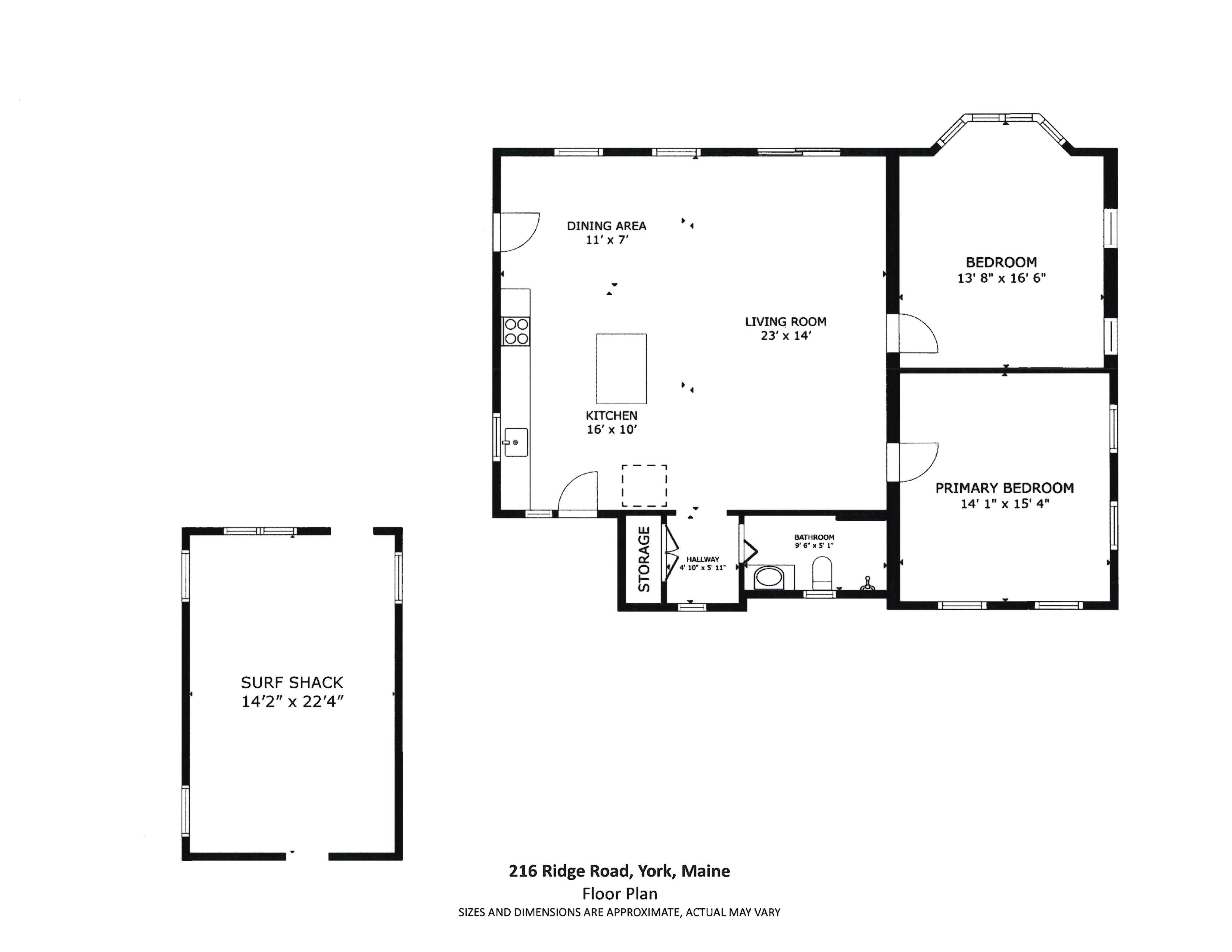 Ideally located just a short walk from Long Sands Beach, this thoughtfully renovated single-story Cape offers comfortable coastal living on a beautifully landscaped 0.37-acre lot. Originally built in 1950 and completely renovated with an addition in 2002, the home features an open-concept layout with vaulted ceilings and abundant natural light throughout. The eat-in kitchen is appointed with a center island, stainless steel appliances, quartz countertops, and seamless flow into the main living spaces, highlighted by attractive wood laminate flooring. Two bedrooms offer hardwood floors and vaulted ceilings for an airy, inviting feel. Enjoy seasonal Atlantic Ocean views and in the summer the convenience of an outdoor shower--perfect after a day at the beach. Additional amenities include central air, a newly installed air exchanger (2026), and a detached rustic ''Surf Shack'', great seasonal use for hobbies, creative space, or extra storage. Set in a peaceful neighborhood just minutes from Route 1, local restaurants, shops, and York's coastal attractions, this property presents an excellent opportunity for a year-round residence or a charming vacation getaway near York Beach.