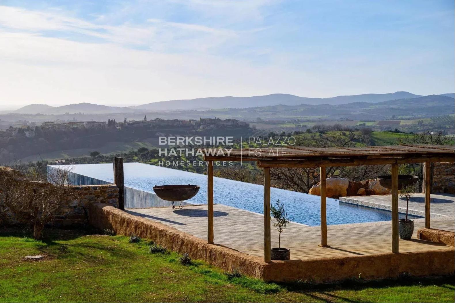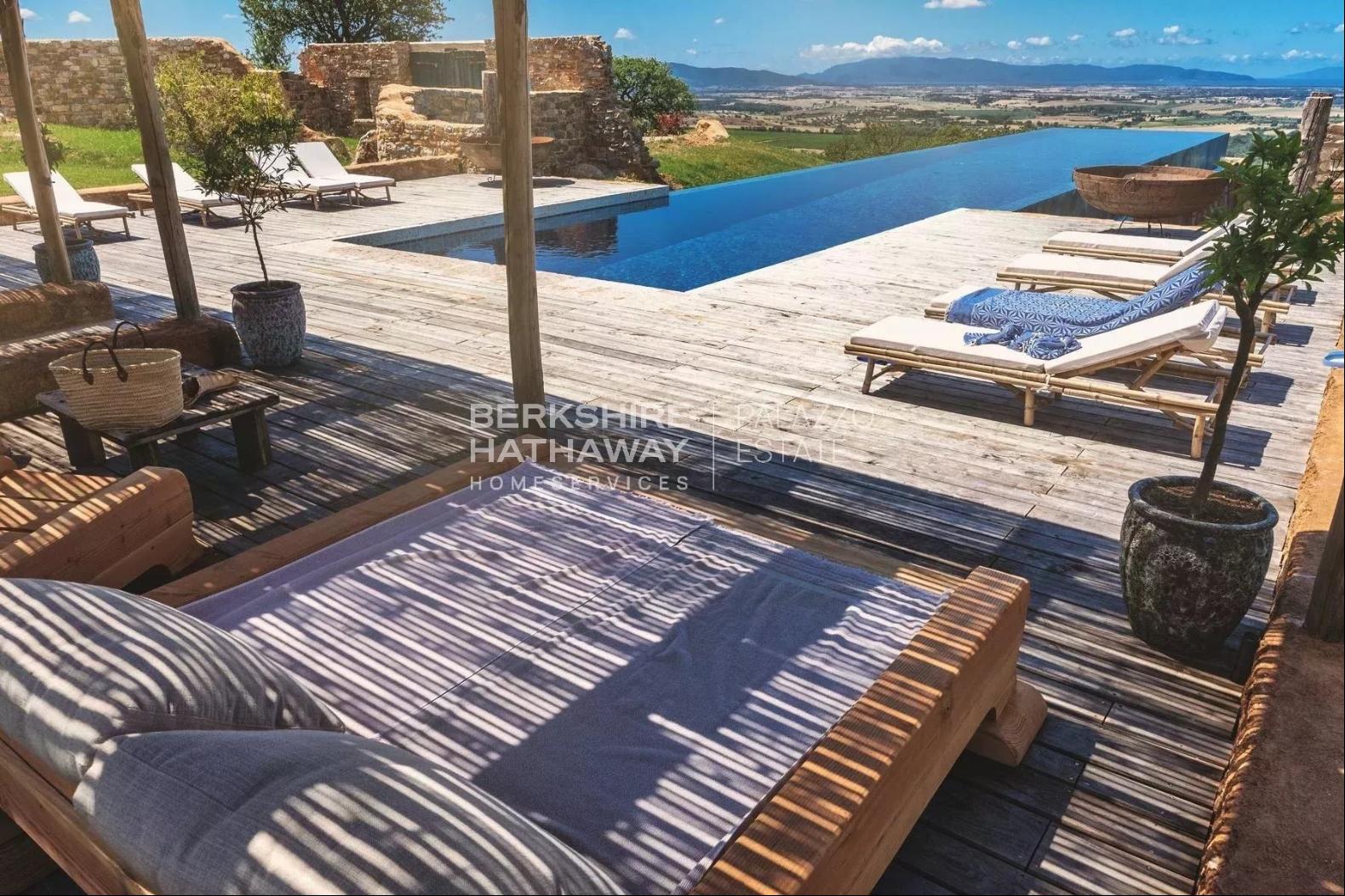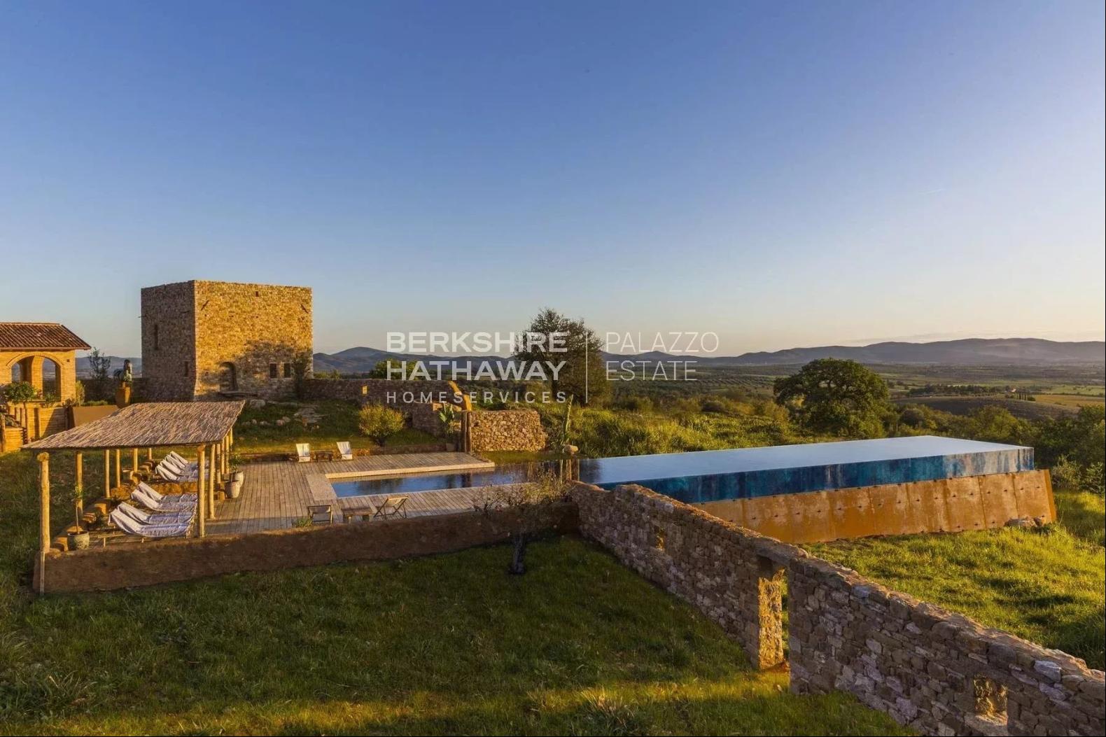 Set atop a hill surrounded by vineyards and olive groves, the estate overlooks the landscape like a natural observatory: the historic towns of Grosseto and Mount Amiata on one side, and the Maremma plain with the Orbetello lagoon on the other, opening toward the sea framed by the Argentario promontory, the Uccellina Natural Park, and the islands of Giglio and Giannutri.This residence stands among the most authentic expressions of high-end Tuscan hospitality. The charm of an ancient medieval priory blends with a contemporary vision of comfort, creating a place where history, art, and sustainability coexist in perfect harmony. Conceived for discerning and culturally sophisticated travelers, the estate offers a deeply immersive experience in the unspoiled nature of the Maremma.Spanning approximately eighty hectares of vineyards, olive groves, woodland, and pasture, the property has undergone a meticulous restoration lasting more than a decade. Every element in stone, iron, and wood has been handcrafted by Italian artisans using locally sourced natural materials and traditional techniques. Works and collaborations with internationally renowned contemporary artists further enhance the distinctive character of the residence.The main house features seven fully independent master suites distinguished by refined architectural details such as travertine mullioned windows, stone fireplaces—sometimes even within the bathrooms—private terraces with 360-degree views, and heated stone flooring. The interiors, enriched by bespoke handcrafted furnishings, extend across roughly 5,000 square meters. An additional bedroom, an elegant wellness area, and a spectacular 33-meter infinity pool complete the estate.A private retreat designed for those seeking the most authentic Tuscany through an experience of discreet, profound, and unforgettable luxury.CIN IT053013B4DNLH7TII