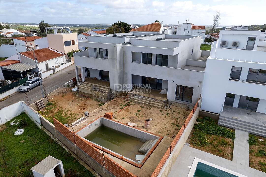 This contemporary white minimalist villa is a newly built property located in the peaceful residential area of São Bartolomeu do Sul, offering open countryside views, excellent sun exposure and easy access to beaches, golf courses and Spain.The home was designed with a strong focus on light, space and indoor-outdoor living. Large sliding doors connect the interior with generous terraces, a garden, and a private swimming pool, creating a relaxed Algarve lifestyle environment ideal for both permanent living and holiday use.The property can be marketed as a 2+1 bedroom villa, thanks to a flexible additional room that can be used as an office, guest room or third bedroom.Ground floor layoutThe ground floor is characterised by a large, open and spacious living area beautifully connected to the exterior. It includes an oversized open-plan living room with dining area, a fully integrated modern kitchen, direct access to the terrace, garden and swimming pool, a guest bathroom, a garage with internal access, an entrance hall and a staircase leading to the upper floor. The open living space creates a bright social area perfect for entertaining, with seamless access to the outdoor lounge and pool area.First floor layoutThe upper floor offers privacy and a well-organised bedroom zone with a master suite bedroom with private bathroom, a second bedroom with terrace access, an additional TV room or office that can serve as a potential third bedroom, a shared bathroom, a storage room and a circulation hall with a staircase. Several rooms benefit from terrace access and open views.Outdoor livingThe exterior space enhances the lifestyle experience and includes a private swimming pool, spacious terraces ideal for sunbathing and relaxation, garden areas and outdoor dining possibilities, including barbecue space. The terraces create an ideal environment for entertaining, al-fresco dining and enjoying sunset views over the surrounding countryside.LocationSão Bartolomeu do Sul is a quiet residential village within the Castro Marim municipality, known for its countryside charm, privacy and proximity to coastal resorts. Praia Verde and Altura beaches are approximately 10 to 12 minutes away, Monte Gordo beach 12 to 15 minutes, Vila Real de Santo António 10 minutes, Spain 10 minutes, golf courses 10 to 15 minutes and Faro Airport around 40 minutes. Supermarkets and daily services are within a short 5-minute drive, ensuring comfortable everyday living.International sales positioningThis modern villa represents an attractive opportunity for international buyers seeking flexibility and lifestyle value in the Eastern Algarve. The property can be used as a primary residence, a holiday home or a second home, while also offering strong potential for short-term or long-term rental income thanks to its location, outdoor amenities and contemporary design.