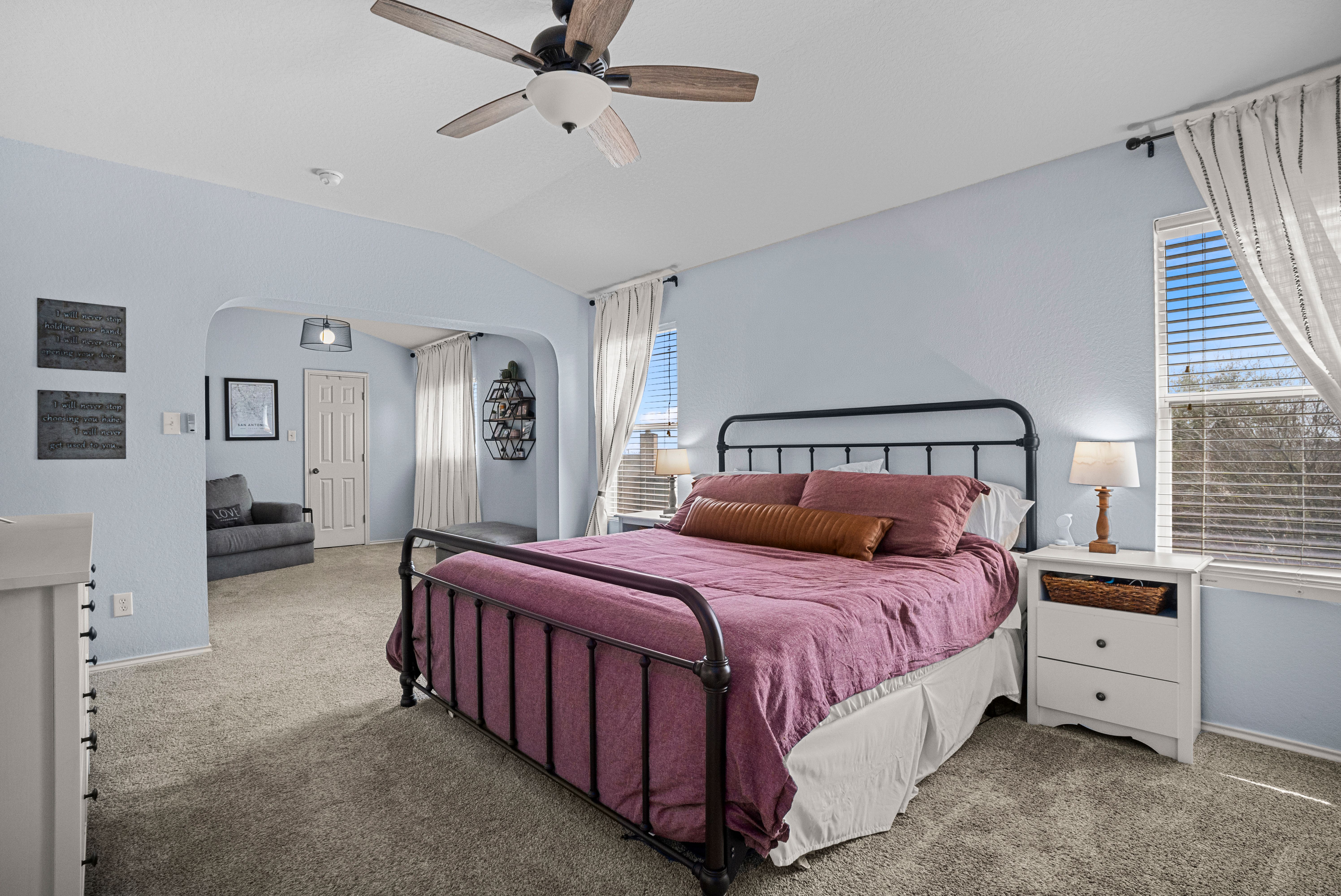 Ideally situated near IH-35, 1604, Randolph AFB, Fort Sam, The Forum, and IKEA, this spacious North East ISD home offers room to grow in a location that keeps you connected to everything.With 5 bedrooms and 3 full baths, the flexible floor plan is designed for everyday living and entertaining. The refreshed kitchen features updated countertops and flows seamlessly into the living areas. The oversized primary suite includes a private sitting area and generous closets, creating a peaceful retreat at the end of the day.Upstairs, a large game/media room provides versatile flex space, while spacious secondary bedrooms ensure comfort for everyone. Fresh interior paint, recently replaced carpet, exterior paint updates, and a recently replaced water heater add peace of mind. Meticulously maintained and move-in ready — this is one you won’t want to miss.
