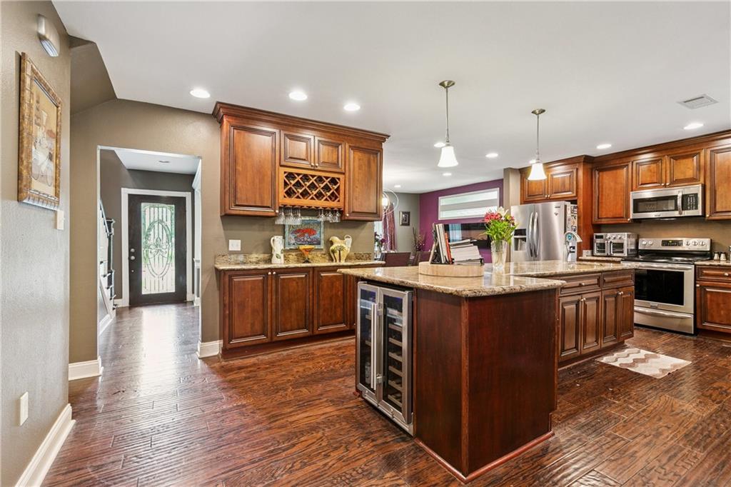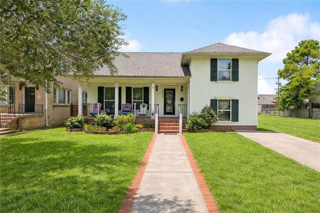 Welcome to Lakeview! This property is a stunning, multi-level residence nestled in the heart of Lakeview, just a five-minute bike ride from the sprawling beauty of City Park or the lakefront! This thoughtfully renovated 5-bedroom, 3 -bath home spans three stories with a dynamic split-level layout that offers both elegance and functionality. From the moment you enter, you see the spacious dining room that flows seamlessly into a chef-worthy kitchen designed for the way people actually live. Outfitted with Gallery appliances, dual sinks, abundant cabinetry, and a striking granite island at its center, the kitchen also features a newly installed wine cooler and a custom floor-to-ceiling bar - great for entertaining with ease and style. The open sightlines carry you into a dramatic living room with soaring 12-foot vaulted ceilings and dual patio doors that invite the outdoors in. There are Two distinct al fresco entertaining spaces await - one featuring a built-in outdoor kitchen and patio, the other a cozy gathering spot anchored by a fireplace. Whether you're hosting a crowd or enjoying a quiet evening, there's a space for every mood. The luxurious primary suite offers a true retreat with a jetted soaking tub, walk-in shower, double vanity, and a custom built-in walk-in closet. Additional bedrooms include two carpeted rooms on the second floor sharing a full bath, a generous room with original hardwood floors that adapts beautifully to your family's needs, and a ground-level suite - currently a media room with full bath - that's ideally suited as a private guest or in-law retreat. This area would be an easy convert to a separate in law suite. A dedicated home office, off-street parking spots in both the front and rear of property. There is a concrete front driveway, and a stone-paved rear driveway round out this remarkably versatile property. Lovingly maintained and meaningfully upgraded, this Lakeview gem is ready to be your family's forever home.