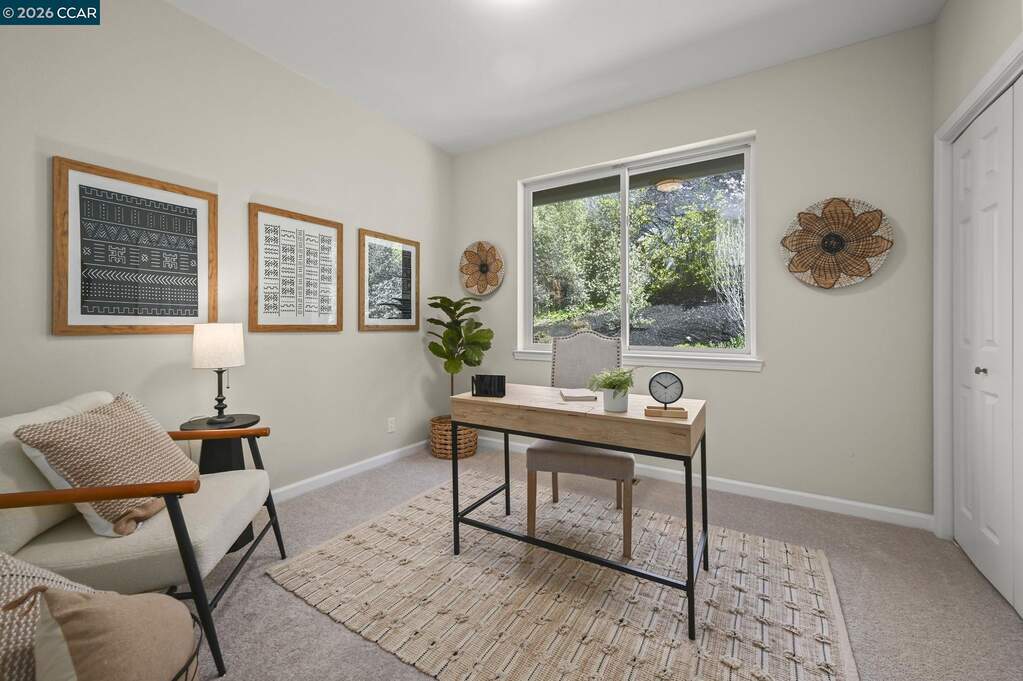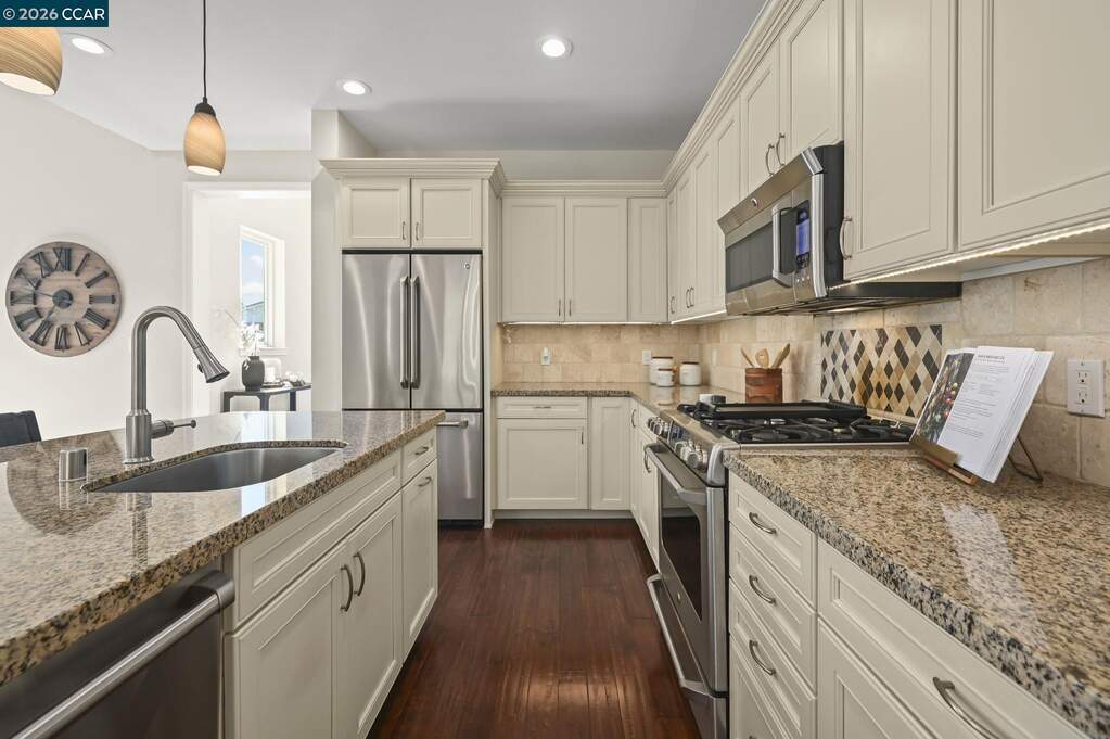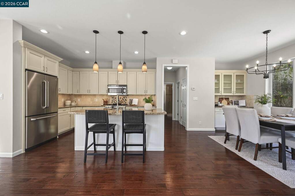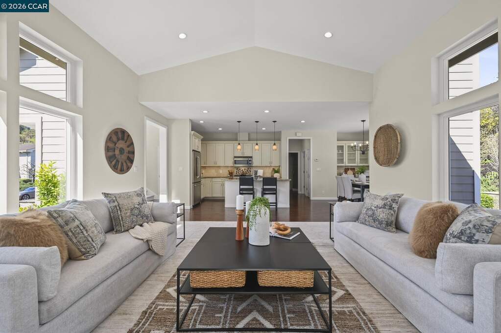 Experience luxury living in Pleasant Hill's sought after Saddleridge neighborhood. Stunning court location with acres of open space on one side. This custom home has picture-perfect curb appeal and an impressive architectural profile. Dramatic high ceilings and walls of windows flood the interior with natural light. The chef's kitchen features a large island with seating, stone countertops, and gas range, opening seamlessly into the dining room highlighting backyard views. The impressive great room showcases hillside vistas and a elegant surround fireplace. The ground floor bedroom and full bath is perfect for a home office, or multigenerational living. Hillside views abound as you walk up the stairs to three generously sized bedrooms, including a primary suite with a large walk-in closet and en-suite bath. The expansive secondary bedroom could be a media room, work-out space, or bedroom for two. Convenient upper-level laundry room. The private garden sanctuary is an entertainer's dream with a fully equipped outdoor kitchen, lush lawns, and raised planting beds for gardening. Don't miss the three-car tandem garage with plenty of built-in loft storage. Pleasant Hill is where it is at, with top rated Mount Diablo schools, and all the amenities of the Bay Area at your fingertips.