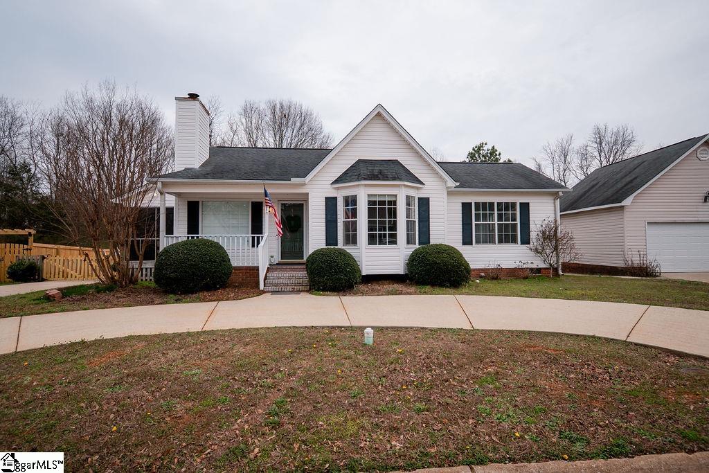 Welcome to this charming 3-bedroom, 2-bath ranch home located in the Dunwoody Oaks neighborhood of Simpsonville. This well-maintained home features a spacious living room with vaulted ceilings and a cozy wood-burning masonry fireplace, creating a warm and inviting atmosphere. The kitchen provides ample cabinet space and connects easily to the breakfast area for comfortable everyday living. The primary bedroom conveniently includes a walk-in closet and private full bath. Two additional bedrooms provide flexibility for guests, a home office, or other living needs. Enjoy outdoor living with both a screened porch and a deck overlooking the fenced backyard with mature trees, creating a great space for relaxing or entertaining. Additional features include a tankless water heater, first-floor laundry, and an outdoor storage building. Residents of Dunwoody Oaks enjoy access to community amenities including a pool, clubhouse, playground, tennis courts, and neighborhood lighting. Conveniently located near shopping, dining, and major roadways, this home provides easy access to everything Simpsonville and Greenville have to enjoy.
