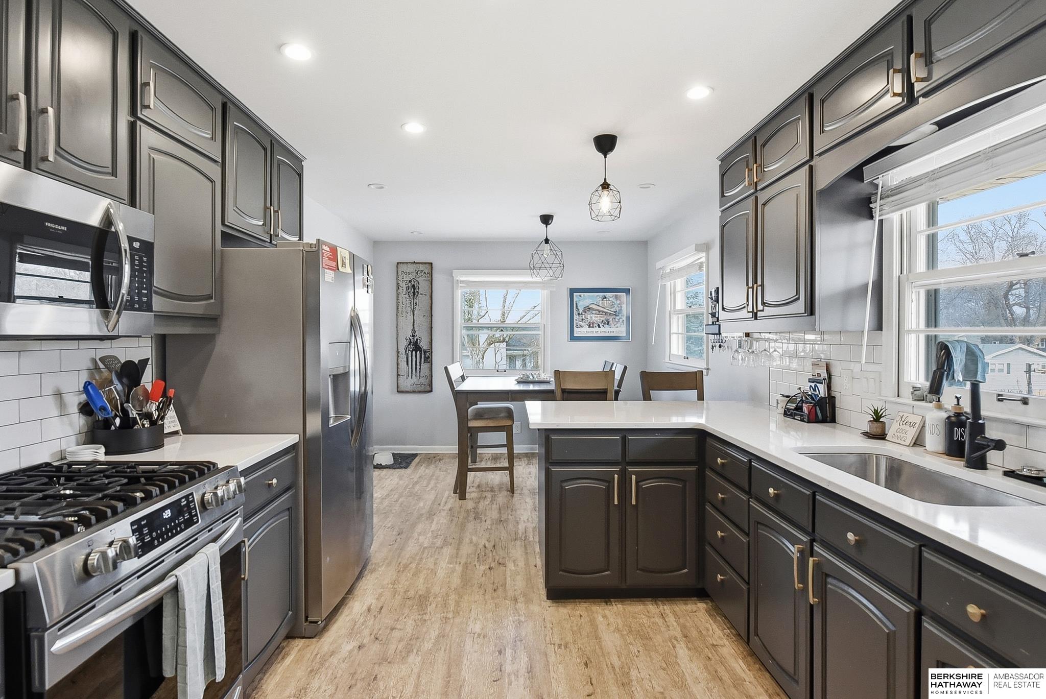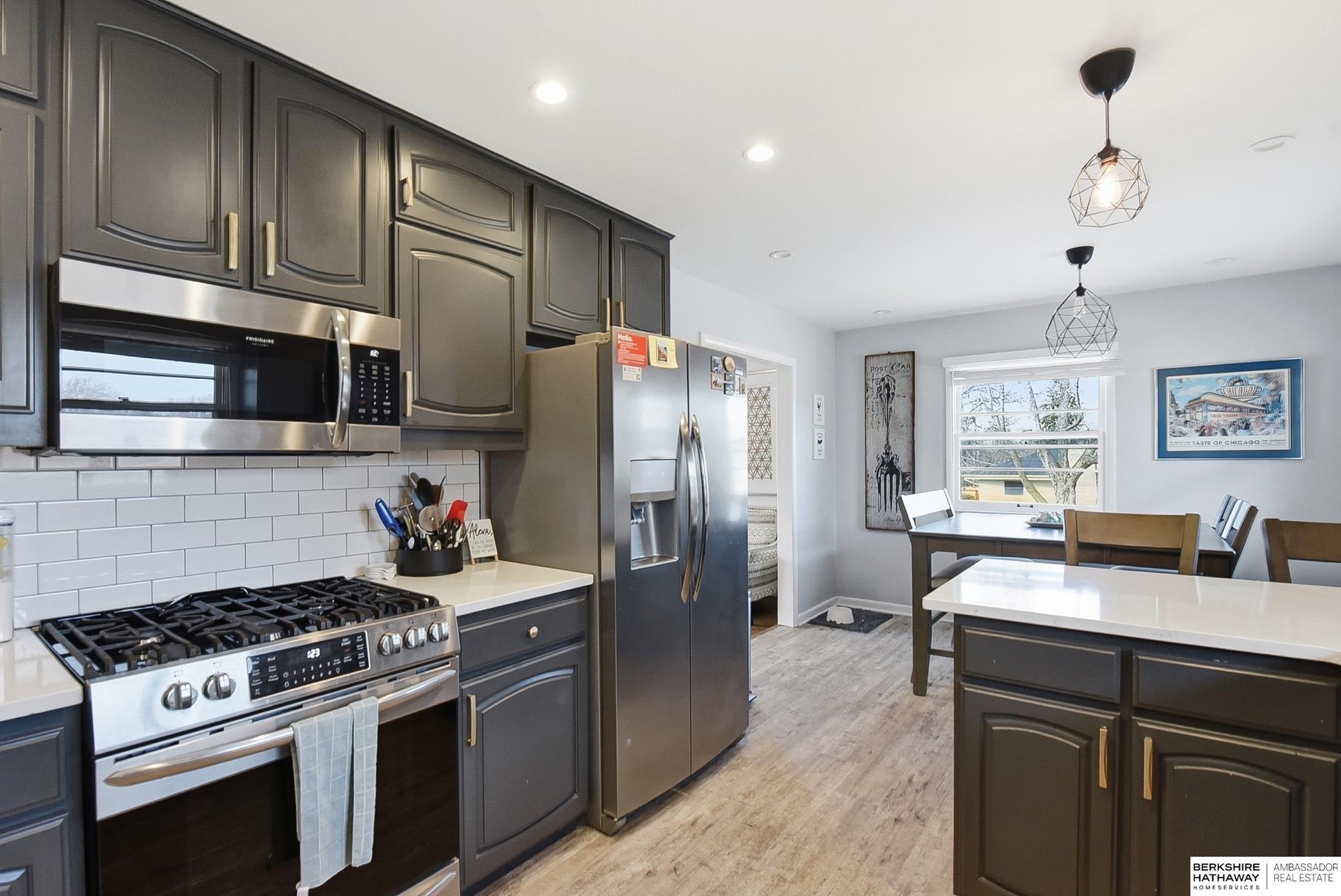Awesome Updated Raised Ranch in Rockbrook Heights. All four main floor bedrooms have hardwood floors. You will love the quartz countertops and stainless appliances in the kitchen, and the refrigerator stays. The living room also has hardwood floors and a large sliding glass door to the fully fenced backyard with patio and deck. Awesome storage in the backyard shed. The basement features a cozy family room, 5th bedroom, and finished laundry room (washer and dryer stay). Vinyl siding and newer garage doors. Very conveniently located near Westside schools, Interstate 80, and great shopping in Rockbrook village.